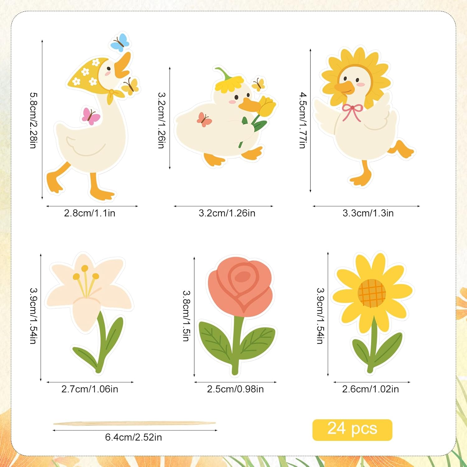 Contenuto del pacchetto: il pacchetto contiene 24 toppers cupcake sciocchi, tra cui 6 carini design. Venendo con bastoncini di legno e gelatina, queste forniture decorative possono facilmente creare torte a tema per soddisfare varie esigenze di decorazione. Materiale eccellente: realizzati con carta di qualità eccezionale, questi topper per cupcake per baby shower sono affidabili e durevoli. Ampia applicazione: progettata per docce per bambini, feste di compleanno per ragazzi e ragazze, i topper cupcake a tema grazioso aggiungono un'atmosfera calda. Possono anche essere usati per feste per bambini o celebrazioni a tema primaverile. Design speciale: The Sciocca ha una forma vivace e carina, e i suoi colori morbidi e motivi delicati aggiungono infantilità a torte e dessert, rendendolo una decorazione evidente per le foto delle feste. Facile da usare: le decorazioni di cattura di oca sciocche sono dotate di gel di gelatina. Basta inserire il bastoncino di legno nel cupcake e attaccare la decorazione. Non sono necessari strumenti complicati per abbellire rapidamente il dessert.