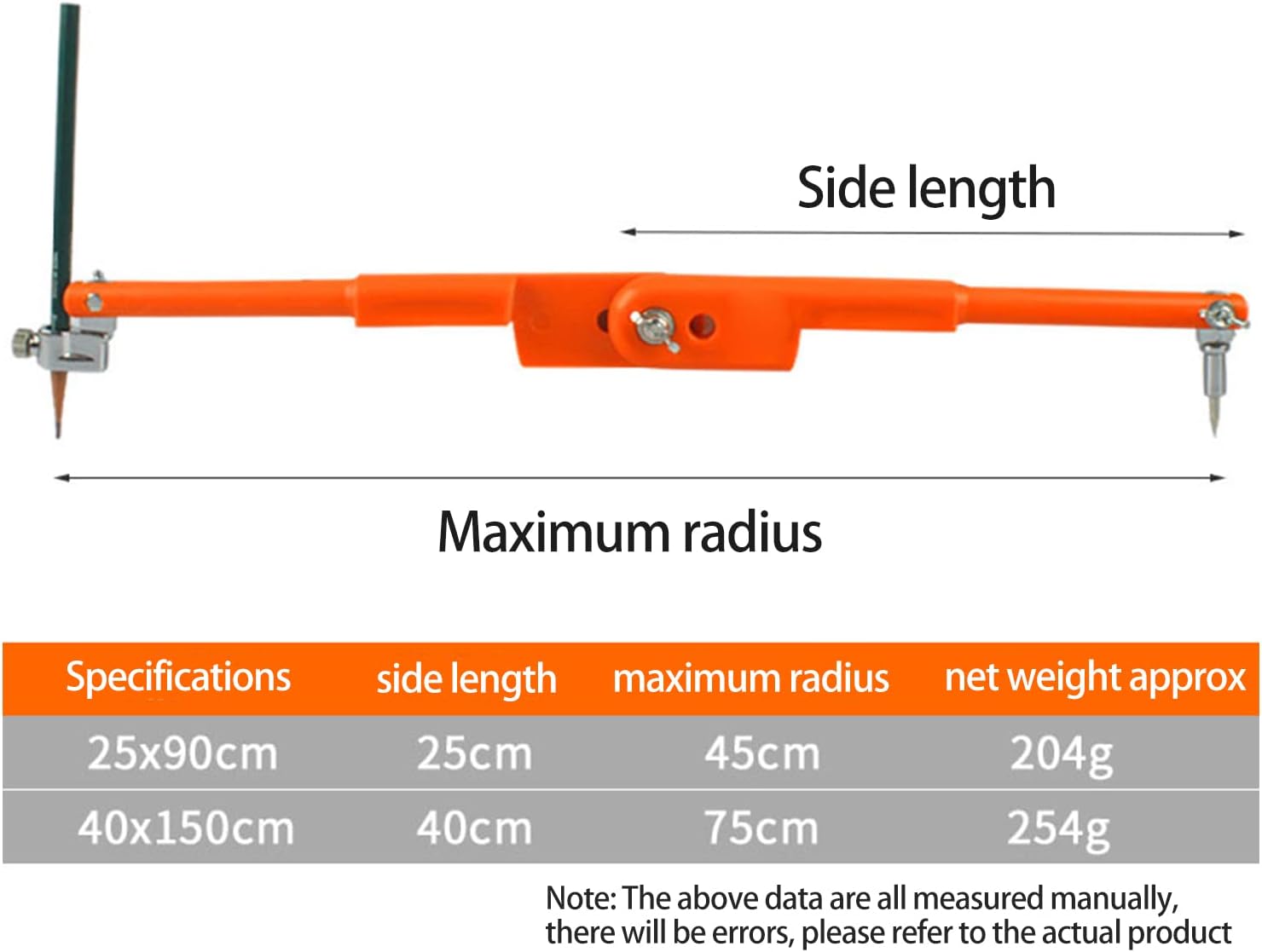 Ottimo strumento per creare contorni e cerchi, utilizzato anche per la marcatura. Questa matita è uno strumento di precisione di qualità da carpentiere in plastica PP e una lega resistente. Utilizzato con la matita in dotazione o una penna a sfera sottile. 2 diverse dimensioni, 25 cm/40 cm, è possibile scegliere la propria taglia. Bussola professionale da falegname per lavori in legno, metallo o pelle. Anche regalo per gli amanti del falegname.