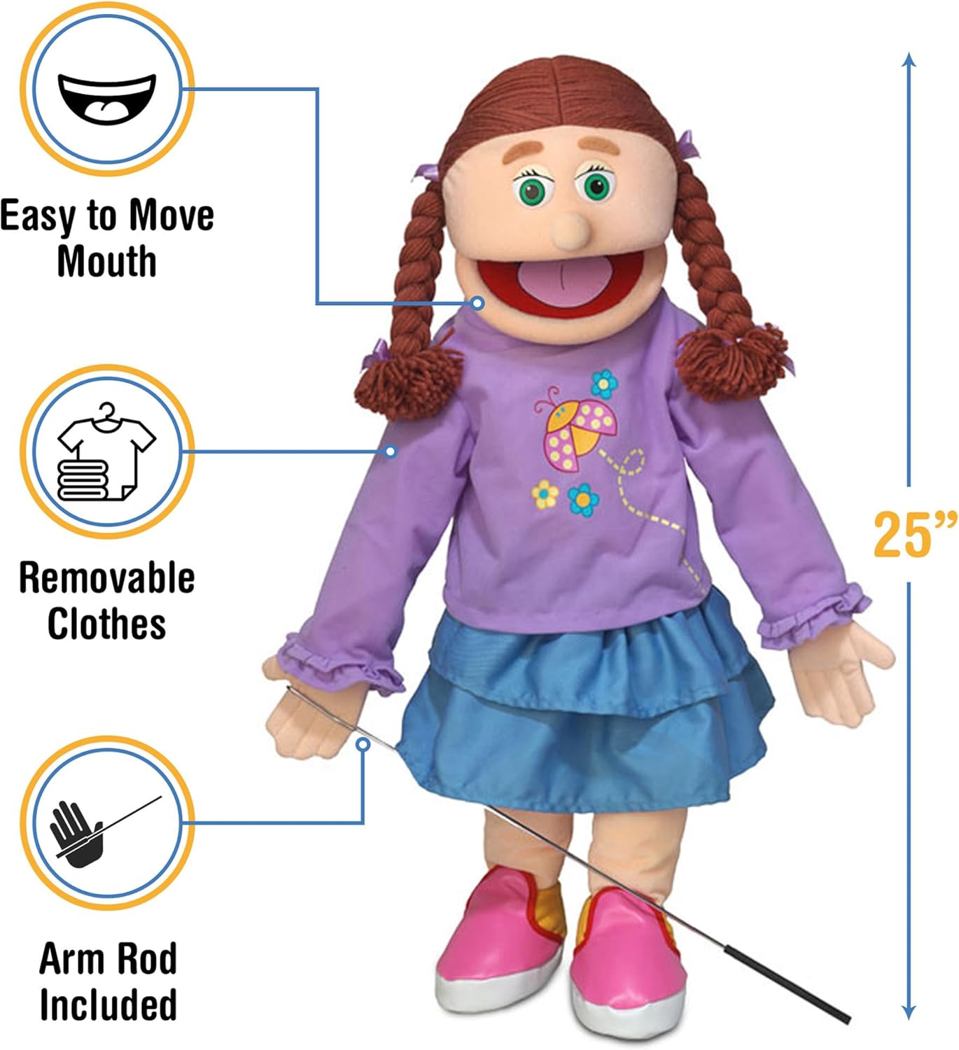 BURATTINO per tutto il corpo. Nuovo di zecca, spedito direttamente da Silly PUPPETS Inc. "Amy è alta 25 pollici". Vedere la descrizione dell'articolo per informazioni dettagliate.