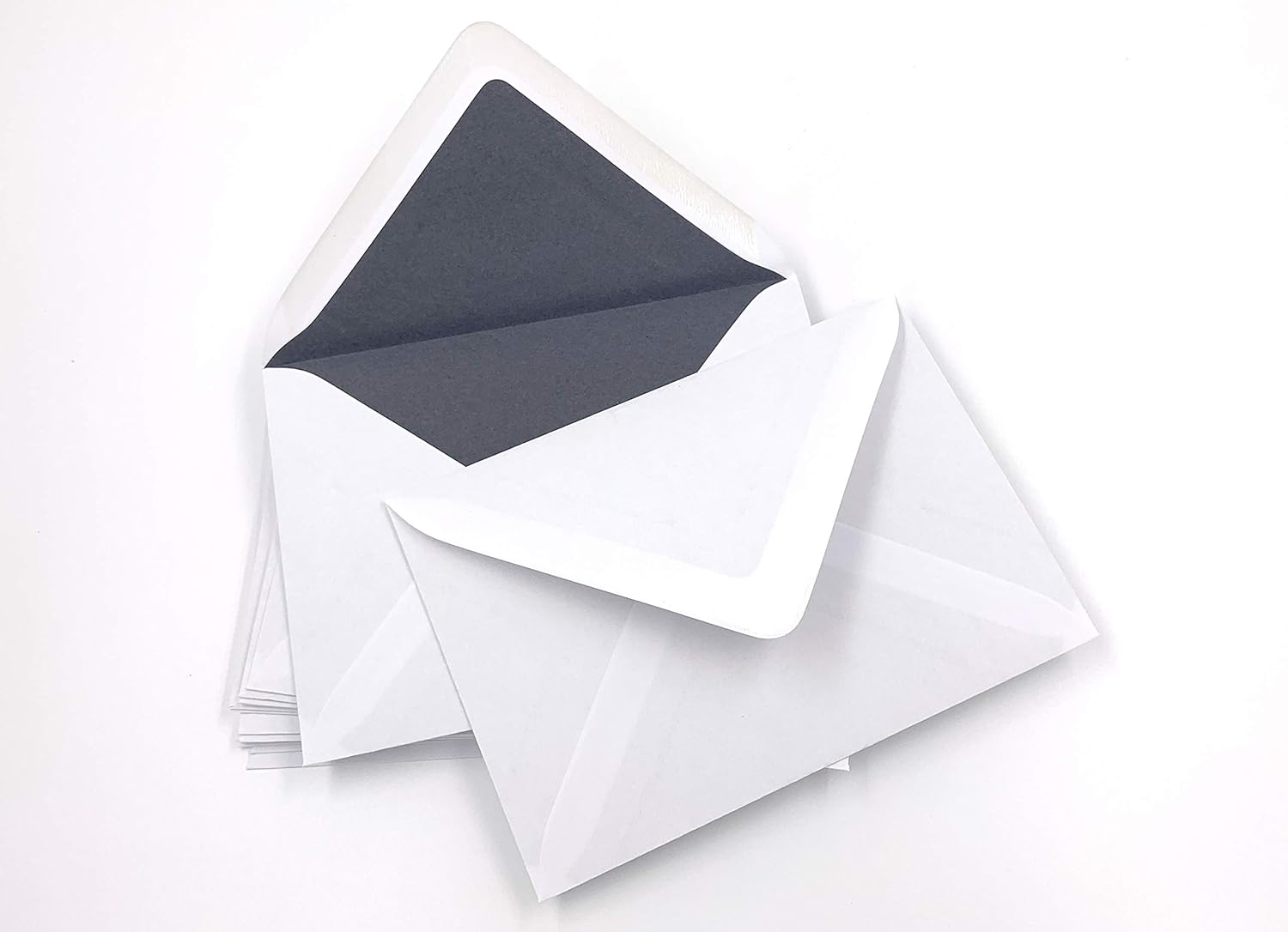 Buste per condoglianze, qualità premium, con fodera grigia seta Senza legno, carta bianca da 100 G/mq Formato: C6 = 162 X 114 mm Punta, nassklebende Flap Stampato con telaio lutto doppia grigio sul davanti