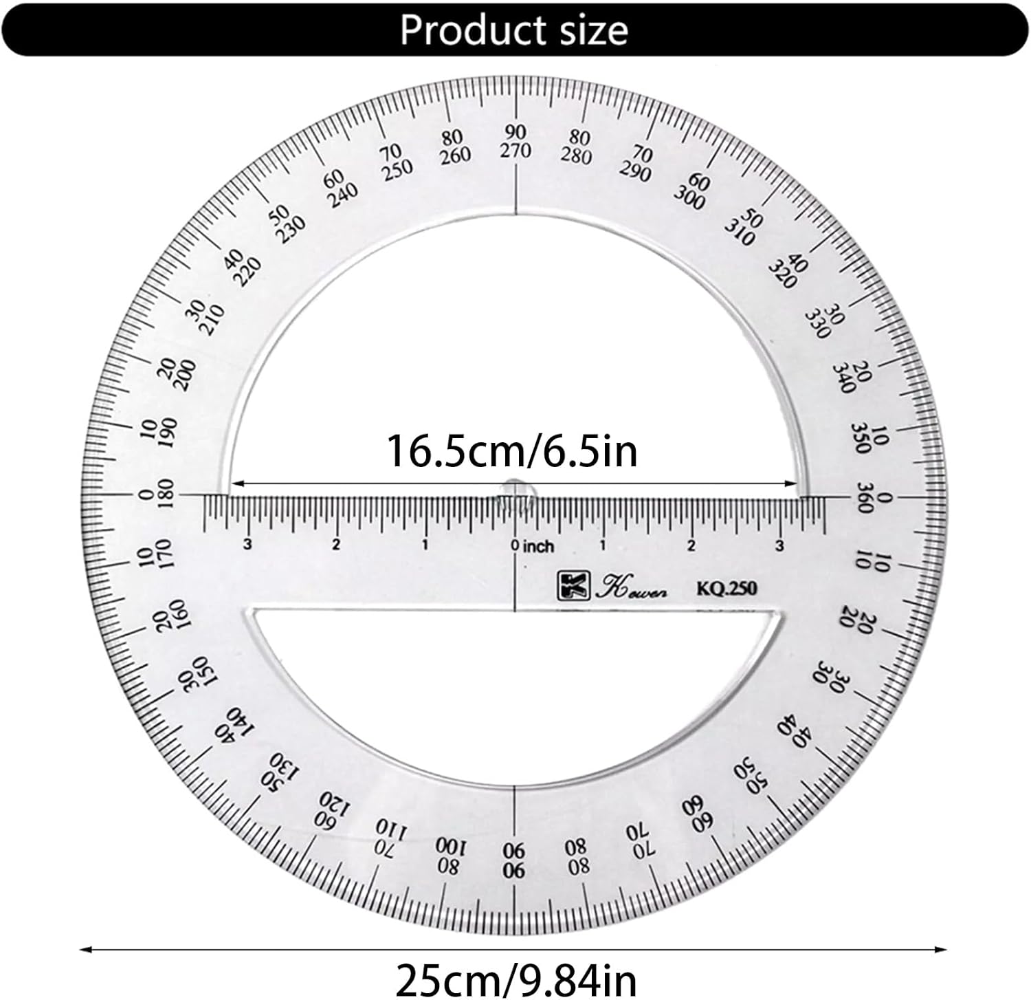 Strumento di misura cerchi a 360 gradi con un indicatore di previsione per disegnare la figura desiderata. Il modello di cerchio multifunzionale è adatto per la pittura, i compiti, il disegno tecnico e così via. Il protrattore rotondo completo può essere utilizzato in case e uffici, studenti e insegnanti nelle scuole. Il prospattore molto trasparente, la scala centimetrica sul righello facile da leggere e facile da leggere Il protrattore rotondo e pratico e non facile da rompere.