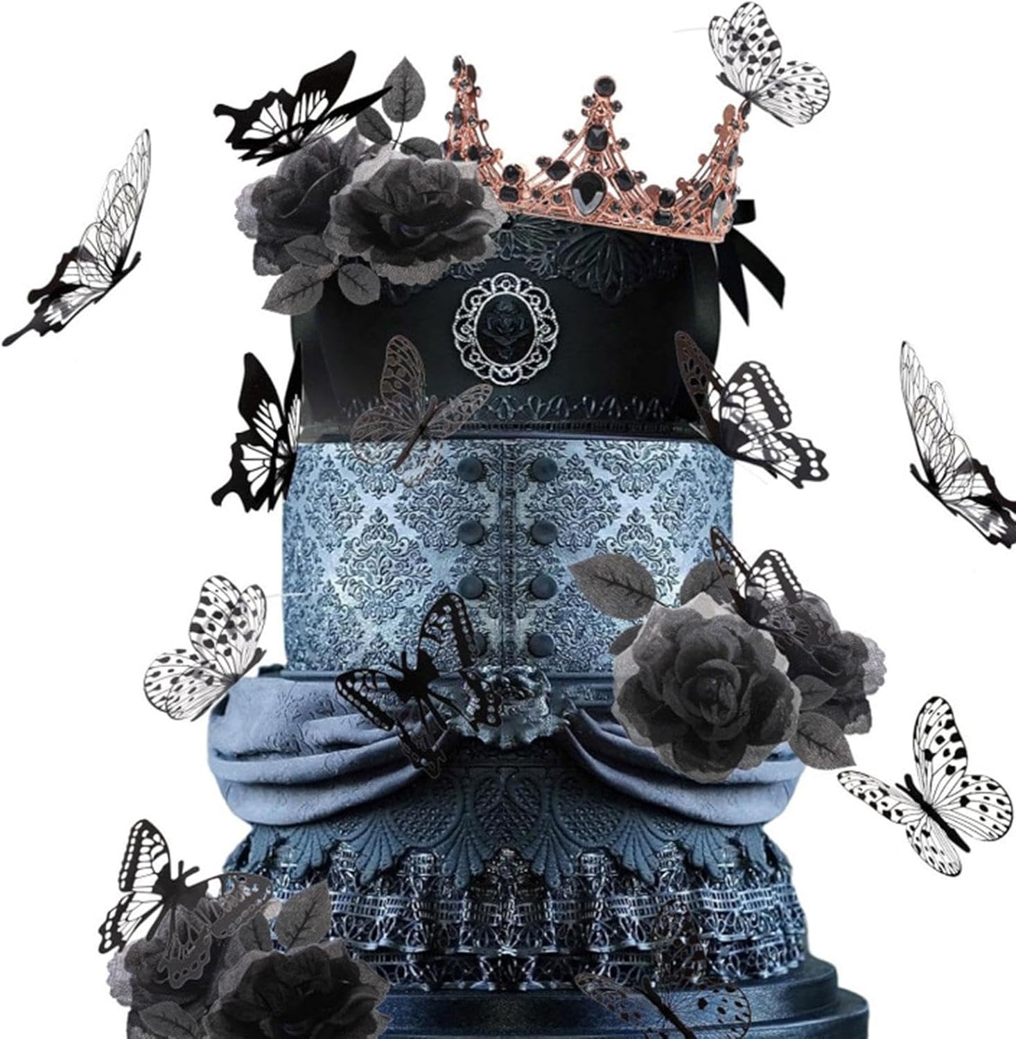 【Ampia gamma di usi】: il colore nero esalta il tema gotico, rendendolo un'ottima scelta per un matrimonio gotico. Queste decorazioni per torte Gothic Rose possono essere ampiamente utilizzate in molte occasioni, come feste di Halloween, feste di compleanno, anniversari di matrimonio. Sono un grazioso accessorio e decorazione per compleanno; possono anche essere un'elegante corona per ragazze e un oggetto di scena per la fotografia, rendendo le ragazze più affascinanti allo stesso tempo. 【Bellissimo regalo】: il nostro cake topper a forma di farfalla con corona di rose gotiche Finché morte non ci separi, cake topper a forma di farfalla nera, decorazione per feste di matrimonio gotiche, decorazione per torte con , è un regalo perfetto per addio al nubilato, shower, feste di compleanno, torte da principessa e regali di Natale per amici, bambini e famiglie. 【Decorazioni per compleanni gotici】: Questo topper per torta a forma di rosa gotica include 1 pezzo di decorazione per torta a , 6 pezzi di decorazioni per torta a forma di , 6 pezzi di foglie di rosa nere, 12 decorazioni per feste a forma di farfalla nera. La nostra decorazione per torta gotica porterà un abbellimento sognante e meraviglioso alla tua festa. 【Suggerimenti】: scopo decorativo, non è commestibile e si prega di non utilizzarlo in forno o microonde 【Materiali affidabili】: la per il compleanno è realizzata in metallo PVC e fiori di seta, leggera e riutilizzabile; i topper per torta a farfalla sono realizzati in PVC, resistenti all'applicazione; la decorazione per torta con e foglie è realizzata con piante artificiali e fiori di seta, non sbiadisce e non cade