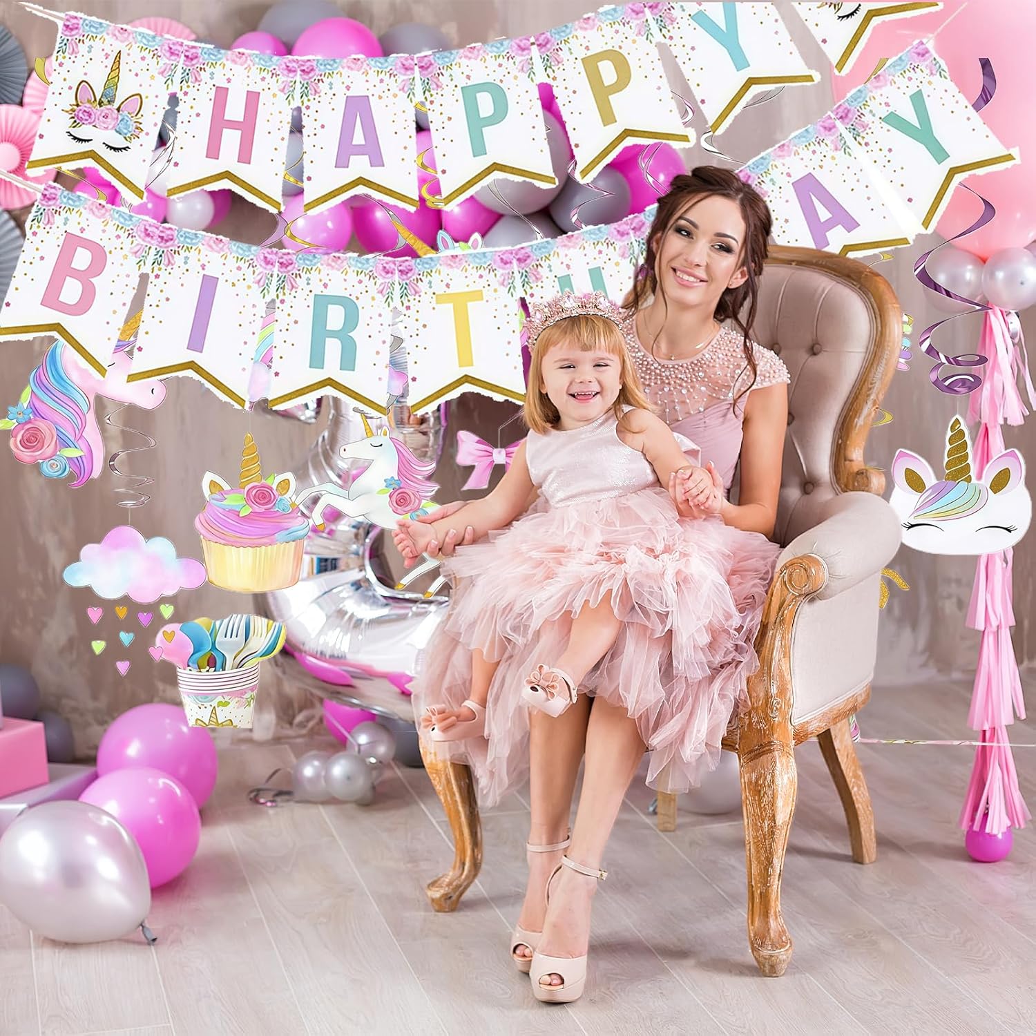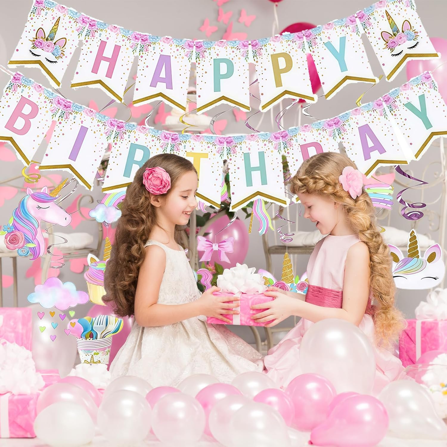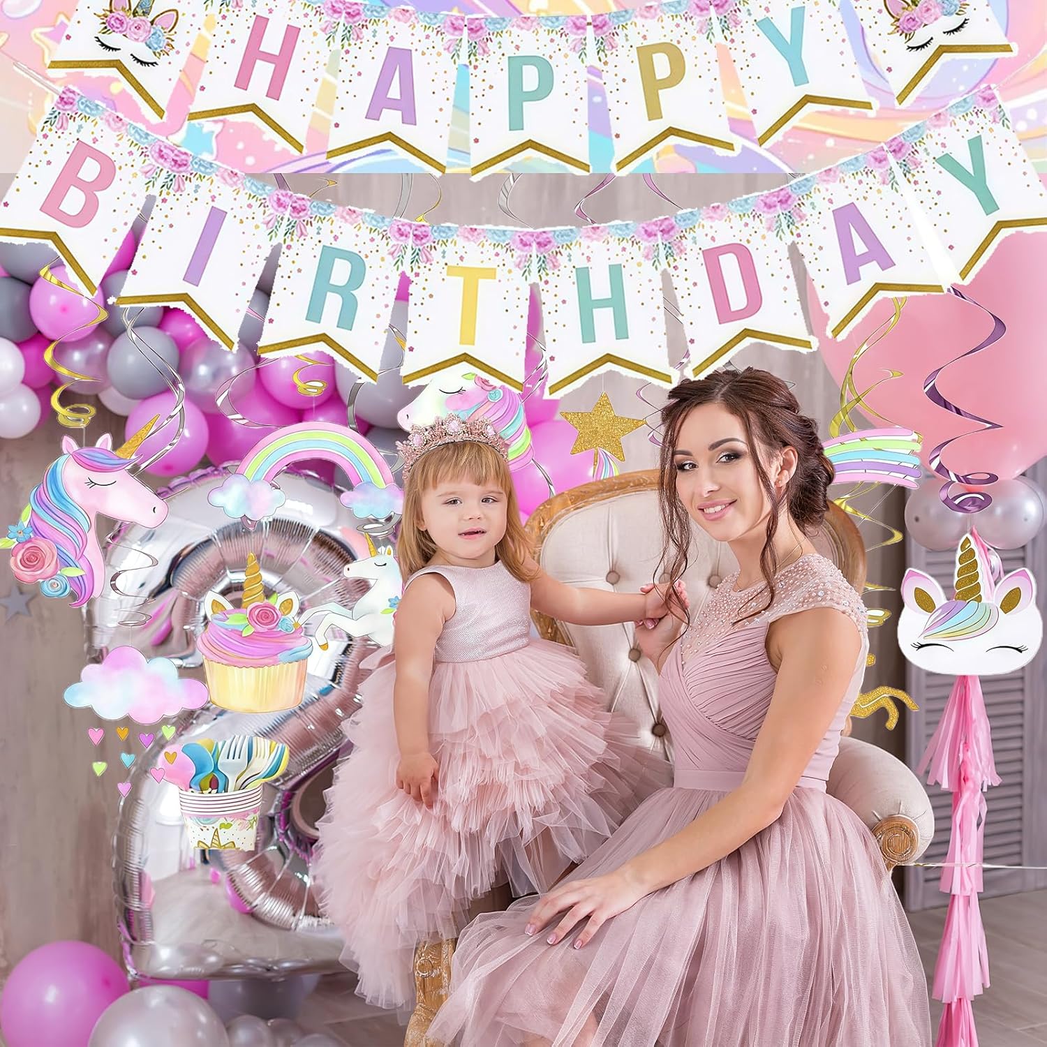 Decorazioni per feste con unicorno: include uno striscione di buon compleanno con un unicorno arcobaleno e ganci decorativi con unicorno per i compleanni dei bambini. Queste decorazioni sono ideali per dare un tocco speciale alla tua festa e stupire gli ospiti. Grucce decorative Unicorno: include 10 grucce in alluminio, 10 grucce con ritagli da 7" e 10 grucce con ritagli da 5", per un totale di 30 grucce in alluminio. Queste decorazioni versatili possono essere appese a pareti e soffitti, aggiungendo uno stile speciale alla tua festa. Utilizzo: appendili a pareti e soffitti per aggiungere uno stile speciale alla tua celebrazione. Combinali con altri accessori e decorazioni per feste a tema unicorno per creare un'atmosfera completamente festosa. Queste decorazioni sono ideali per aggiungere un tocco speciale alla tua festa e impressionare gli ospiti. Installazione semplice: risparmia tempo per altre importanti attività di pianificazione del compleanno. Queste decorazioni per feste con unicorno sono semplici da configurare e rendono la preparazione della tua festa facile e veloce. Riutilizzabili e durevoli: le decorazioni a tema unicorno sono realizzate in plastica e carta di alta qualità, garantendone durata e riutilizzabilità. Puoi usarli ripetutamente per abbellire le tue feste e aggiungere un tocco speciale