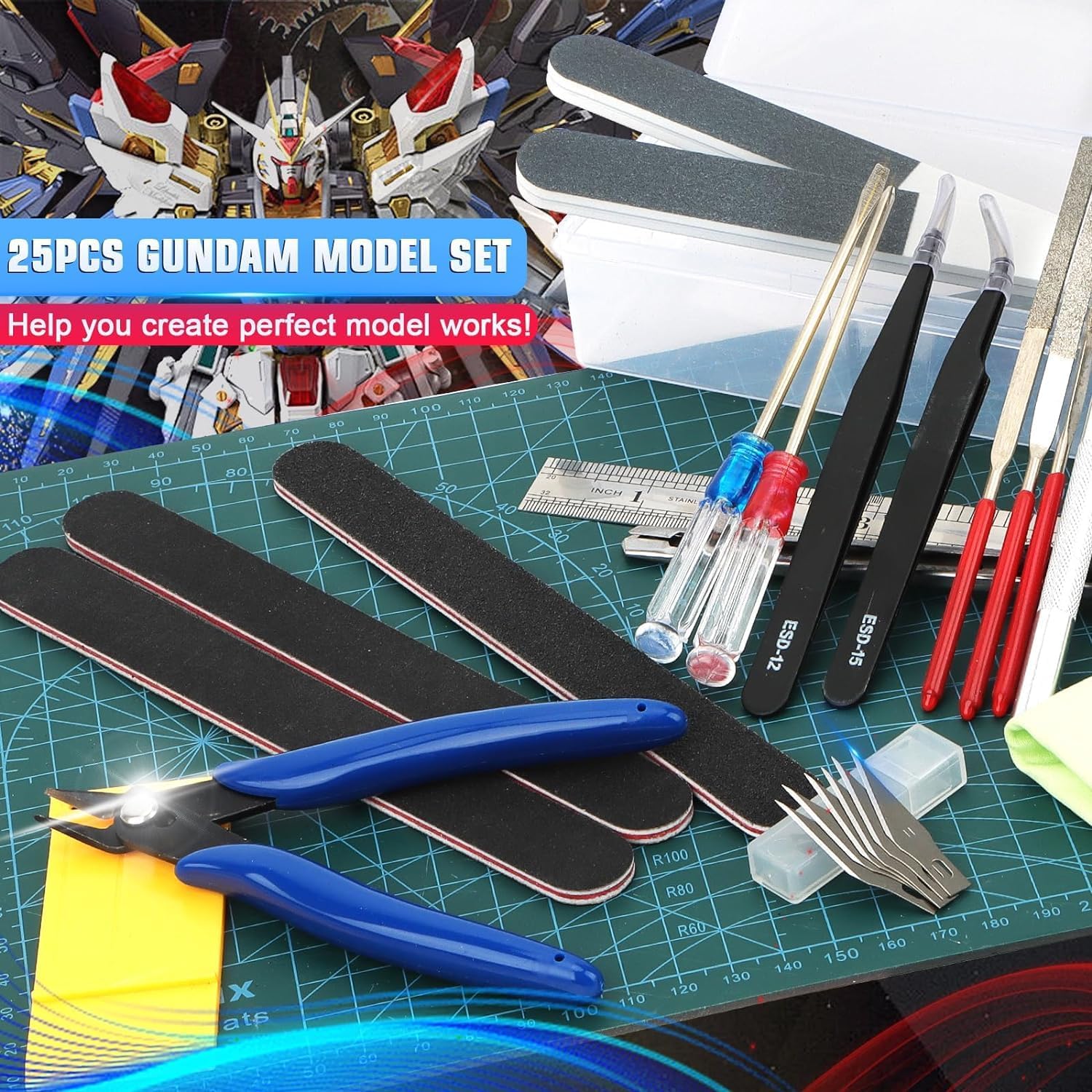 ✅ 【STRUMENTI ESSENZIALI PER IL KIT DI ATTREZZI PER LA COSTRUZIONE DI HOBBY】 Questo kit contiene 25 strumenti essenziali per la costruzione di modelli Gundam, che coprono tutto, dal taglio, molatura, incisione allo smontaggio, fornendo un supporto completo per i tuoi sforzi di costruzione del modello. Puoi usarlo per realizzare molti giocattoli, come automobili, robot, cartoni animati, edifici, aeroplani e altri oggetti artigianali. ✅【SET COMPLETO DI ATTREZZI】Set standard completo di accessori per il modello Gundam: 1x tagliere A4; 1x coltello da intaglio; 5 lame; 1x pinza tagliente; 2 pinzette; 2 cacciaviti; 3 strisce abrasive; 1x righello in acciaio; 1x coltello tascabile; 5 aste per lucidatura; 1x divisore; 1x panno per lucidare; 1x scatola portaoggetti. ✅【UN BUON AIUTO】Lo strumento principale necessario per i kit sono le pinze, che vengono utilizzate per rimuovere le parti dal telaio in plastica (corridore). le pinzette per applicare piccoli adesivi e decalcomanie. Strumenti per modelli, lime per lime di piccole dimensioni tipicamente per lavori delicati sui metalli, aste lucidate da utilizzare su una parte che volevi levigare e siamo rimasti assolutamente colpiti dalla morbidezza del risultato. ✅【VERSATILITÀ E FLESSIBILITÀ】Realizzato con materiali di alta qualità con grande attenzione ai dettagli, garantendo durata e stabilità per un uso a lungo termine, soddisfacendo le esigenze sia degli hobbisti seri che dei modellisti professionisti. Adatto sia ai principianti che ai modellisti esperti, il nostro kit fornisce strumenti versatili che possono essere utilizzati per una varietà di progetti di modellismo, dai modelli Gundam ad altri hobby come l'artigianato e i progetti fai-da-te. ✅ 【Archiviazione pratica】 La scatola di immagazzinaggio inclusa mantiene tutti i tuoi strumenti organizzati e facilmente accessibili. È quindi adatto sia per i laboratori domestici che per i modellisti in movimento, assicurandoti di poter lavorare sui tuoi progetti ovunque trovi ispirazione. Perfetto per la costruzione di modelli Gundam Inoltre, è adatto per riparare e personalizzare modelli di auto e altri progetti di hobby, rendendolo un'aggiunta versatile all'arsenale di qualsiasi modellista. ✅【GRANDI REGALI】Se hai amici a cui piacciono l'animazione, i cartoni animati o i modelli, il nostro set di strumenti è il regalo perfetto. Puoi anche utilizzare questi strumenti per creare un regalo unico per i tuoi amici. Il tuo regalo mostrerà ai tuoi amici quanto ci tieni e sarà apprezzato per gli anni a venire.