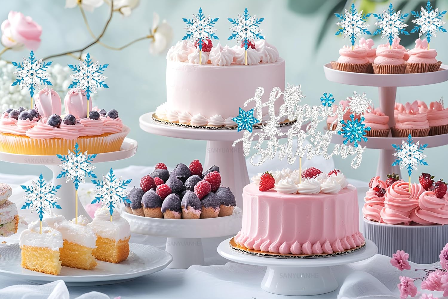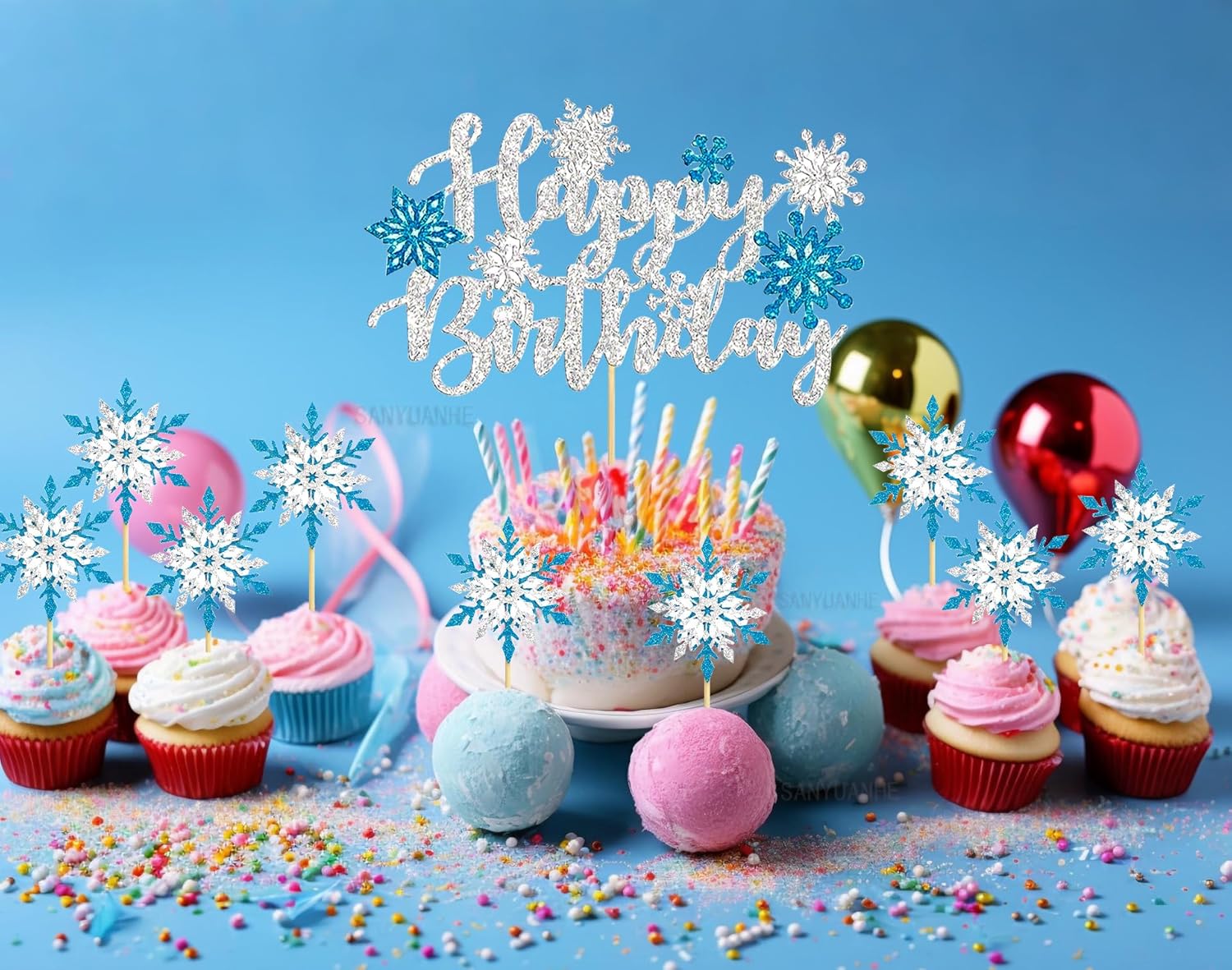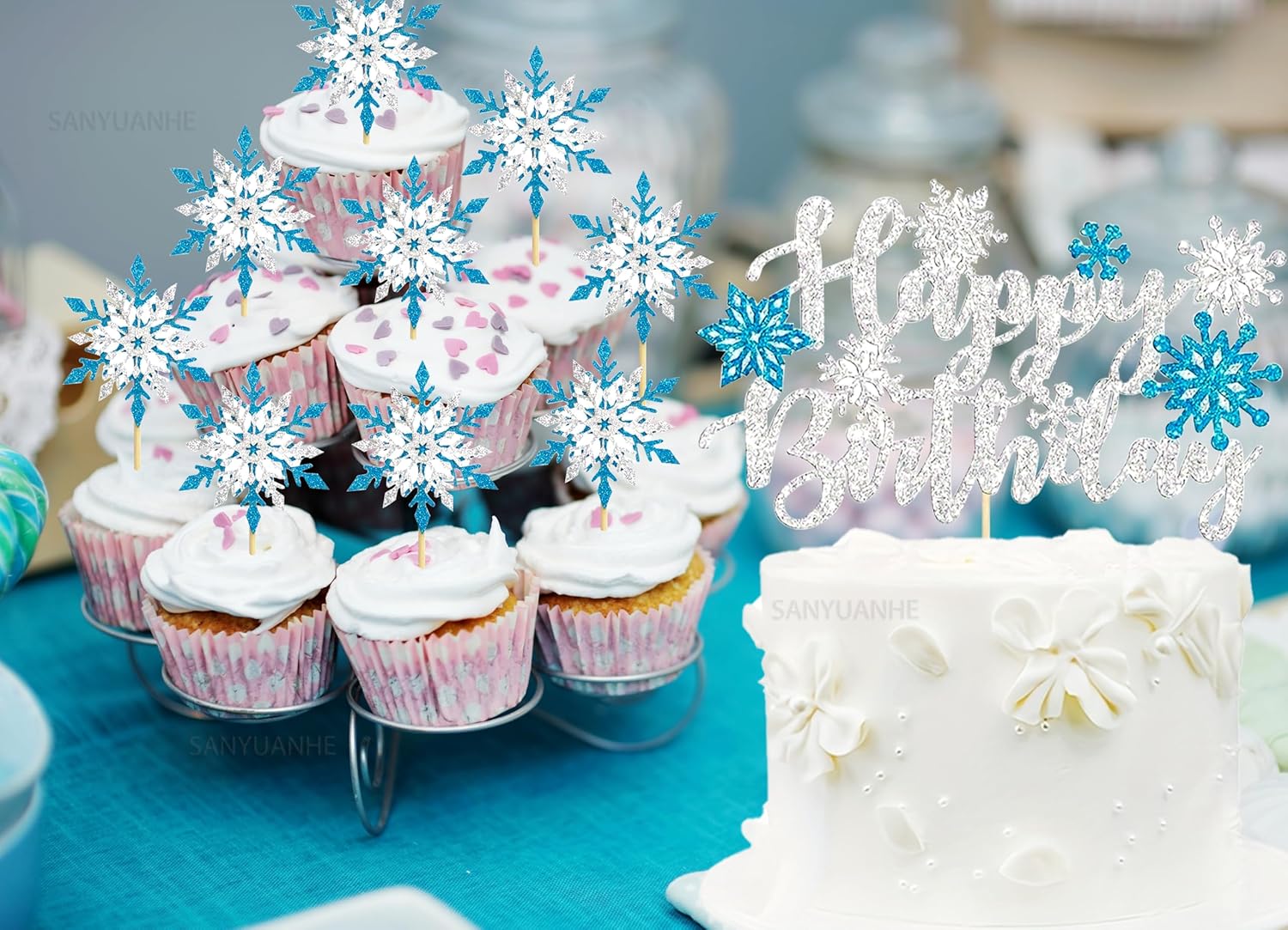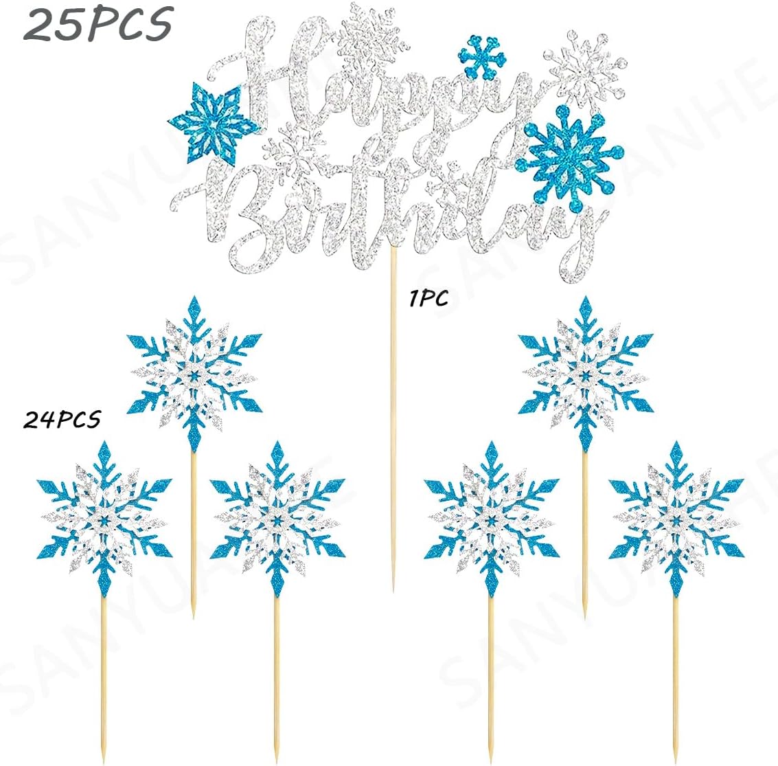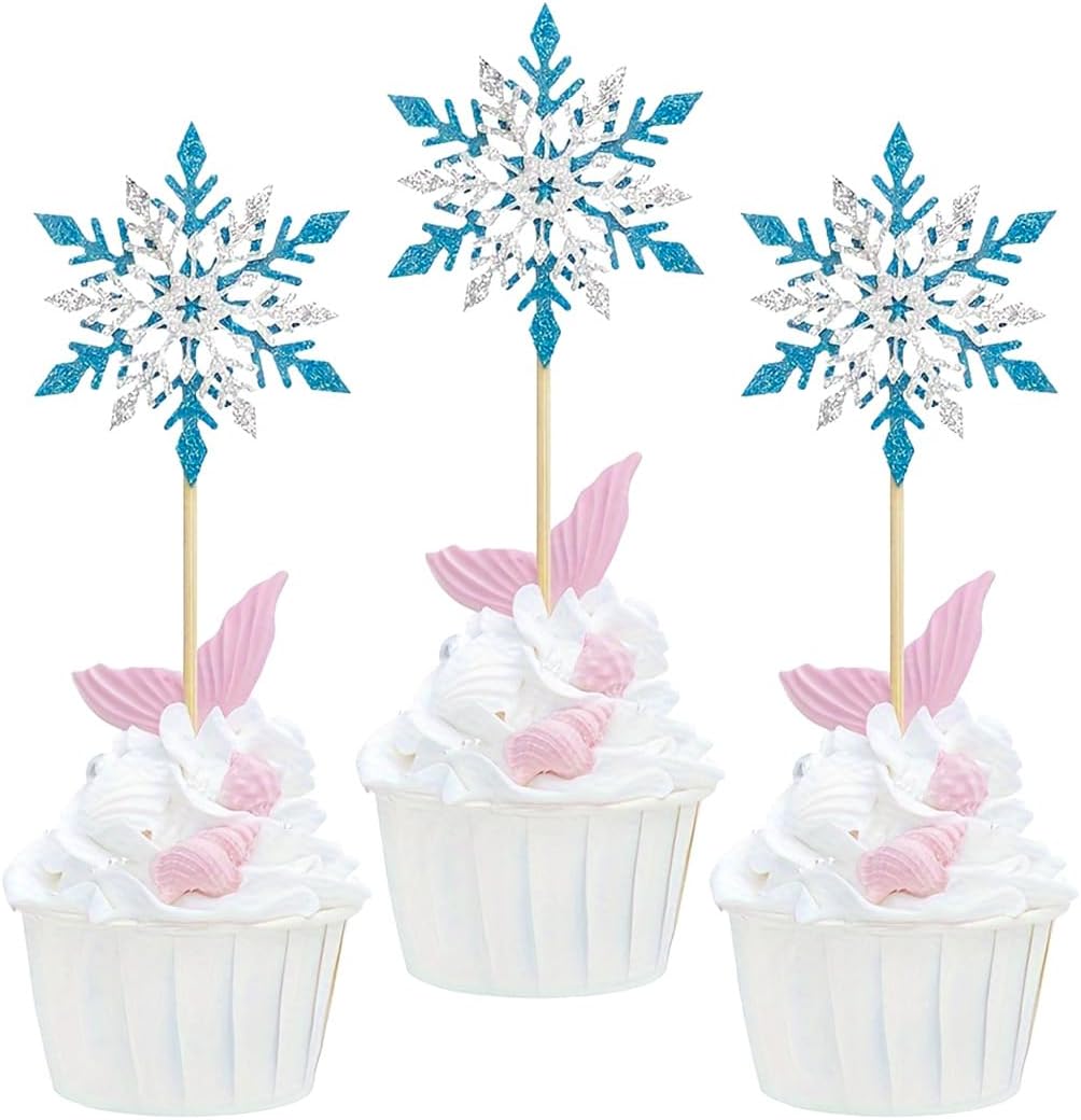 Decorazione per cupcake con fiocchi di neve invernale: 25 pezzi fiocchi di neve decorazione natalizia composta da 1 x 1 topper per torta di compleanno e 1 x 24 fiocchi di neve blu fai da te per torte, sufficienti per soddisfare le esigenze della tua festa di compleanno e rendere indimenticabile la decorazione della tua festa. Fiocchi di neve per torte Decorazione: questa decorazione natalizia a forma di fiocchi di neve luccicanti è carina e emana anche un luccichio sottile ed elegante con cui puoi decorare torte, dessert, cupcake, muffin, gelatine, pane e frutta per fare una buona impressione che soddisfi le tue esigenze per diverse feste, aggiungerà più gioia alla tua festa di compleanno e crea un'atmosfera molto romantica. Fiocchi di neve decorazione per torta Materiale: questi fiocchi di neve per il compleanno invernale sono realizzati in cartone e bastoncini di bambù, inodore e sicuro. I bastoncini di bambù sono privi di sbavature e possono essere facilmente inseriti in torte o cupcake, in modo da poterli utilizzare in tutta tranquillità, divertirsi e creare meravigliosi ricordi per la famiglia e gli amici. Decorazione invernale per torta a forma di fiocco di neve: ogni cappa presenta un design complesso di fiocchi di neve blu e bianchi, ogni fiocco di neve è progettato in modo unico e cattura la magia di un paesaggio invernale. Con il loro aspetto scintillante, trasformate ogni torta in un attimo in un momento clou per una festa invernale con fiocchi di neve. Per aggiungere un tocco di eleganza ai tuoi dessert, queste coperture per torte sono la scelta perfetta. Decorazione invernale per feste per bambini, colore blu ghiaccio, decorazione per torte, fiocchi di neve, fiocchi di neve, fiocchi di neve, fiocchi di neve, decorazioni per bambini, fiocchi di neve glitterati, accessori per feste a tema, idea regalo per bambini, regalo personalizzato, regalo di Natale per bambini Decorazione per torta di compleanno per bambini. Bambine, decorazione per feste invernali, scuola, calendario dell'Avvento, decorazione natalizia, fiocchi di neve, compleanno per bambini, decorazione natalizia a forma di fiocco di neve.