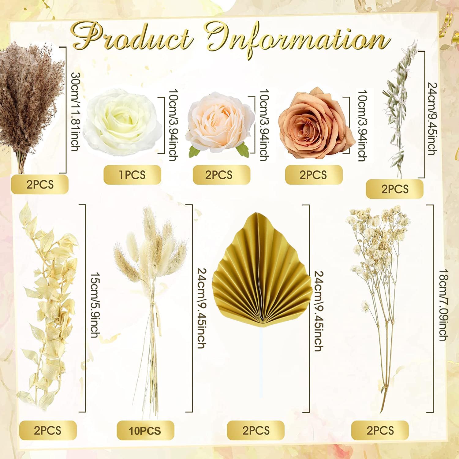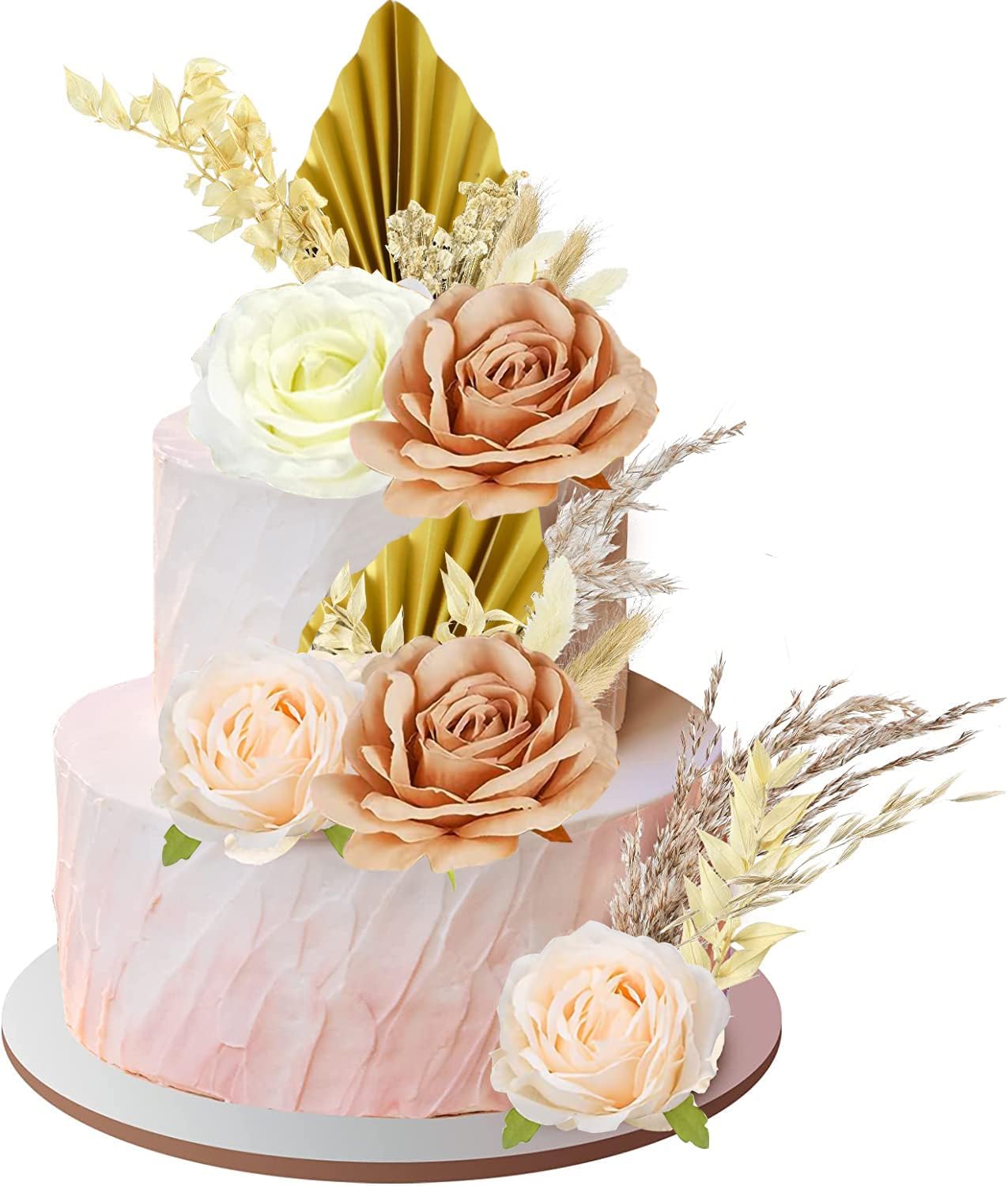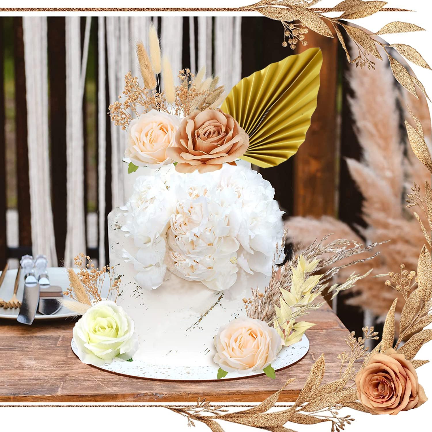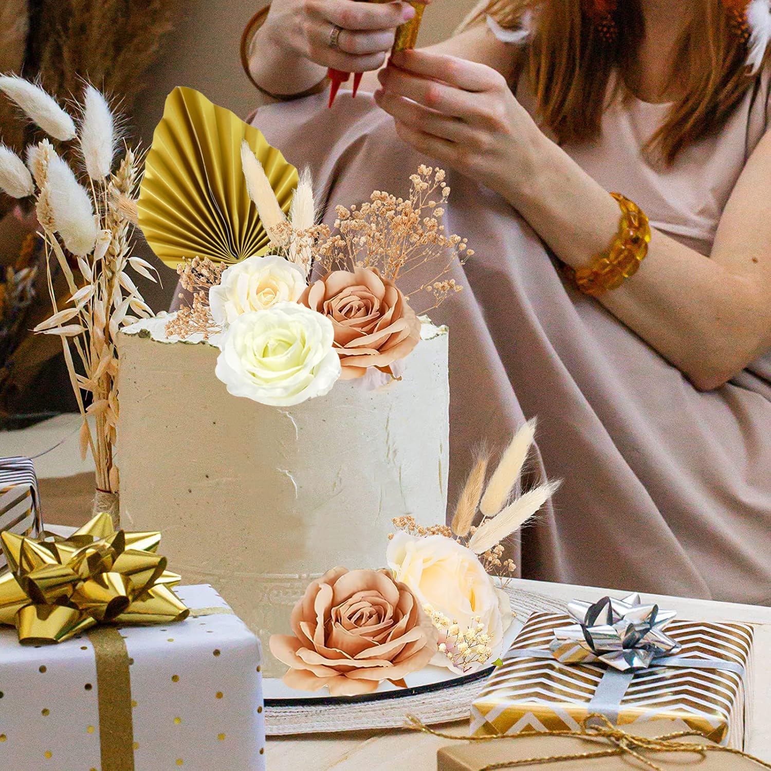 NUOVA COMBINAZIONE: La confezione contiene 25 decorazioni per torte bohémien. 5 fiori artificiali, 2 canne essiccate, 2 avena essiccata, 2 foglie essiccate, 2 foglie di palma dorate, 2 gufi essiccati, 10 code di coniglio essiccate. Abbastanza stili e quantità per la decorazione della tua torta Materiali di alta qualità: questi toppers per torta sono realizzati con materiali di alta qualità, eleganti e raffinati, inodore, sicuri al 100% e non tossici, ma non commestibili, riutilizzabili. Qualità premium che garantisce qualità e durata DECORAZIONE SQUISITA: questi toppers per torta con fiori sono luminosi e vivaci. Incorporano elementi della natura e rendono la tua torta più attraente. Sono di alta qualità e fatti a mano, non sbiadiscono né cadono, creando un forte stile bohémien. SCELTA IDEALE: Questi toppers per torta per ragazze non hanno bisogno di strumenti aggiuntivi, devi solo metterli sulla torta che vuoi decorare come preferisci. Stimolare l'immaginazione e la creatività quando prepari la tua torta può renderla più bella. Rendi la tua torta unica e memorabile Adatta a tutte le occasioni: la nostra decorazione per torta bohémien è adatta per feste di compleanno di adulti, ragazze, ragazzi e bambini e aggiungerà un tocco speciale ad ogni occasione. Perfetto anche per feste a tema, feste, baby shower, matrimoni e altre occasioni importanti