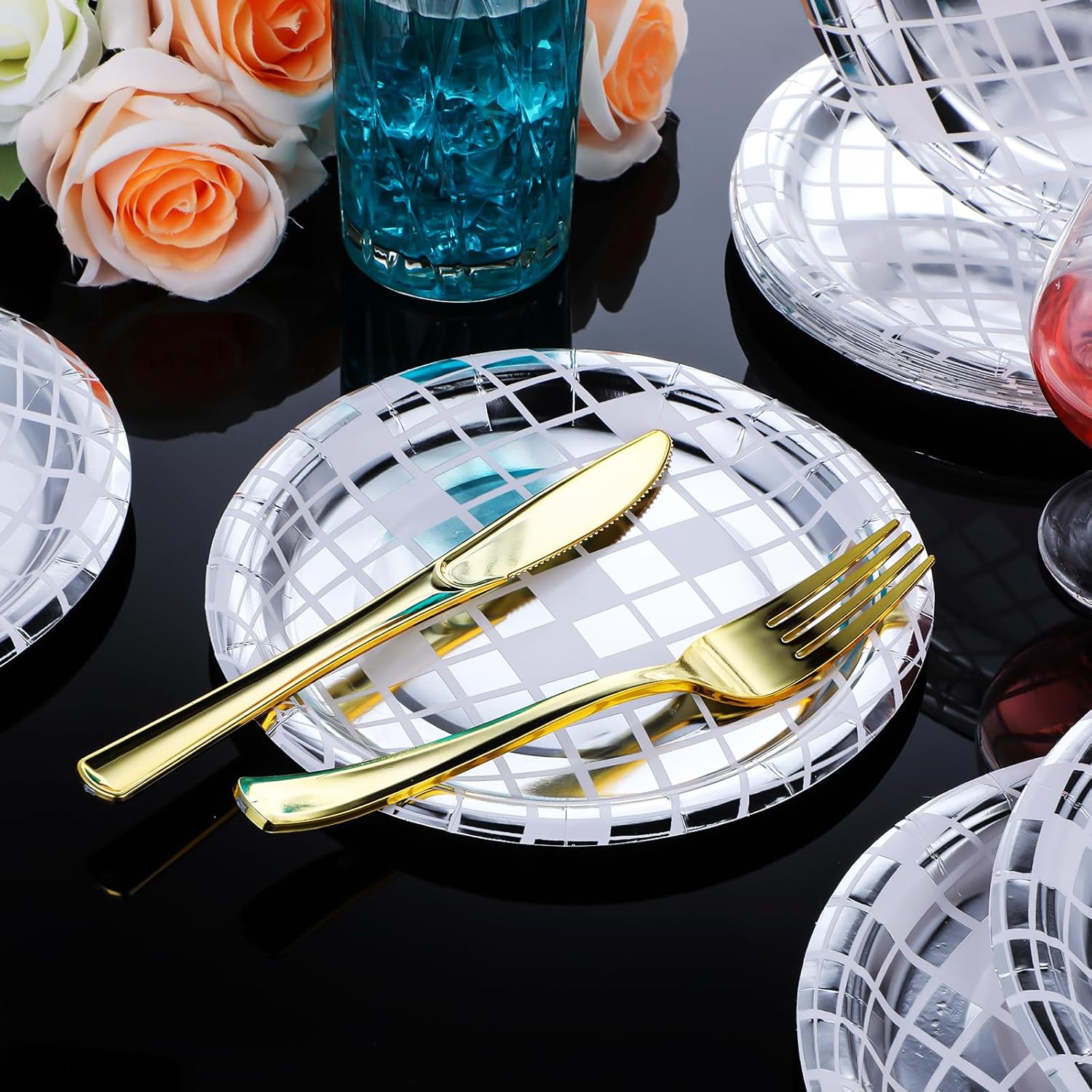 Design luminoso da discoteca: fai risplendere la tua festa con questi piatti da discoteca dal design incantevole a sfera. Le decorazioni luminose e lucide per feste in discoteca sui piatti di carta mettono immediatamente i vostri ospiti nello splendore e nel glamour dell'era della discoteca. I nostri piatti a sfera da discoteca presentano un motivo a sfera da discoteca con un tocco di eleganza retrò, mentre il delicato tono argento aumenta la somiglianza con una vera sfera da discoteca, rendendo i piatti argentati la scelta ideale per feste in discoteca in stile retrò. Facile da pulire: dite addio alla pulizia dopo la festa con i nostri piatti da discoteca usa e getta. Sono progettati per comodità, quindi puoi goderti le celebrazioni senza preoccuparti del successivo lavaggio dei piatti di carta d'argento. Basta buttare via i piatti usati, risparmiando tempo e fatica preziosi. Trascorri più tempo alla festa della mamma e meno tempo in cucina con la nostra soluzione di pulizia semplice. Affidabile e impermeabile: le nostre decorazioni per feste da cowgirl da discoteca non sono solo eleganti, ma anche pratiche. Ogni piatto a sfera è rivestito con una pellicola impermeabile che assicura che le decorazioni per feste anni '70 rimangano resistenti anche a contatto con liquidi. È possibile servire piatti diversi senza il rischio che i piatti si ammorbidano o fuoriescano. Concentrati sull'intrattenimento dei tuoi ospiti mentre le decorazioni per feste a sfera da discoteca fanno questo lavoro senza sforzo. Perfetto per feste a tema: che tu stia organizzando una festa in stile anni '60, 70 o 80, uno spettacolo rock and roll, un evento musicale, una festa da ballo, una baby shower o una festa di compleanno, le nostre decorazioni a sfera da discoteca sono la scelta ideale. Queste decorazioni per addio al nubilato completano perfettamente l'ambiente retrò e creano il palcoscenico per un incontro indimenticabile. Multiuso: le decorazioni vintage e filigranate per feste di compleanno per discoteca sono ideali per una varietà di occasioni, come compleanni, feste, matrimoni, feste discoteca, feste rock, feste chic anni '70 e altre occasioni speciali. Gli accessori per feste in discoteca possono essere utilizzati anche per picnic, gite in campeggio e varie attività all'aperto.