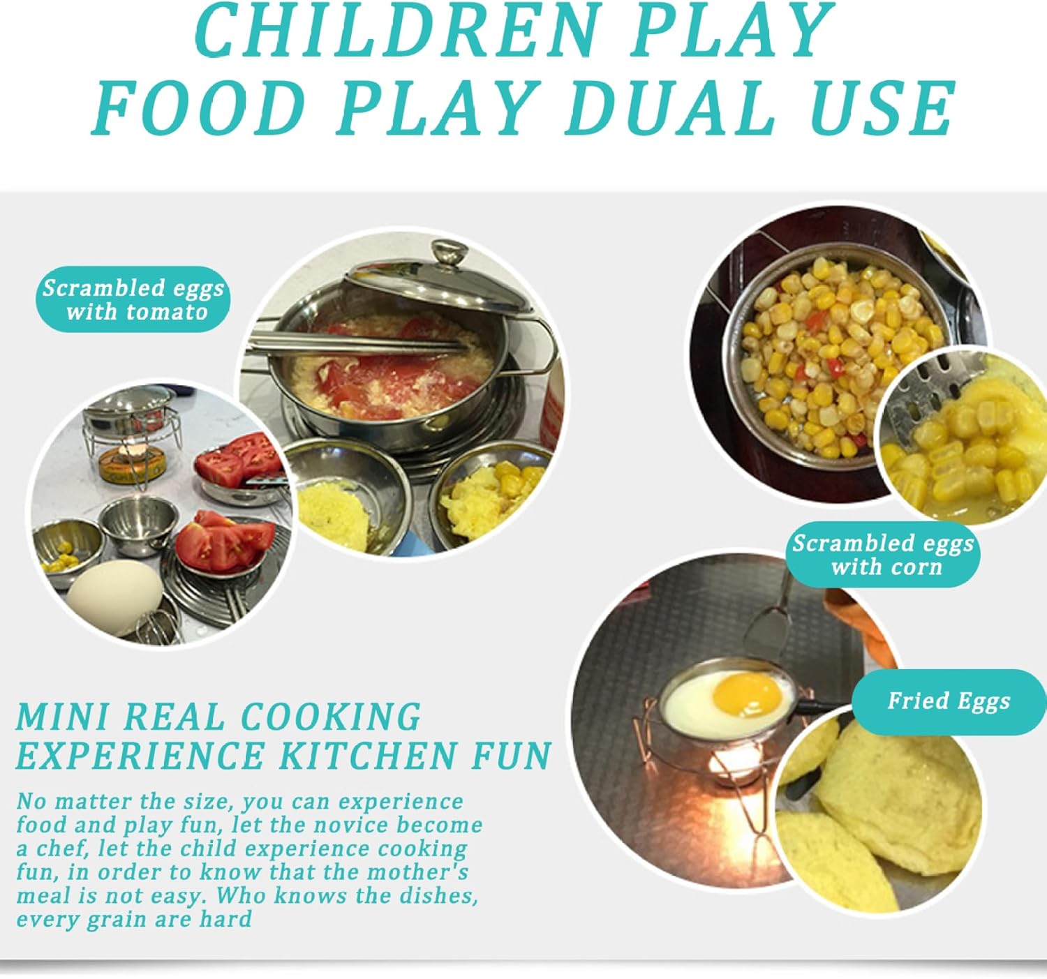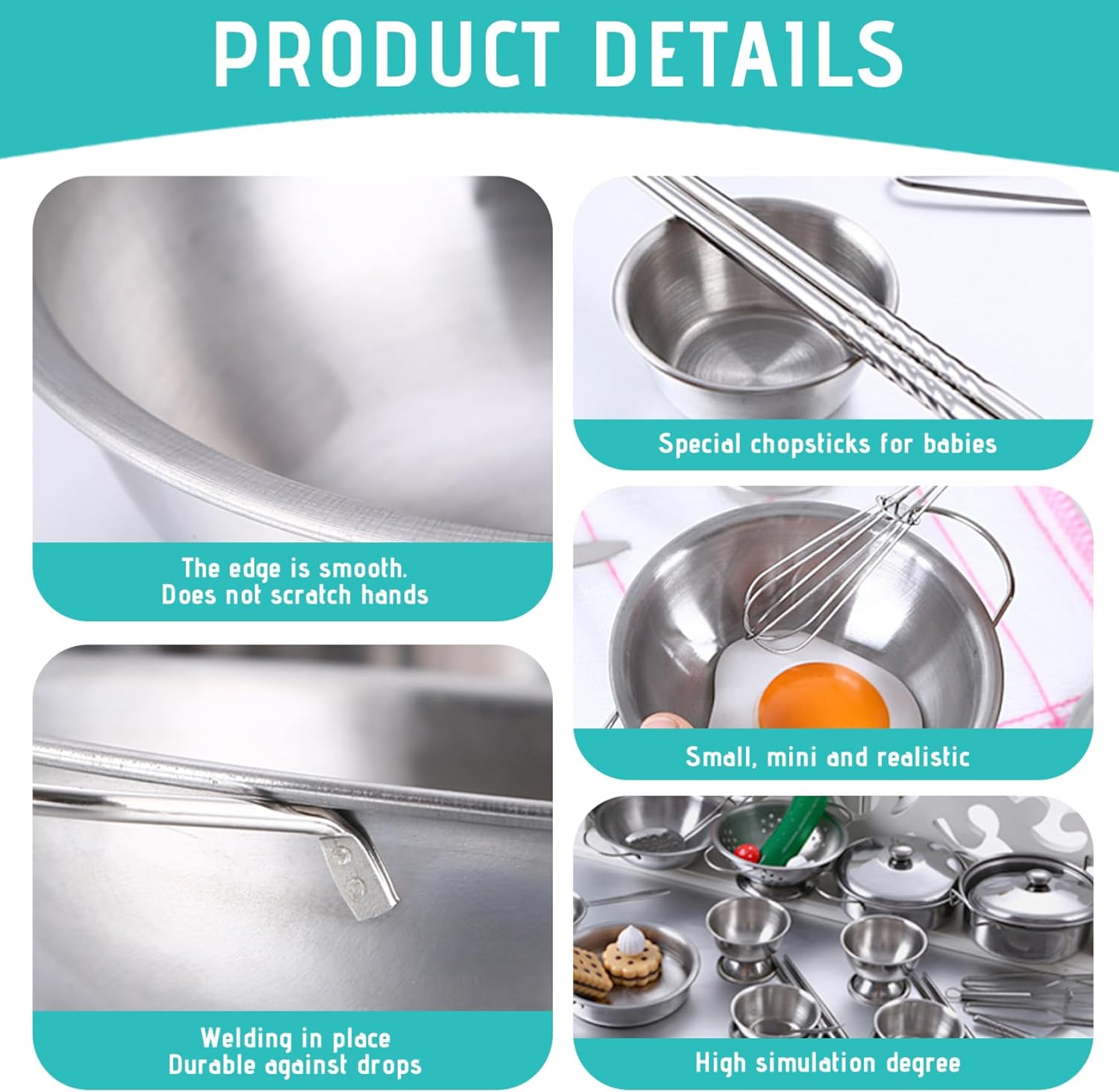 Riutilizzabile e di lunga durata: a differenza dei giocattoli usa e getta, questo set da gioco in acciaio inossidabile è riutilizzabile e progettato per resistere ore di gioco..È una scelta sostenibile che cresce con tuo figlio. Scelta ideale: perfetto per vacanze, compleanni o occasioni speciali, questo set da gioco per pentole e padelle per bambini è un pensiero che unisce divertimento ed educazione..Sicuramente delizierà ogni giovane chef. Costruzione sicura e stabile: realizzato in acciaio inossidabile di qualità, questo set da gioco con pentole e padelle per bambini da 25 pezzi è costruito per durare..I materiali sicuri e non tossici garantiscono la sicurezza del tuo bambino mentre diverte con il gioco fantasioso. Educativo e divertente: questo set da cucina da gioco incoraggia l'apprendimento attraverso il gioco, aiutando i bambini a sviluppare capacità motorie, creatività e senso di responsabilità..È il giocattolo educativo perfetto per i più piccoli. Esperienza in cucina completa: con 25 pezzi tra cui pentole, padelle, utensili e accessori, questo set da gioco offre un'esperienza culinaria completa..I bambini possono imitare facilmente le attività della cucina nella vita reale.
