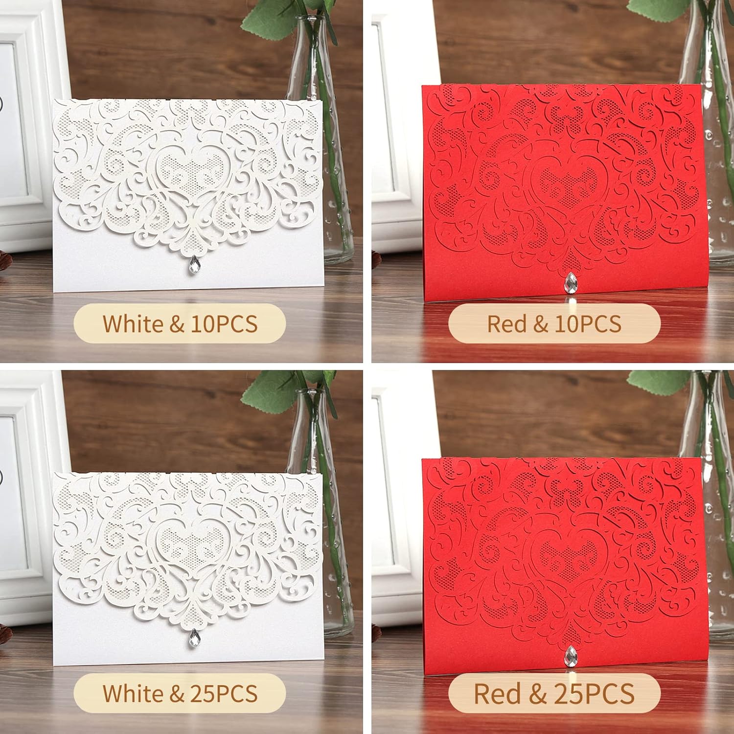 【Exquisite craftsmanship】:The wedding invitation is exquisitely crafted, made of solid paper with blank interior and information left. The design is exquisite and unique, bringing more fun to people 【Elegant design】:The elegant envelope makes these gift cards look very high-quality and keep them clean, beautiful, and classical 【Practical Gifts】:The Best Gift Cards for Children, Parents, Friends, Neighbors, Family, Relatives, Colleagues, Girlfriends, and Lovers 【Holiday use】:Very suitable for holiday parties, and is a gift for Thanksgiving, themed parties, or children 【With protective cover】:Each card has a beautiful protective cover that can be glued and sealed with water droplets