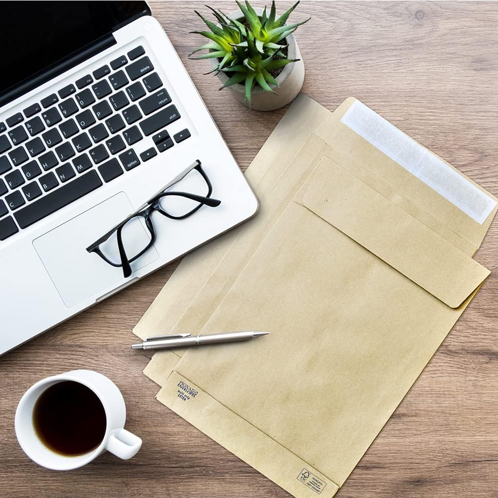 Buste a sacco strip formato 230x330 con soffietti su TRE lati Carta ecologica Riciclata kraft avana FSC da 120 grammi Chiusura Patella Strip Senza Finestra Impacco da 250 Buste
