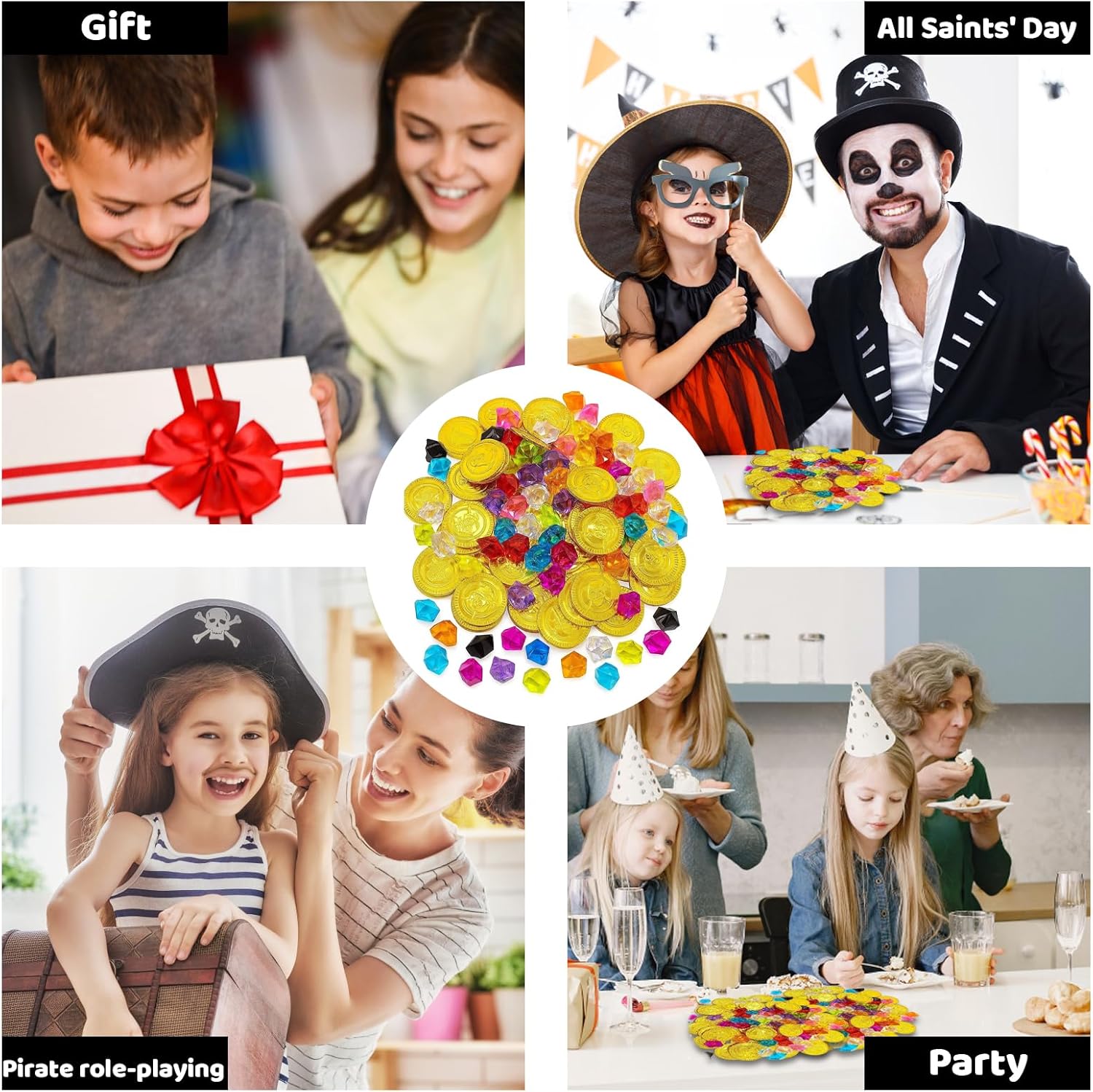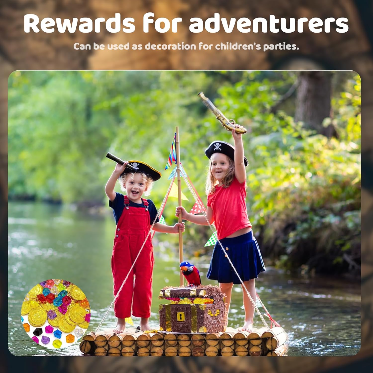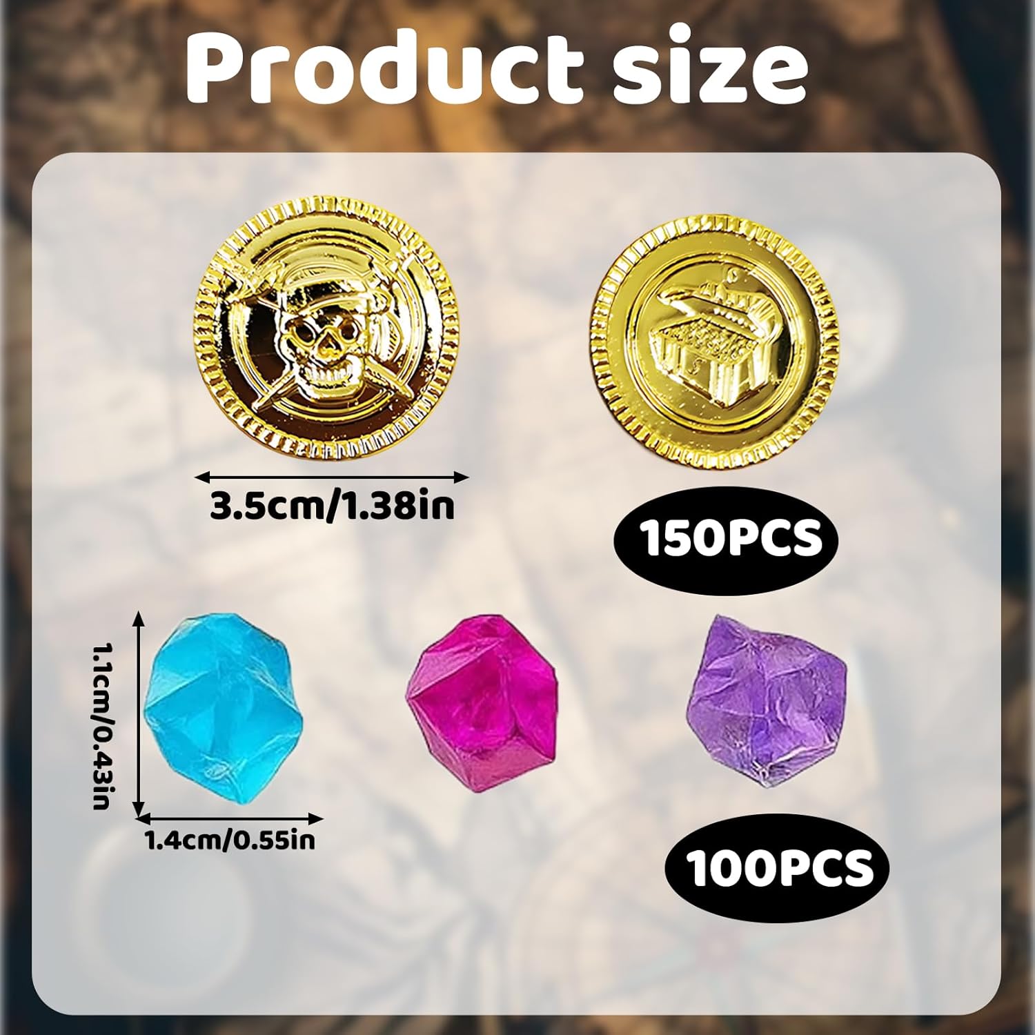 【Set di scrigno del tesoro per bambini】: contiene 150 monete d'oro e 100 gemme colorate per una ricerca realistica del tesoro; perfetto per decorare pirati, compleanni per bambini e altre feste a tema Materiale di alta qualità: le monete d'oro e le gemme sono realizzate in plastica resistente; sicure per i bambini e ideali per l'uso ripetuto in varie attività Molteplici possibilità di utilizzo: ideale per feste pirate, caccia al tesoro, compleanno per bambini 6 anni, giochi di ruolo e come decorazione; favorisce il gioco creativo e l'interazione sociale 【Facile da usare】: facile da trasportare e distribuire; perfetto per genitori e organizzatori di feste che cercano una soluzione semplice per il loro evento 【Divertimento e divertimento】: le monete d'oro per bambini e gemme aggiungono entusiasmo ai piccoli avventurieri; creano momenti indimenticabili in ogni attività pirata