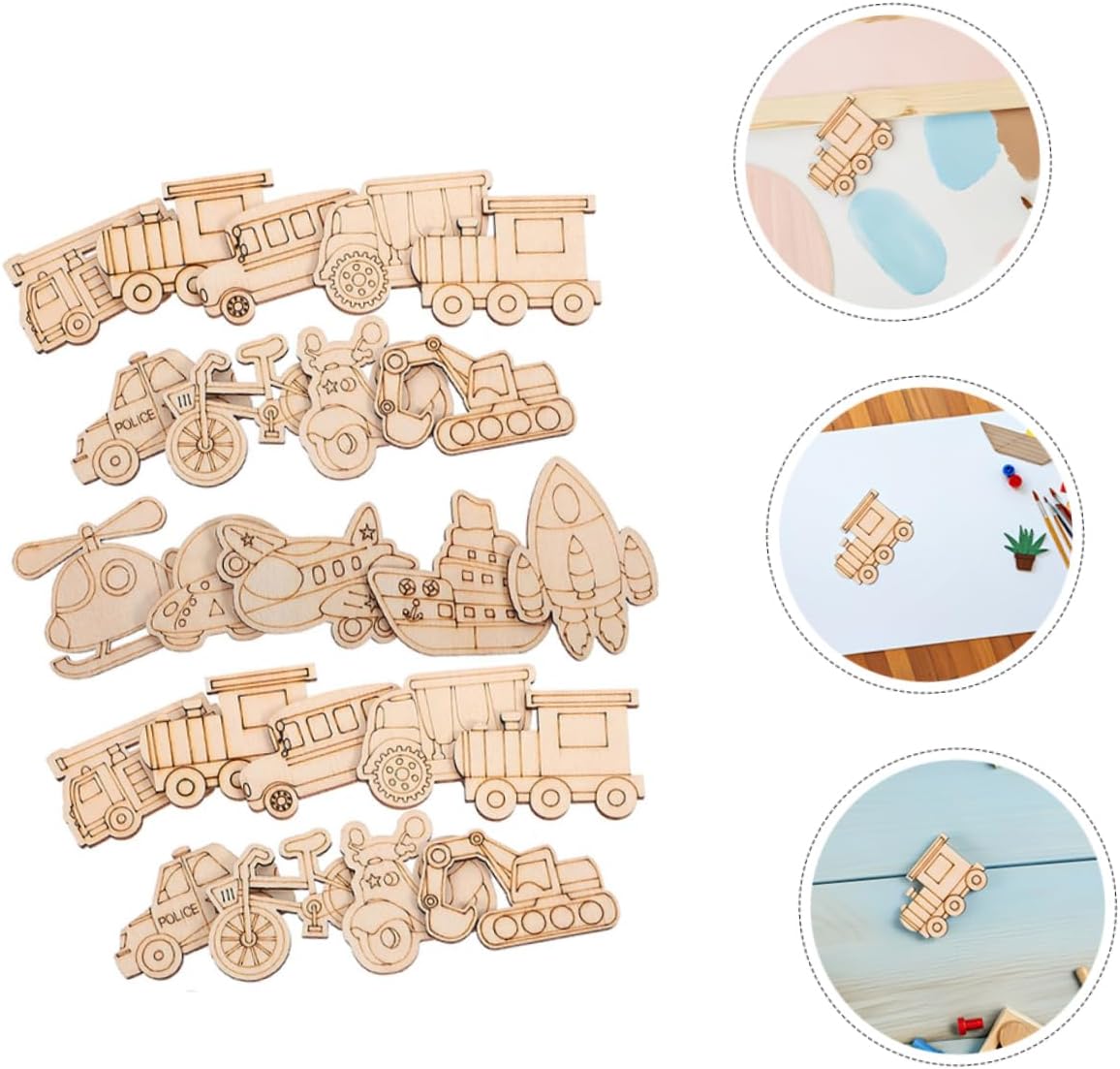 Artigianato fatto a mano: ogni giocattolo è meticolosamente realizzato a mano, garantendo un'elevata durata, abbellimenti in legno per l'artigianato, ritagli di veicoli in legno Materiali sicuri per i : realizzati con materiali sicuri e affidabili, che garantiscono il benessere dei , sagome di veicoli in legno grezzo, sagome di artigianato per il trasporto Creatività stimolante: ogni pezzo è frutto della creatività e del gioco fantasioso dei , trucioli di legno a forma di veicolo, fette di veicolo non finite Gioco versatile: presenta ritagli di legno non finiti di vari veicoli e forme, offrendo infinite possibilità di gioco per i , fette di legno, ritagli di legno per dipingere Set di giocattoli vario: contiene sagome di legno non finite di elicotteri, automobili, ufo ed escavatori, offrendo diverse opzioni di gioco, etichette di legno non verniciate, etichette di legno per veicoli fai da te