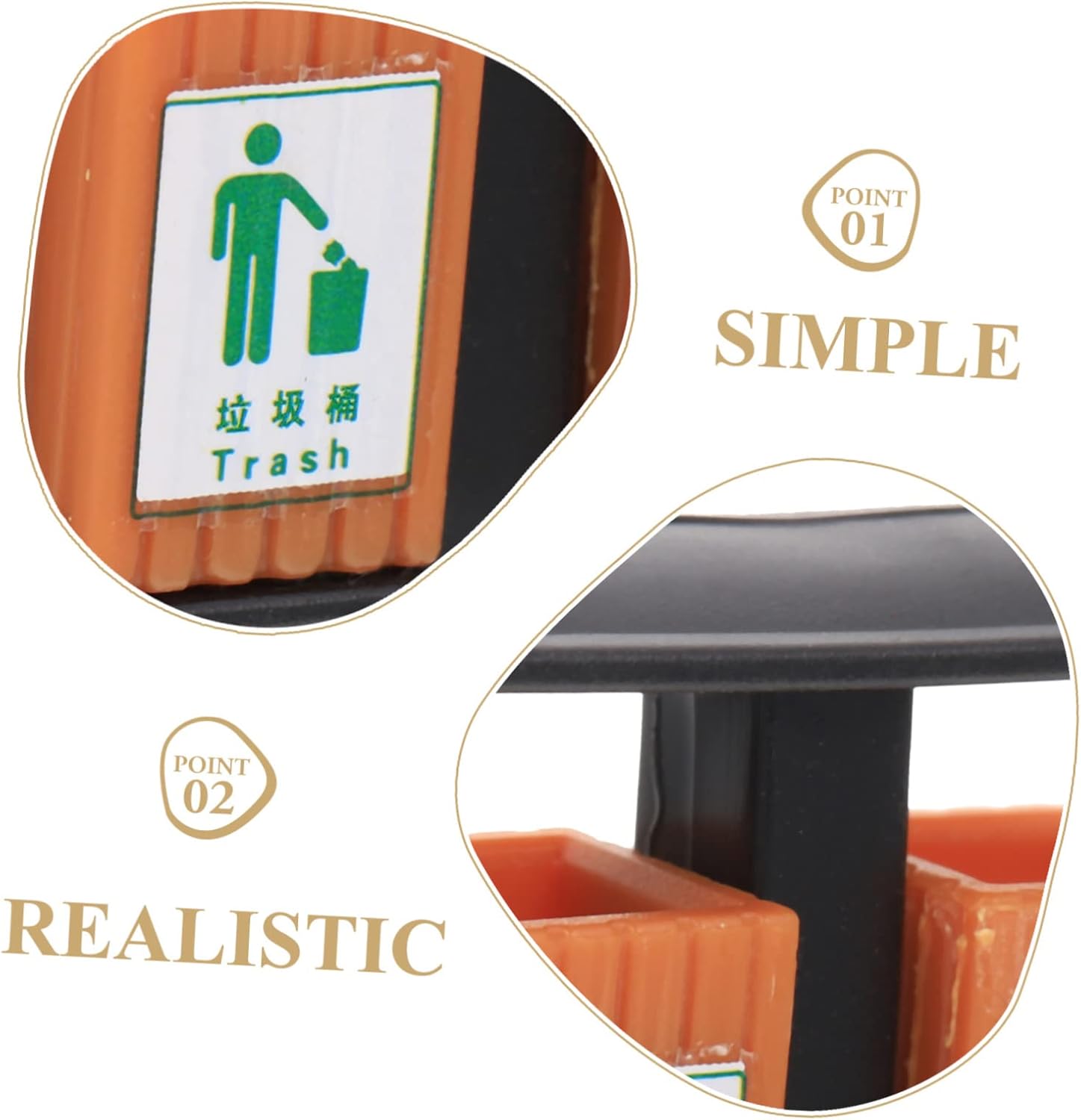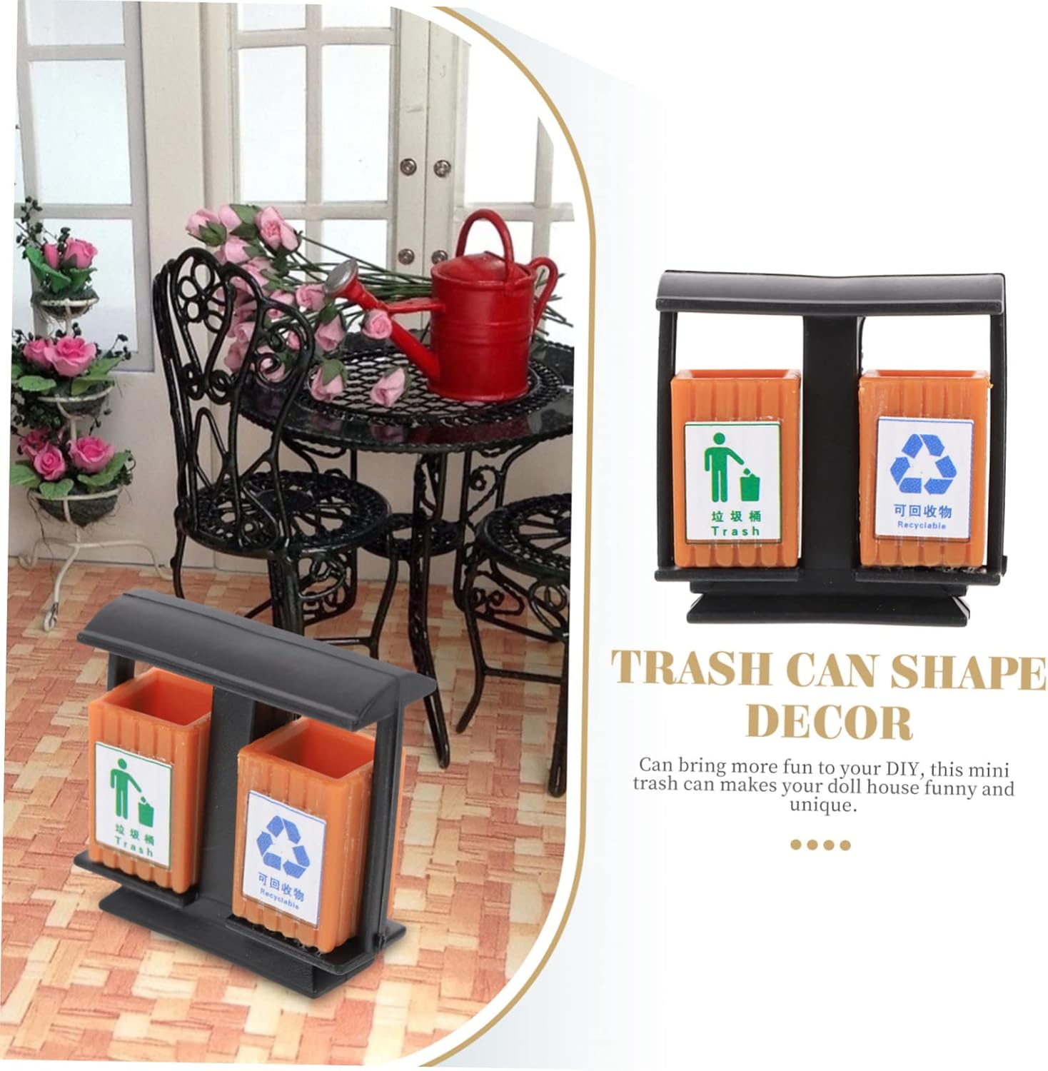 Ornamento per casa delle bambole: pattumiera per casa delle bambole: design realistico con lavorazione eccellente, un buon accessorio per la tua mini casa. Decorazione del cestino della spazzatura del tavolo in sabbia: buon materiale abs con prestazioni stabili e lunghi tempi di manutenzione. vari usi, possono essere usati accessori per la casa delle bambole, giocattoli per bambini, oggetti di scena cognitivi e così via. Materiale fai da te: multiuso, questo mini bidone della spazzatura può essere utilizzato per decorazioni di scene di vita in miniatura, lavori fai da te, ecc. Bidone della spazzatura: il mini bidone della spazzatura viene generalmente utilizzato per la decorazione della scena per aumentare l'effetto del livello della scena del tavolo di sabbia. Gioco di smistamento dei rifiuti: ottimo per aggiungere un'atmosfera di vita alla tua mini casa, elegante e adorabile. può anche essere servito ornamento da scrivania con questo ornamento divertente e delicato.