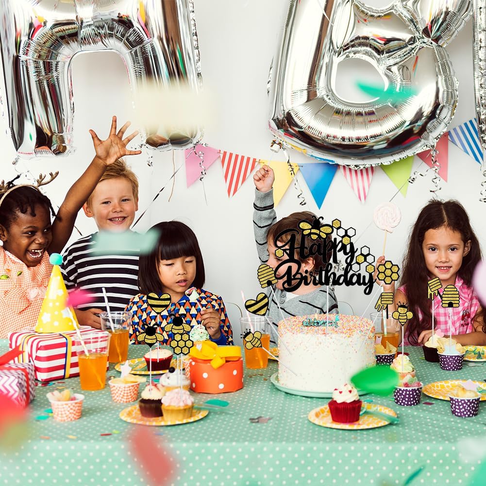 Materiale Ecologico: Cake topper Realizzato in carta resistente e bastoncini di bambù, leggero e adatto a decorazioni alimentari. Il materiale non tossico è ideale per feste dei bambini, garantendo praticità e un design a tema ape senza elementi metallici Api Decorazioni Torte: Include 2 decorazioni "Happy Birthday" + 24 topper per cupcake. Quantità sufficiente per torta principale e dolcetti, creando un tema ape coordinato senza acquisti aggiuntivi. Ideale per feste di bambini Facile da usare: Decorazioni torta pre assemblate con bastoncini, basta inserirle in torte e cupcake. Nessun attrezzo richiesto, adatto anche a preparazioni con i bambini, ottimizzando i tempi per feste a tema Versatilità Decorativa: Oltre a torte e cupcake, cake toppers abbellisce biscotti, gelati e tavole buffet. I motivi api e fiori aggiungono un tocco allegro a baby shower, compleanni o merende a tema natura Design Accattivante per Bambini: Addobbi compleanno bambino sagome api colorate con dettagli delicati, studiate per attirare l'attenzione dei più piccoli. Creano centrotavola fotogenici e rendono i dessert festivi più coinvolgenti