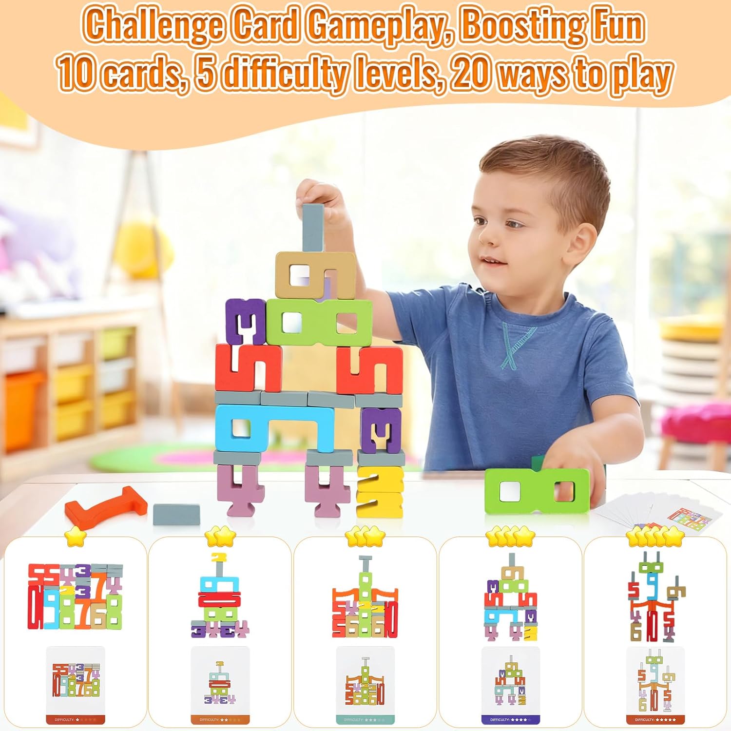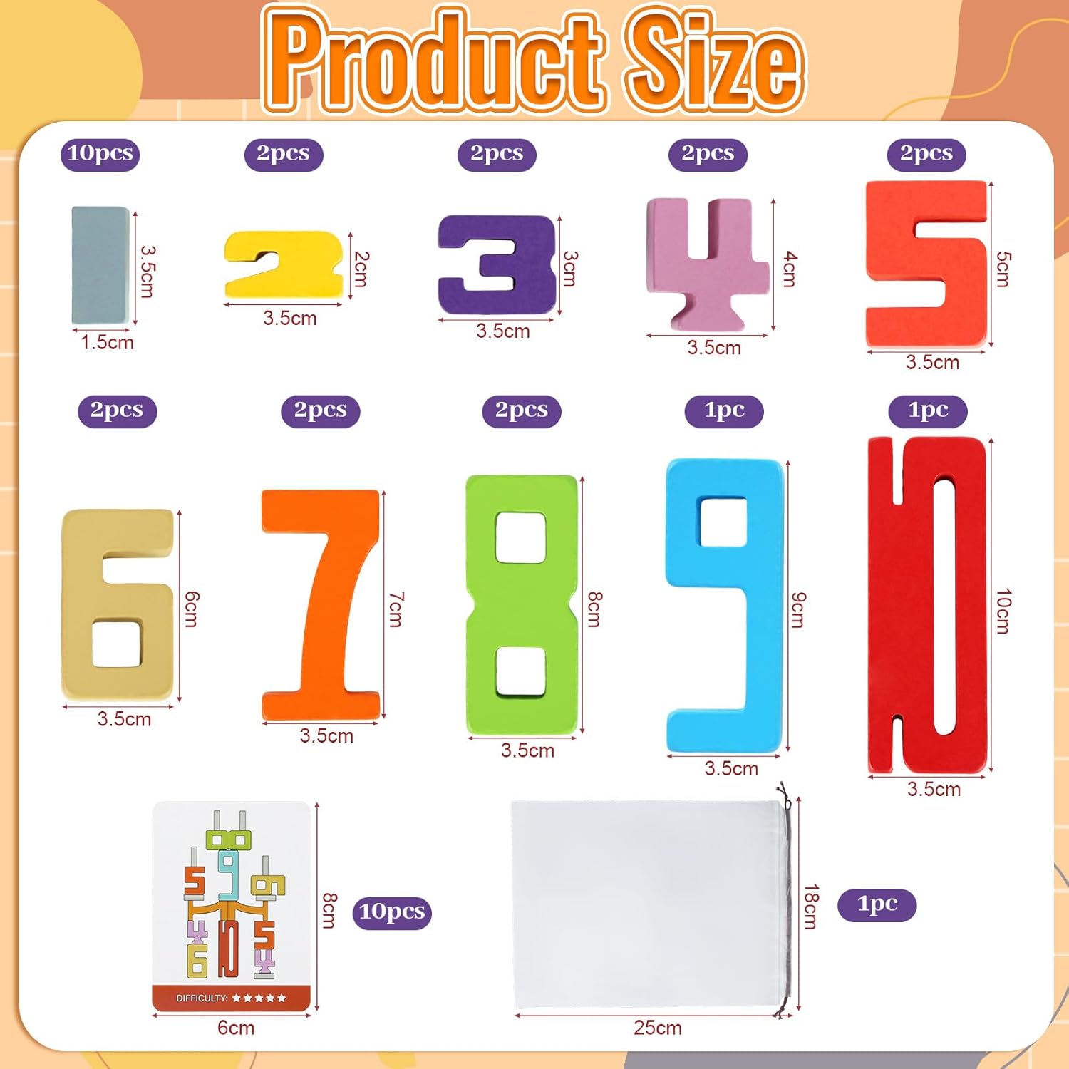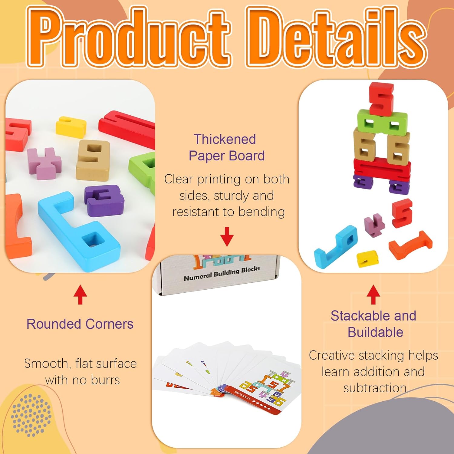 Set per la costruzione dei numeri: il set di risorse di apprendimento contiene 26 blocchi numerici e 10 carte interattive con 20 puzzle di diversi livelli di difficoltà su entrambi i lati. Questi vanno da 1 a 5 stelle e 5 livelli di difficoltà tra cui scegliere. Il set include anche 1 custodia, in modo che questi giocattoli possano essere riposti rapidamente. Questi blocchi di costruzione migliorano la comprensione dei numeri dei bambini e gettano le basi per il successivo apprendimento di addizione e sottrazione. MATERIALE SICURO E DUREVOLE: i nostri numerici sono realizzati in legno di alta qualità e sono caratterizzati da superfici lisce e piane senza bordi taglienti, garantendo una robusta durata. I giocattoli a blocchi numerici sono rivestiti con vernice atossica a base d'acqua e si distinguono per i colori vivaci, sicuri per i bambini e garantiscono un uso sicuro. PRECEDENZA SVILUPPO MATEMATICO: il set di mattoncini segue la pedagogia montessori e promuove lo sviluppo matematico dei bambini in anticipo. I bambini possono percepire le dimensioni e le sequenze dei numeri (1-10) toccando e osservando, approfondendo così la loro comprensione dei numeri. I blocchi numerici in legno sono una scelta ideale per i bambini in età prescolare e da giardino. PROMUOVERE LA FANTASIA E LA CREATIVITÀ: questi mattoncini sensoriali aiutano i bambini a sviluppare la loro capacità di riconoscere colori, numeri e forme. Inoltre, questi mattoncini da costruzione in legno stimolano i bambini a dare libero sfogo alla loro immaginazione, esplorare diverse possibilità di impilare e organizzare i numeri e migliorare la coordinazione occhio-mano e la capacità spaziale. REGALO IDEALE PER BAMBINI: i blocchi da costruzione in legno consentono ai bambini di sviluppare il riconoscimento della forma, la percezione spaziale e altre abilità durante l'apprendimento della costruzione e l'impilamento, rendendoli un regalo divertente e pratico. Questi mattoncini da costruzione combinano l'apprendimento con i giochi e sono quindi il regalo ideale per feste di compleanno, feste e altre occasioni speciali.