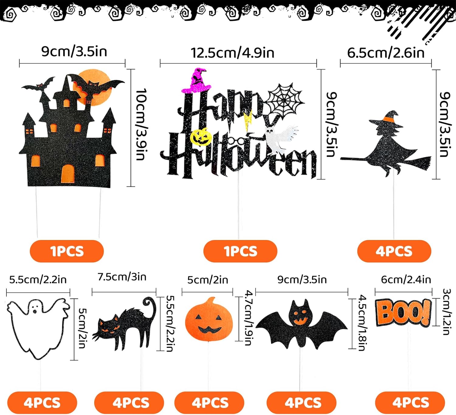 【Materiale di alta qualità】Questo Decorazioni Torta Halloween è realizzato in cartoncino lucido di alta qualità con retro bianco. Può essere a contatto diretto con gli alimenti, è atossico, inodore, resistente e sicuro da usare. Il cake topper halloween non è preassemblato, quindi sarà necessario incollarlo prima dell’uso 【Halloween Cupcake Topper】Ogni confezione contiene 26 pezzi di questo cake topper halloween, suddivisi in 8 modelli diversi con classici elementi di Halloween come zucche, fantasmi, pipistrelli e altro ancora, per soddisfare le diverse esigenze decorative. Sono inclusi anche bastoncini di legno e adesivi in quantità sufficiente. La varietà e la quantità del cake toppers pipistrelli sono perfette per le decorazioni di Halloween 【Design a tema】Il decorazioni torta halloween presenta simpatici motivi in stile cartone animato Q, progettati appositamente per Halloween. I colori vivaci creano un’atmosfera festosa unica e rendono la tua festa di Halloween davvero speciale 【Ampia applicazione】 Questo fantasma cake topper è perfetto per decorare cupcake, aggiungendo un tocco tematico di Halloween e un aspetto visivamente accattivante. È adatto anche per torte di compleanno, muffin e altre decorazioni da forno quotidiane, rendendo i tuoi dolci ancora più invitanti 【Diversi Scenari】Questocake topper halloween è adatto per Halloween, compleanni, feste a tema e altre celebrazioni. È una decorazione ideale per chi ama organizzare feste, offrendo un'opzione creativa e divertente per rendere ogni evento più speciale