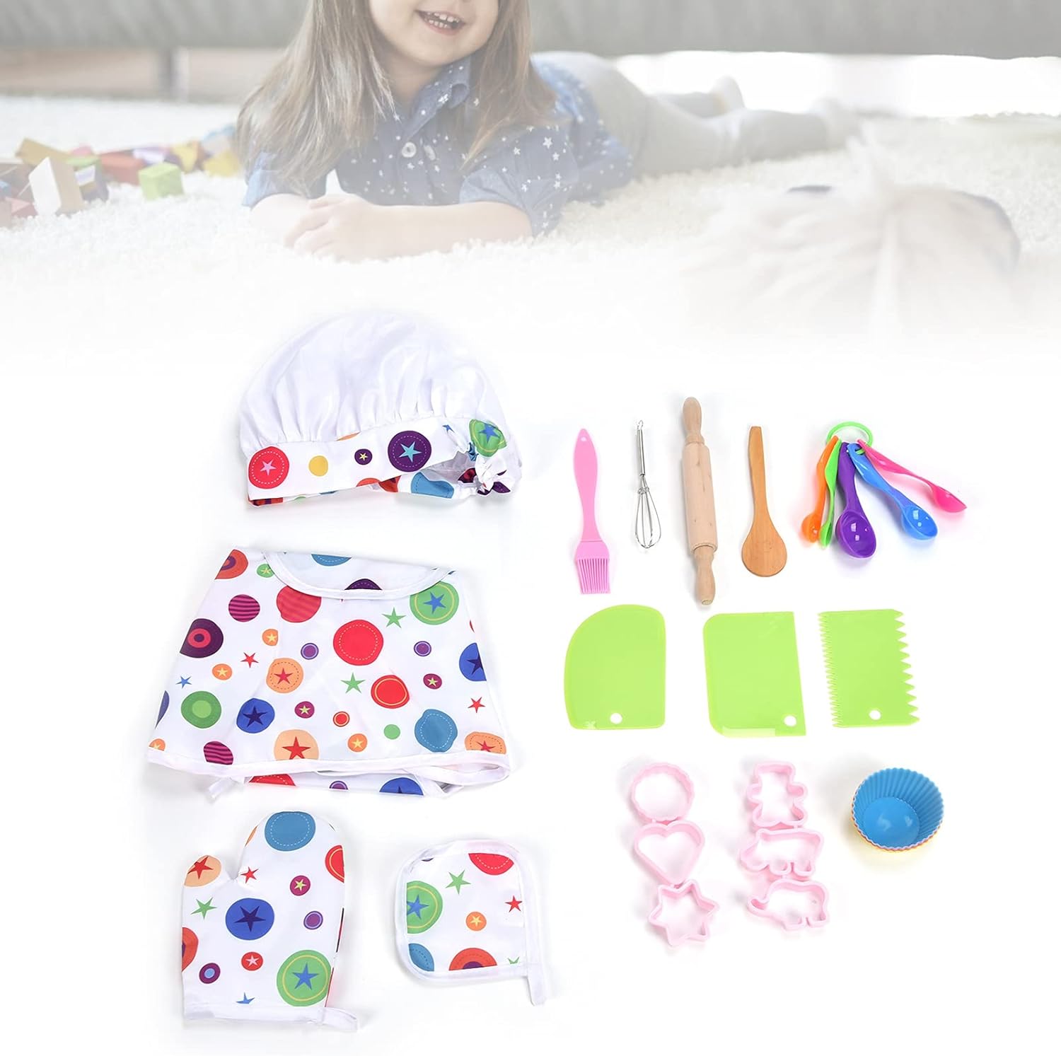 [Sicurezza testata per la tranquillità] Questo set di chef garantisce un uso sicuro per i bambini. Aiuta a sviluppare le loro capacità di auto-cura e pratiche attraverso divertenti attività di cottura. [Divertimento e creatività ] Con 26 provviste in cucina, i bambini possono scatenare la loro creatività e godersi diversi giochi di cucina. Per progetti fai -da -te a casa. [ per bambini] Ideale per compleanni e Natale, questo set da forno porterà gioia ai giovani chef. Lascia che momenti speciali con questo costume da chef. [Materiali durevoli e lavabili] realizzati con materiali di alta qualità, questo set di chef è facile da pulire e di lunga durata. Adatto a bambini di età pari o superiore a 3 anni per ore di gioco divertente. [Momenti di legame in cucina] I bambini possono avere i momenti più felici con i genitori mentre indossano questo set di ruolo di chef. Incoraggia la loro individualità e creatività attraverso il gioco finto.