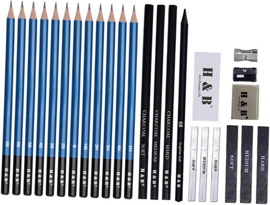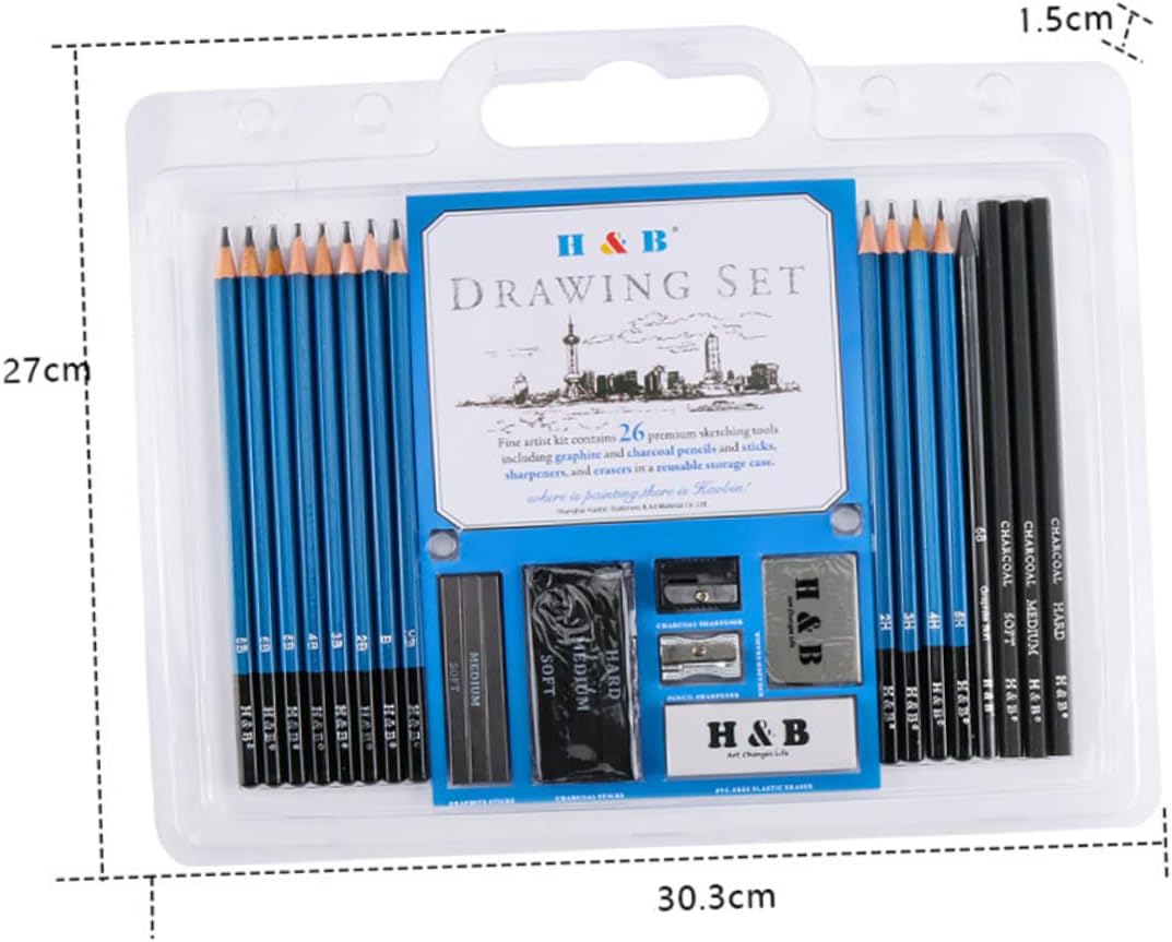 Matita per schizzi e pittura: manterrà tutti i materiali organizzati quando non vengono utilizzati, è possibile utilizzarli a casa, a scuola o in viaggio, materiali artistici Forniture artistiche: il set di matite da disegno da 26 pezzi con matite da disegno è un meraviglioso per natale, compleanno o capodanno e altro ancora, matita da disegno e pittura Progettato per scrivere, disegnare e fare schizzi su carta e pellicola opaca Forniture per matite da disegno per creativi nel campo artistico Una scelta per l'apprendimento del disegno professionale e principiante, artisti, adulti, , studenti, è lo strumento ideale per mettere in mostra il proprio talento nel disegno, ottimo per il disegno di figure, disegno a carboncino per materiali artistici