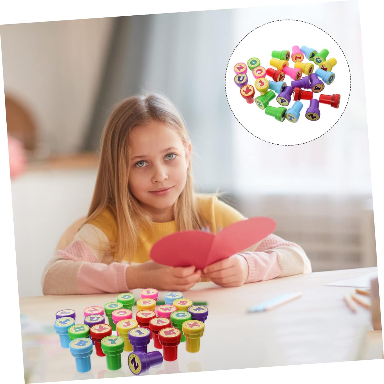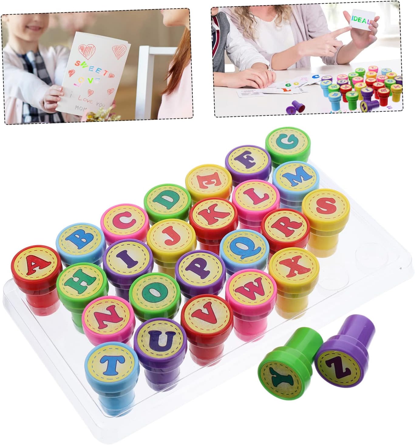Timbri da 26 lettere: questi adorabili timbri sono adatti ai bambini in vacanza, li adoreranno, timbri per lettere Timbro colorato: da tenere in classe o da dare all'insegnante! deliziosi timbri da 26 lettere Giocattolo timbrico da 26 lettere, ottimo per attività artistiche o artigianali, scrapbooking, creazione di biglietti di auguri e decorazione di articoli di cancelleria, articoli per feste Timbri per bambini: adorabili timbri sono sufficienti per permettere ai bambini di realizzare lavoretti e condividerli con i loro amici, timbri autoinchiostranti Premi per la classe: realizzati in materiali plastici, sono inodori, lavabili e riutilizzabili, e possono essere applicati a lungo, timbri preinchiostrati da 26 lettere