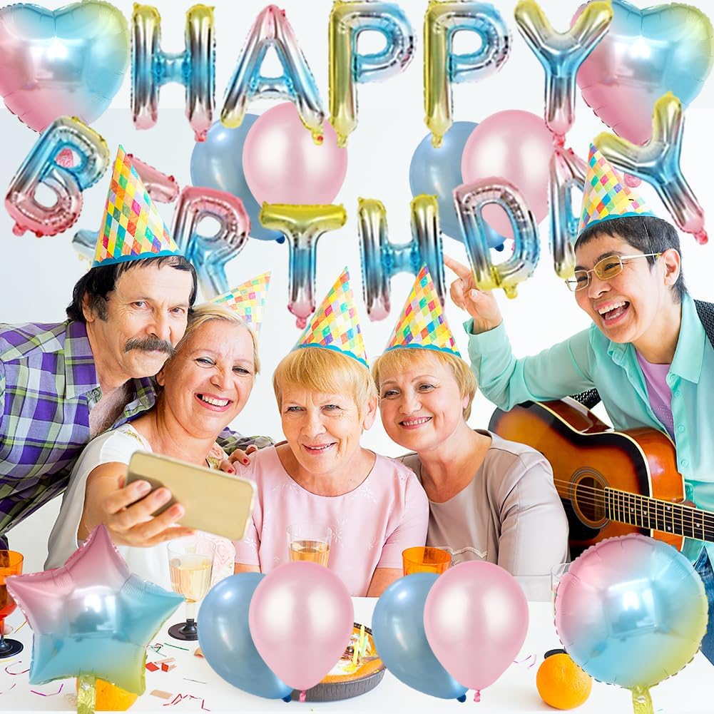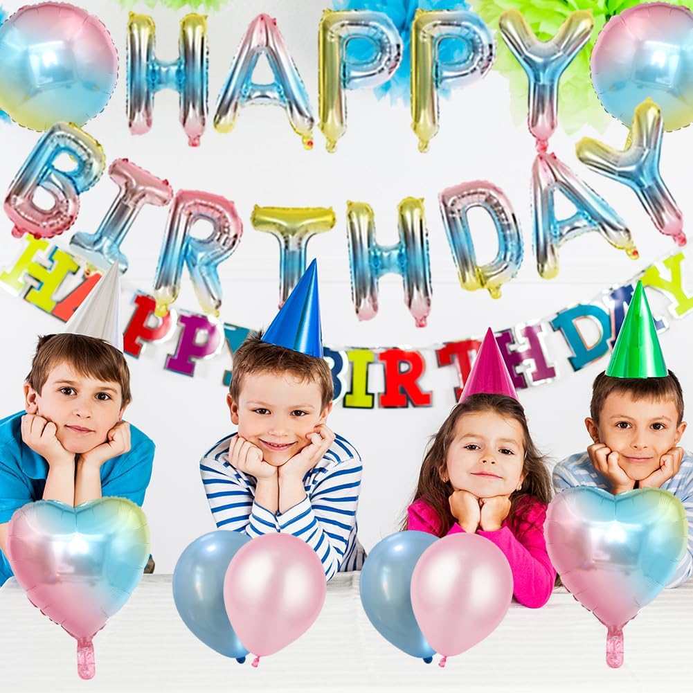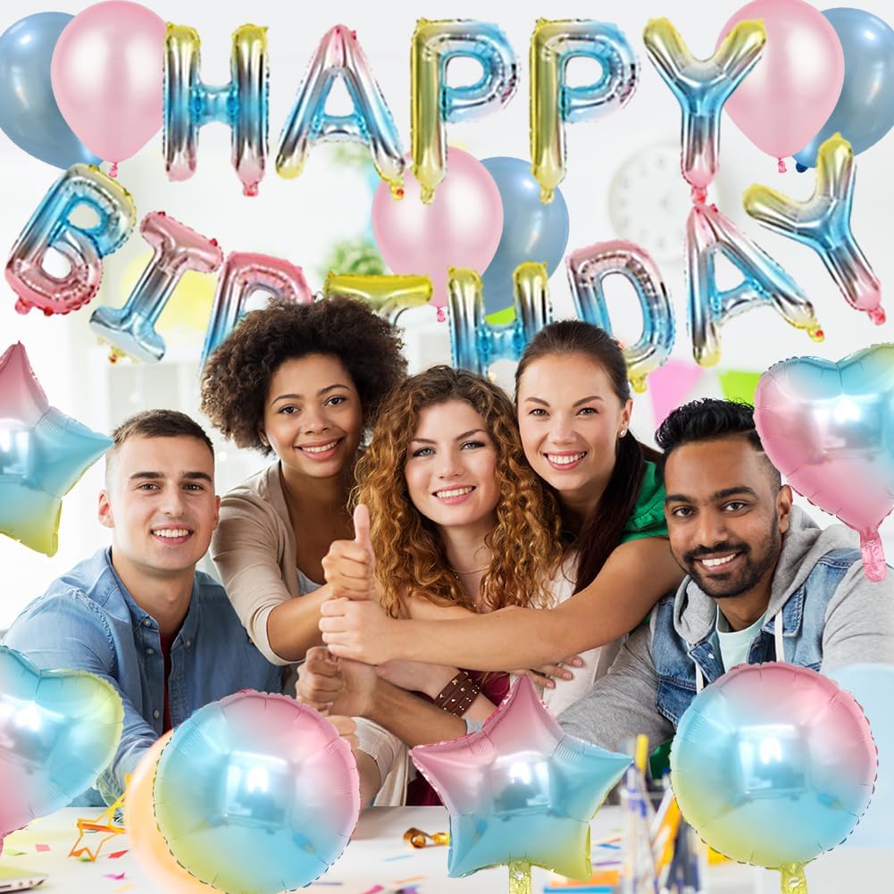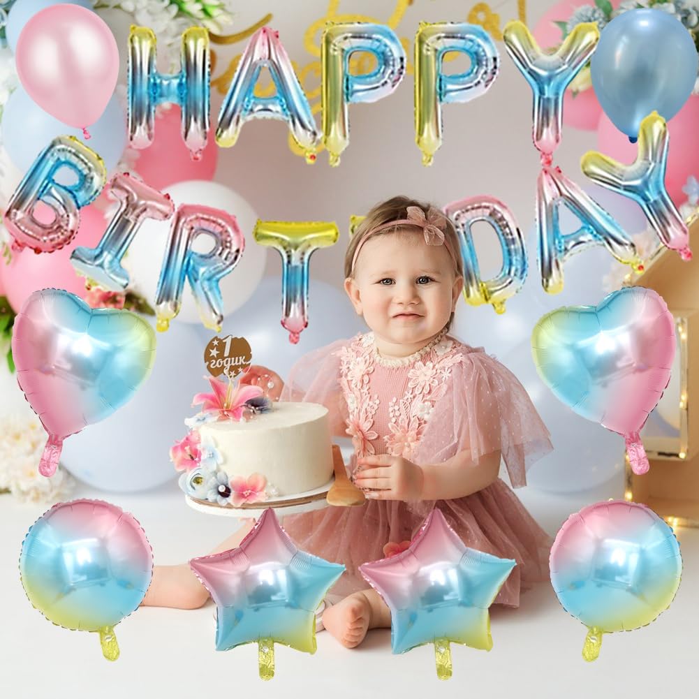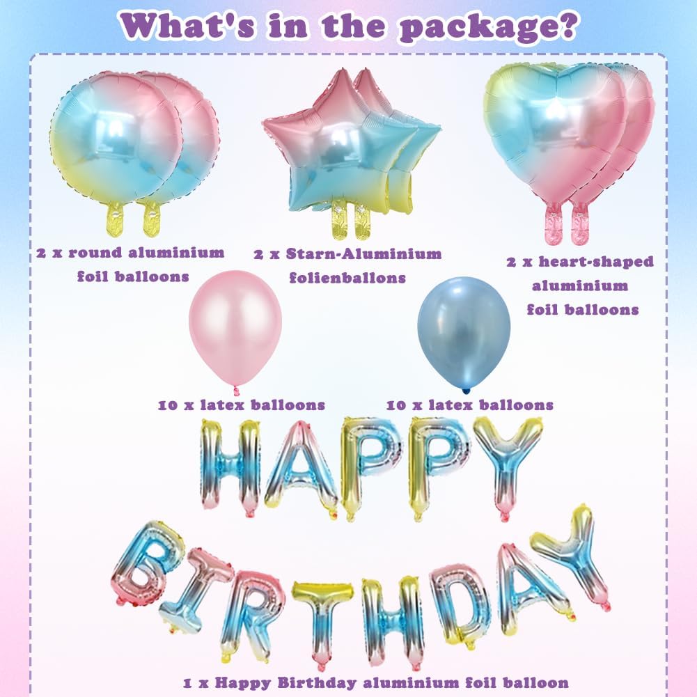 Decorazione con palloncini di compleanno per ragazze color arcobaleno: il set di decorazioni di compleanno comprende 1 striscione con lettere di compleanno, 20 palloncini in lattice, 10 ciascuno in rosa e blu e 2 palloncini in pellicola di alluminio rotondi e a forma di stella, a forma di cuore. Puoi appendere questi palloncini da festa alle porte o alle finestre del soffitto per creare un'atmosfera più romantica. Materiale: i palloncini in lattice per feste sono realizzati in lattice naturale e pellicola di alluminio, i palloncini di compleanno sono facili da gonfiare e durano a lungo, non facili da rompere o scoppiare. Le squisite decorazioni per le feste ti regalano un'esperienza diversa. Facile da usare: le decorazioni di compleanno sono già abbinate a te, puoi usarle per decorare la tua festa di compleanno dopo aver aperto la confezione. Dopo che i palloncini sono gonfiati, possono essere appesi al soffitto, al muro, al giardino, ai rami o usarli per decorare il tavolo della torta della festa con stelle e cuori. Le decorazioni per torte daranno alla tua torta un aspetto completamente nuovo. Design romantico: i palloncini sono progettati a forma di cuore e con sfumature di colore arcobaleno, per farti sentire romantico e abbastanza dolce da attirare l'attenzione del tuo amante. Colori da sogno e graziose forme a cuore creano un'atmosfera romantica per la festa. Perfetto per tutti i tipi di feste: matrimoni, celebrazioni, vacanze, compleanni, feste, anniversari, addio al nubilato, alberi di Natale, lauree, decorazioni per la casa, feste di Capodanno o altre feste a tema. Perfetto per feste o festival.