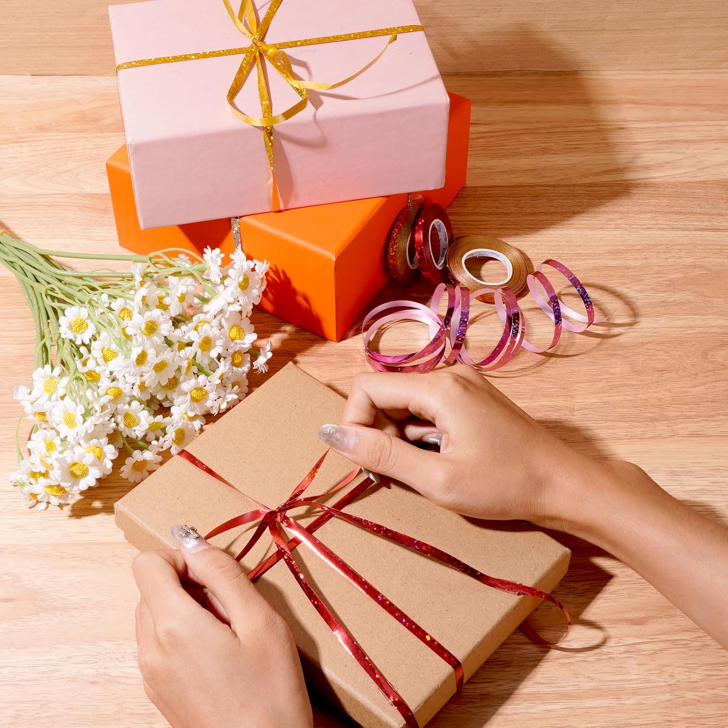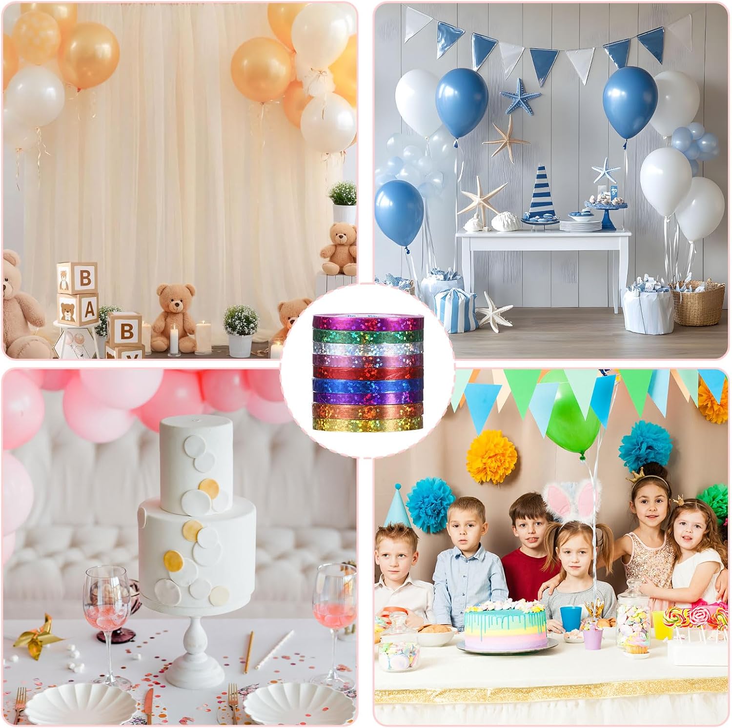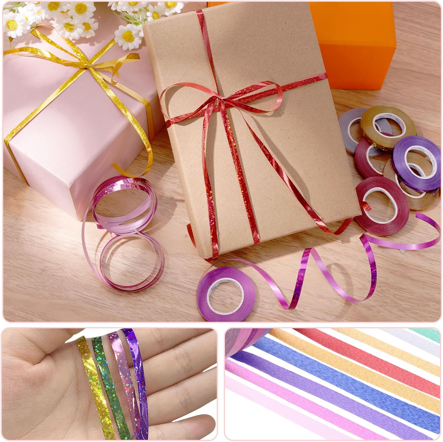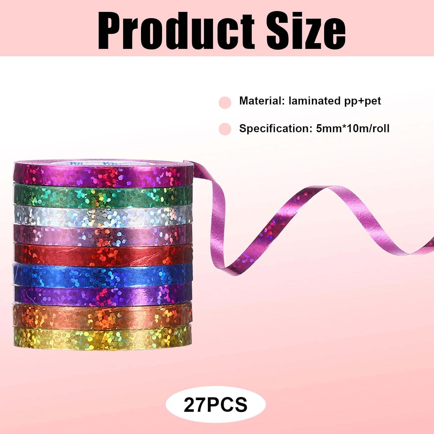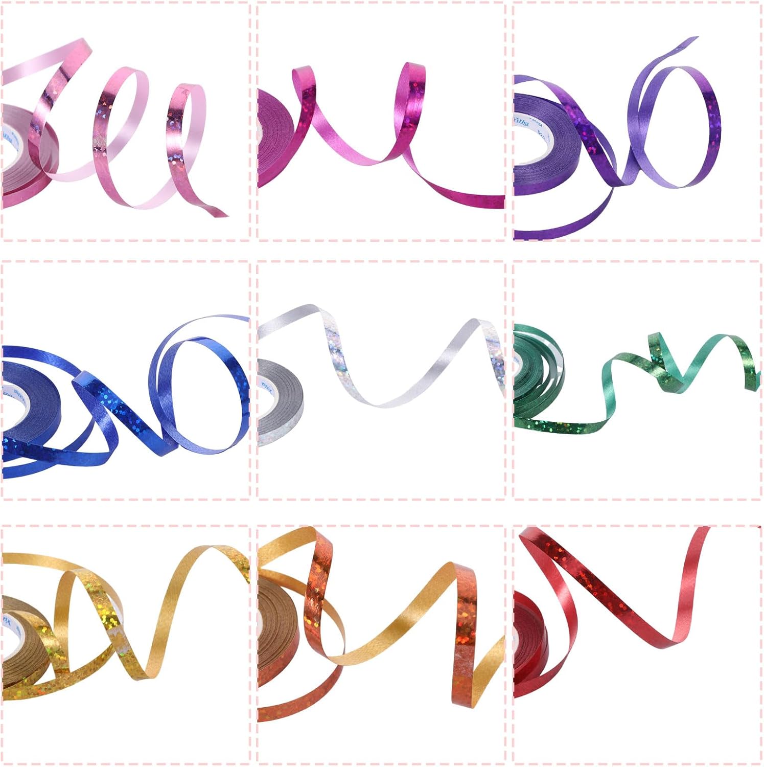 Selezione versatile dei colori: il nostro set comprende 27 rotoli di nastro regalo, inclusi 9 colori con 3 rotoli ciascuno, inclusi nastro regalo blu e nastro regalo rosa. Questa varietà permette di dare un tocco personale ad ogni celebrazione, che si tratti di compleanni, feste di famiglia o occasioni speciali. Ogni rotolo misura 5 mm x 10 m, ideale per varie attività di decorazione e imballaggio. Caratteristiche pratiche: il nastro arricciacapelli e il nastro per palloncini sono realizzati in materiale affidabile facile da tagliare e modellare. Che tu lo leghi per fiocchi regalo o lo usi come decorazione su pareti o tavoli, regge bene e mantiene la sua forma senza rompersi o sbiadire. Applicazioni celebrative: perfette per streamer nuziali, feste di compleanno o Capodanno. Combina le stelle filanti dorate con palloncini, ghirlande o coriandoli per creare un'atmosfera festosa. Il nastro è ideale anche per confezionare e abbellire regali o articoli per feste. Facile da usare: il filo per palloncini e il nastro per palloncini possono essere facilmente tagliati e modellati, sia che servano pezzi corti per piccoli dettagli o pezzi più lunghi per decorazioni più grandi. Con un leggero graffio si creano bellissime spirali che donano a qualsiasi decorazione un tocco fresco e vivace. Molteplici possibilità di utilizzo: che si tratti di cordoncini per palloncini ad elio, confezioni regalo o progetti fai da te, il nostro set è versatile. Aggiunge un tocco speciale a qualsiasi evento, dalle riunioni intime alle grandi celebrazioni, rendendo ogni momento più memorabile