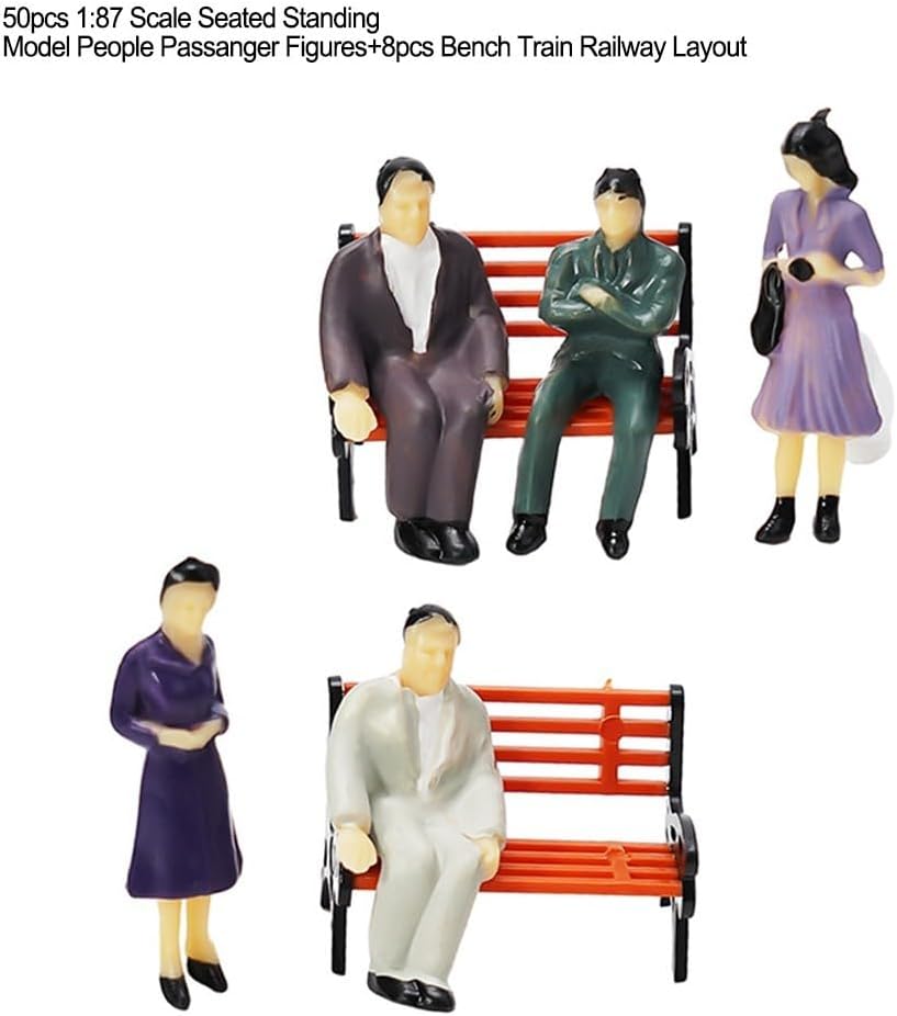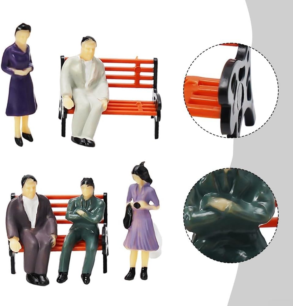 [Figure dipinte realistiche] Questo set include 50 figure passeggeri finemente dipinte, progettate per aggiungere vita e vivacità al layout ferroviario o diorama. La colorazione manuale assicura che ogni figura mostri colori realistici, catering sia per hobbisti che per modellisti professionisti. [Aspetto paesaggistico migliorato] Completa i tuoi modelli di treno con 6 panchine splendidamente realizzate che forniscono un tocco di realismo alle piattaforme della tua stazione o alle scene di strada, rendendoli più coinvolgenti per gli spettatori. [Scenari di utilizzo: ideali per la creazione di tavoli di sabbia, paesaggi all'aperto o attività ricreative, queste figure e panche possono trasformare qualsiasi scena in un ambiente vivace adatto sia per l'esposizione che per giocare. Decorazione da collezione: utilizza queste figure come accenti decorativi in case, uffici o aule. Sono anche ottimi antipasti di conversazione se esposti in salotti o cucine.