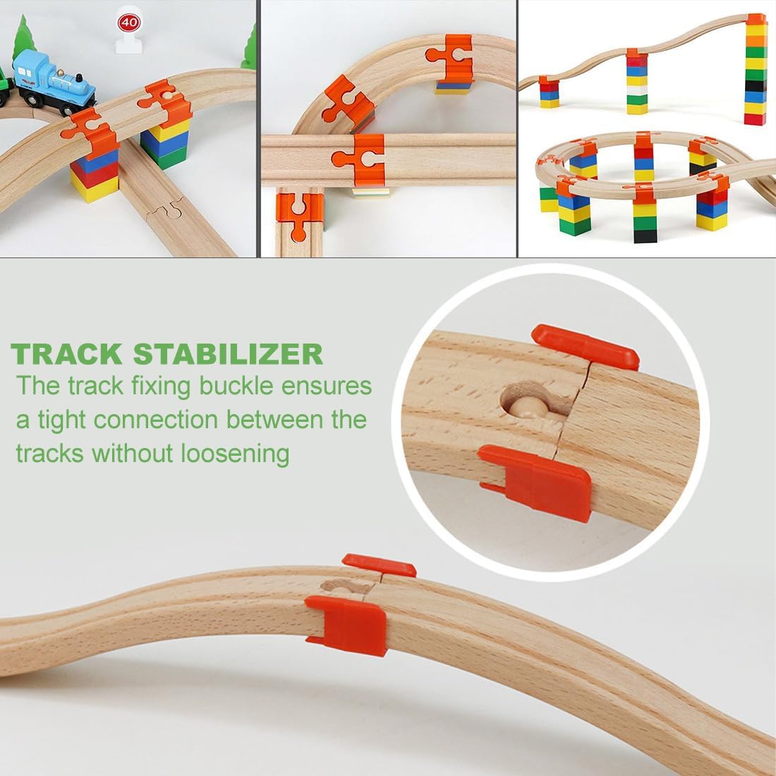 Divertimento senza fine: il nostro colorato set di accessori per binari ferroviari contiene 28 adattatori, 16 binari corti in plastica, 8 connettori elastici in plastica e 4 elementi di fissaggio. Questi colorati accessori ferroviari stimolano l'immaginazione e la creatività dei bambini, ispirando l'innovazione. Compatibilità: questi connettori sono adatti alla maggior parte delle marche, rendendo la costruzione più stabile. Progettati per un accoppiamento preciso e un collegamento fluido, sono adatti per prolungare i binari dei trenini in legno. Consentono di costruire binari complessi e sono la scelta ideale per i set di trenini per principianti. Accessori creativi: il connettore ha un design elastico che non si stacca facilmente e permette di combinare perfettamente diversi modelli di binari in legno, consentendo al treno di viaggiare facilmente. Questo adattatore è realizzato con tecnologia di stampaggio a iniezione, è robusto e resistente e ha una struttura stabile. Resistenza: grazie all'eccellente qualità dei materiali, i nostri adattatori sono particolarmente resistenti e durevoli. Sono in grado di soddisfare le esigenze di gioco quotidiane e accompagnare i vostri bambini in innumerevoli avventure sui binari del trenino. Strumento educativo: questo set di connettori multicolori non solo migliora la capacità dei bambini di riconoscere i colori e il ragionamento spaziale, ma permette loro anche di creare facilmente il proprio mondo ferroviario.
