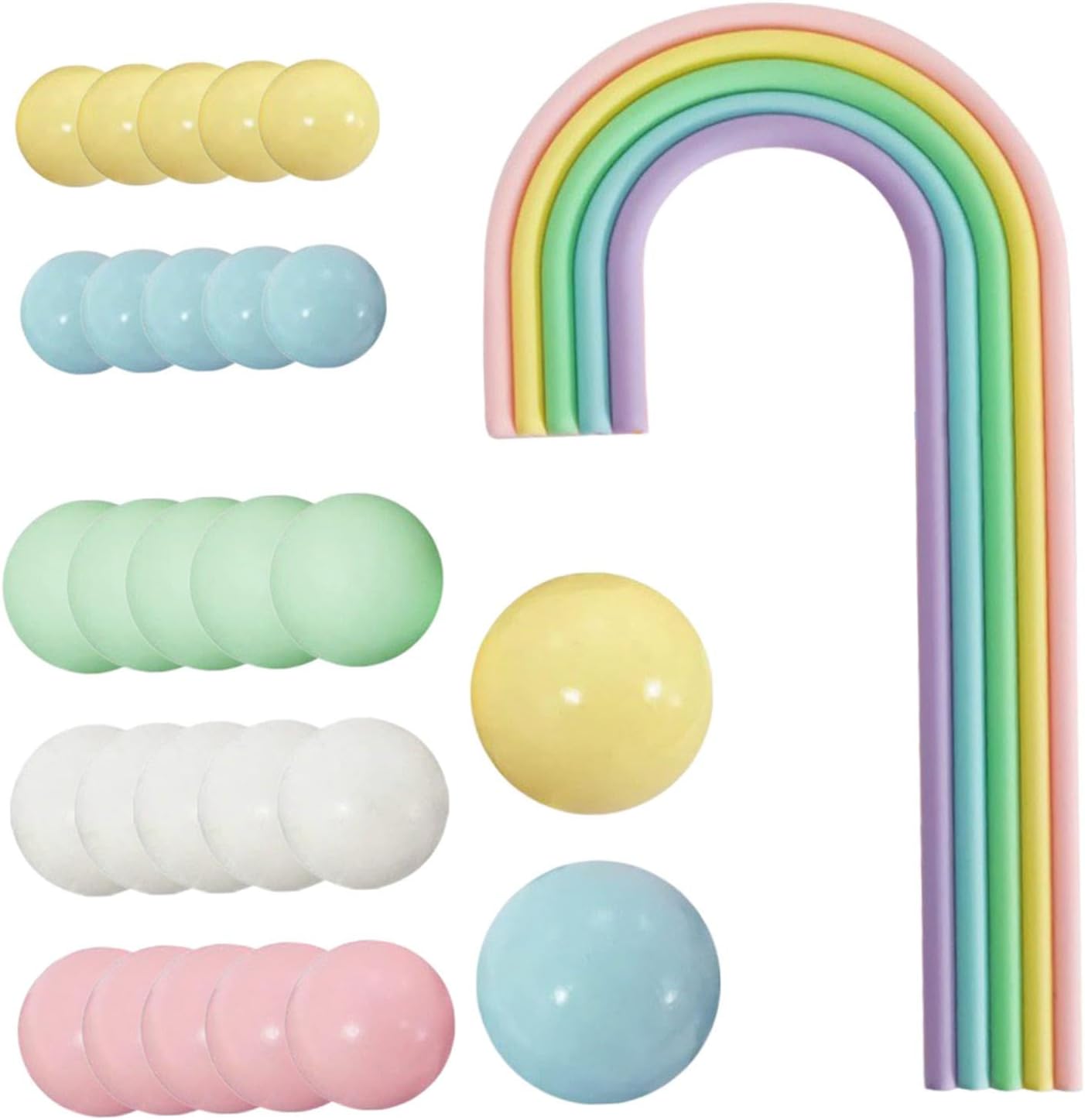 Ideale per qualsiasi celebrazione: esalta matrimoni, compleanni, shower o feste a tema arcobaleno con un fascino accattivante, ottimo per torte, centrotavola Materiale: decorazione arcobaleno realizzata in robusta pasta polimerica; palline di schiuma leggera per torte e riutilizzabili per più celebrazioni Set completo da 28 pezzi: include 1 topper per torta arcobaleno a forma di macaron e 27 palline colorate di varie dimensioni, ideali per decorazioni per feste. Occasione: le decorazioni per feste a tema arcobaleno sono ideali per feste di compleanno, eventi a tema principessa, shower e raduni a tema oceano Dimensioni versatili: include un grande topper arcobaleno (5 x 9,5 pollici) misure di palline decorative (0,8, 1,2 e 1,6 pollici) per design dinamici per torte