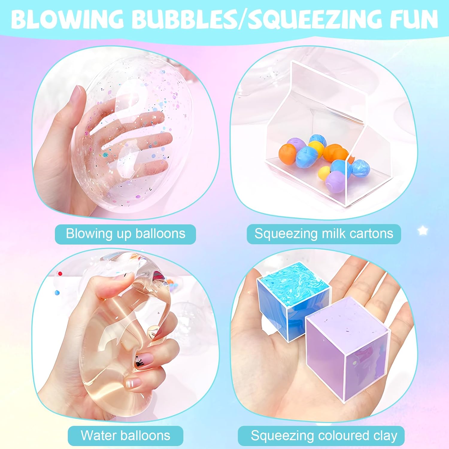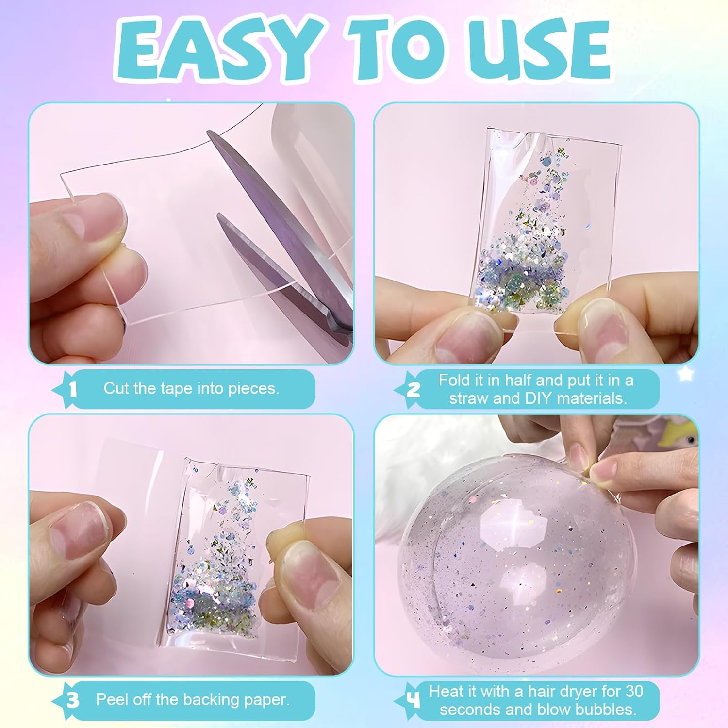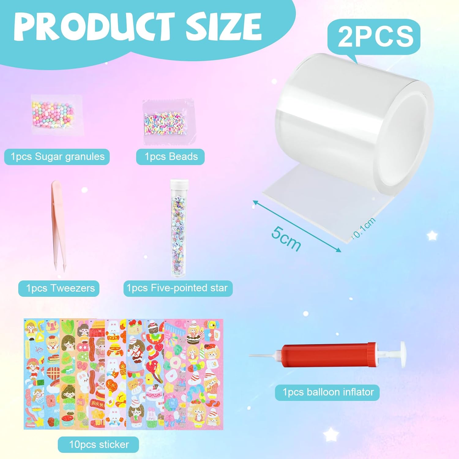 【28 Nano Tape Bubble Kit】: Il nostro nano tape bubble kit per bambini include 28 pezzi: 2 rotoli di nano tape (1m x 5cm x 1mm), 10 adesivi cartoon,1 pompa per palloncini, 1 forbice, 1 pinzetta, 1 zuccherini, 1 pentagramma e 1 perline. 【Regalo Perfetto per Bambini】: Questo nano tape bubble kit è ideale per regali di Natale, compleanni o premi scolastici. Il nano tape creativo stimola la concentrazione e riduce lo stress - un passatempo coinvolgente per bambini e adulti. 【Istruzioni DIY Facilissime】: 1.Taglia il nano tape. 2.Aggiungi glitter/perline. 3.Inserisci la pompa e sigilla. 4.Rimuovi l'eccesso e la pellicola. 5.Scalda 1 minuto con il phon. 6.Gonfia le bolle Personalizza la tua creazione! 【Kit Sicuro & Creativo】: Il nostro nano tape bubble kit utilizza materiali premium (senza odore, riutilizzabile). Con glitter e perline, crea opere multicolori in nano tape! Perfetto per relax familiare. 【Multifunzione Creativa】: Personalizzabile con adesivi, questo nano tape bubble kit crea bolle artistiche. Ideale per attività genitore-figlio, questo nano tape ripara anche foto e decorazioni - stimola la fantasia!