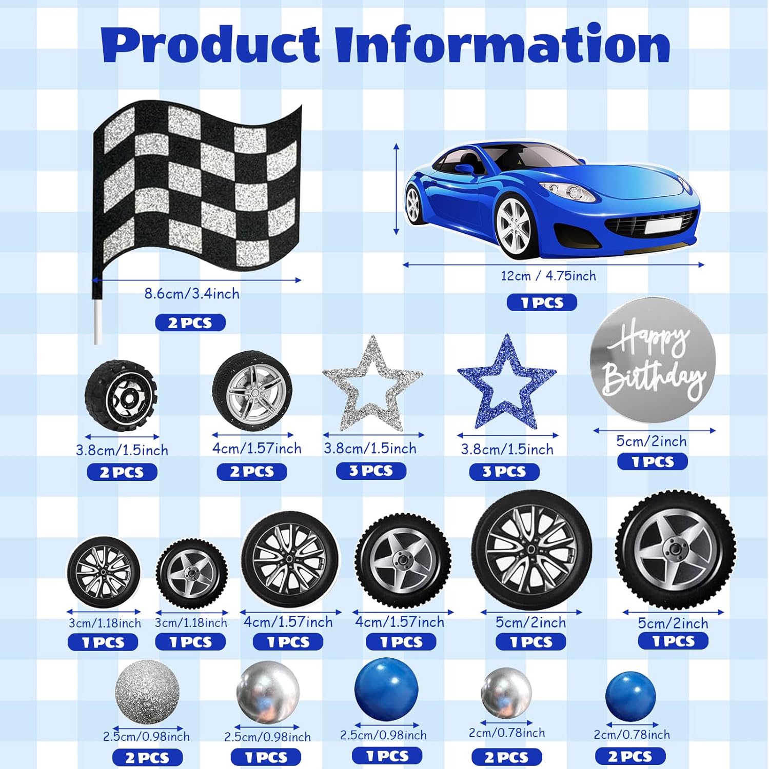 Contenuto della confezione: riceverai 1 toppers per torta con auto da corsa blu, 1 toppers per torta rotondo di buon compleanno, 2 bandiere a scacchi, toppers per torta a 6 stelle, 8 toppers per torta e 10 toppers per torta con pneumatici, per un totale di 28 toppers per torta con auto da corsa. 【Materiali di alta qualità】: le decorazioni per torte per auto da corsa sono realizzate in cartone, durevoli e resistenti agli strappi e adatte per decorare varie torte. Le bandiere a scacchi e il design blu delle auto da corsa creano un'atmosfera sportiva e sono perfetti per i compleanni dei ragazzi, i baby shower o le feste a tema auto da corsa. 【Risparmia tempo e fatica】: questi toppers per torta blu preincollati non necessitano di assemblaggio e consentono a chiunque di creare facilmente un tavolo da dessert dall'aspetto professionale. Può essere utilizzato direttamente per decorare torte di compleanno, biscotti e frutta, fa risparmiare tempo, è facile da installare e non danneggia i dolci. 【Occasioni adatte】: le decorazioni di compleanno per auto da corsa sono la scelta ideale per una festa di compleanno per auto da corsa per il tuo bambino. Creano un'atmosfera di velocità e passione e sono adatti non solo per feste di compleanno, ma anche per incontri con amici, riunioni di famiglia e altri eventi. 【Un'ottima scelta】: con le decorazioni per torte di auto da corsa, un normale tavolo da dessert si trasforma in un attraente espositore per auto da corsa in pochissimo tempo. bambini e adulti sono attratti da queste decorazioni realistiche e difficilmente riescono a trattenersi prima di scattare foto. Inoltre, queste decorazioni possono anche essere distribuite come piccoli regali agli ospiti della festa in modo che possano portare gioia nella vostra casa.