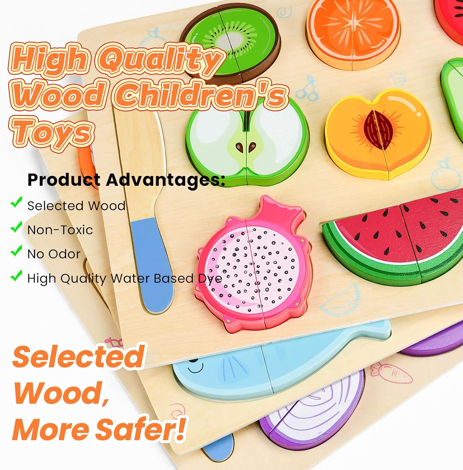 Accessori per giocattoli da cucina ricchi: questo set include 26 giocattoli con ingredienti ricchi, come pomodori, cipolle, avocado, fragole e altri frutti e verdure, hamburger, cosce di pollo, bistecche di salsicce, ecc. Inoltre include anche 3 coltelli in legno realistici e 3 pezzi di puzzle, ogni ingrediente stimola l'immaginazione del tuo bambino, e con questo giocattolo alimentare bambino realistico, i bambini possono godere di una vera cucina giocosa 【Fibbia di fissaggio magnetica potente】 Tutti gli accessori per giocattoli da cucina per bambini sono progettati con fibbie magnetiche nel mezzo, consentendo ai bambini di "tagliare" e "assemblare" facilmente il cibo. Con questo design, uova, bistecche e altro possono essere tagliati come reali. cibo, rendendo il taglio più realistico e permettendo ai bambini di sperimentare il piacere di cucinare 【Aspetto realistico, colori vivaci】Tutti i giocattoli in legno frutta verdura da taglio sono tinti con pigmenti sicuri, atossici e inodore. La superficie di frutta e verdura giochi per bambini in legno è stampata con motivi squisiti, compresi i dettagli caratteristici del cibo, che possono aiutare meglio i bambini. Capire gli ingredienti. Colori vivaci e vivaci. Cattura la loro attenzione e stimolano il loro interesse e curiosità 【Il legno sicuro non fa male alle tue mani】 Ogni giocattolo da cucina è accuratamente progettato e realizzato in legno di alta qualità per garantire che sia atossico, innocuo e inodore, resistente alle cadute e all'usura, difficile da deformare e rompere, e ogni pezzo è stato accuratamente lucidato, la superficie è liscia e senza spine, senza spigoli vivi, garantendo sicurezza e felicità durante il gioco 【Giocattolo educativo di alta qualità】 Questo gioco d'imitazione per bambini offre una piattaforma interattiva sicura e divertente che consente ai bambini di impersonare piccoli chef e iniziare le loro avventure culinarie. Non solo aiuta a migliorare la comprensione dei bambini sulla capacità cognitiva del cibo, assemblandoli e tagliandoli. cibo, i bambini possono migliorare le loro abilità pratiche nel gioco