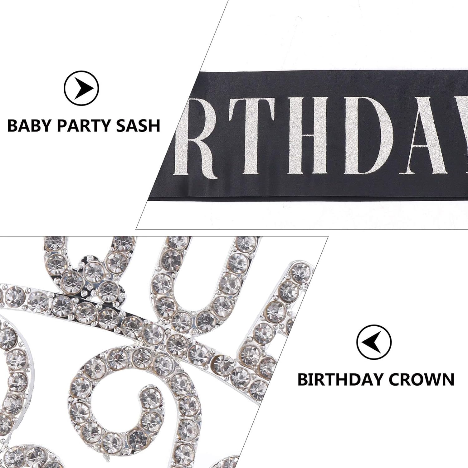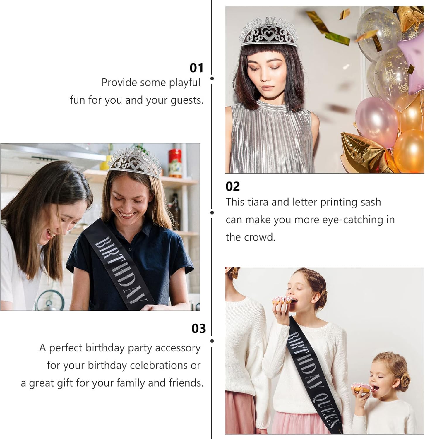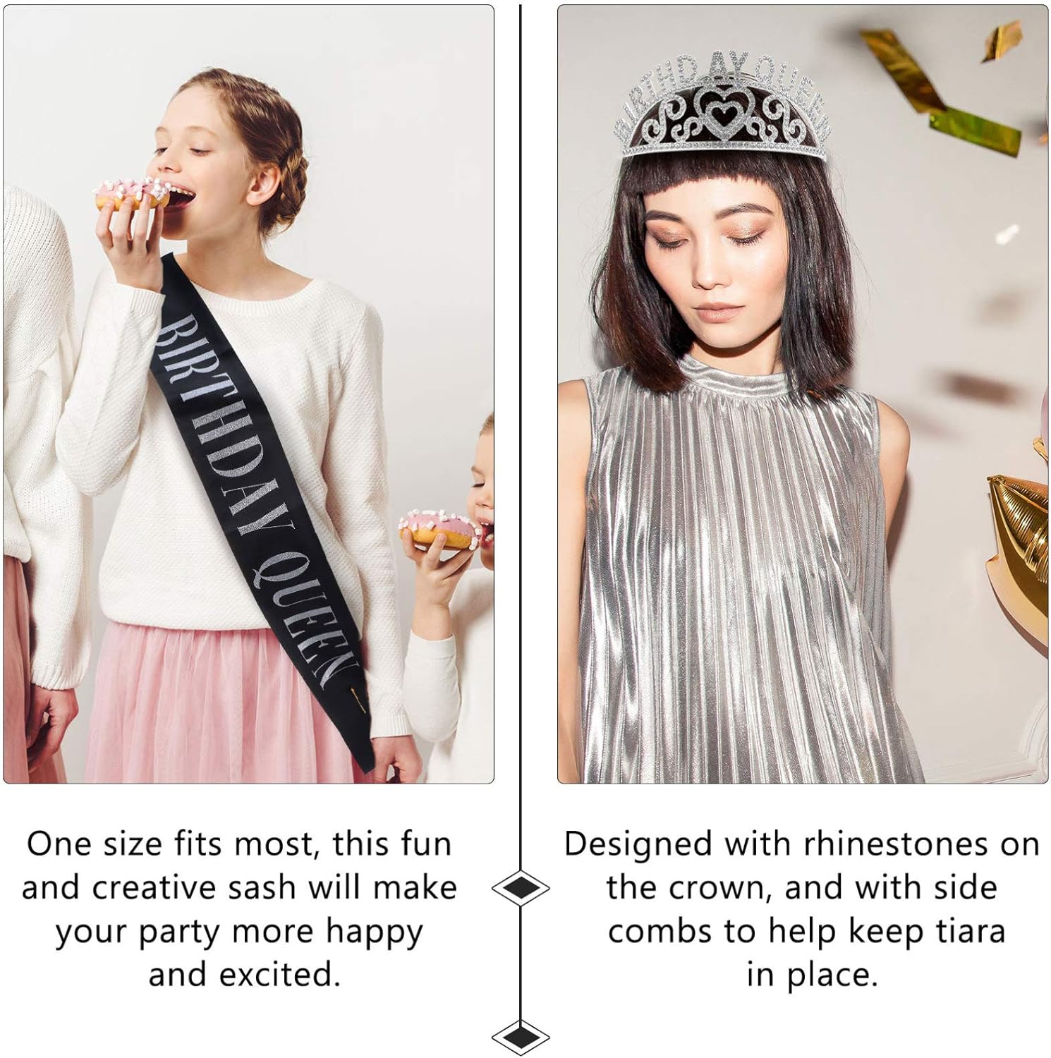 Kit tiara e fascia: la tiara con strass è regolabile e dotata di un design a pettine che può reggere, stabile e comoda, fascia per feste di compleanno Cerchietti per a : questa fascia è realizzata in tessuto satinato di alta qualità, comodo e morbido da indossare, fascia per compleanno Fascia decorativa per feste: un accessorio perfetto per le tue feste di compleanno o un fantastico per la tua famiglia e i tuoi amici, cerchietti per con strass Di compleanno: design elegante e raffinato con colori e luminosità splendidi, di strass Cintura con etichetta per feste: il set da 2 pezzi è perfetto per le tue feste di compleanno, come accessorio fotografico e così via, fascia per a forma di