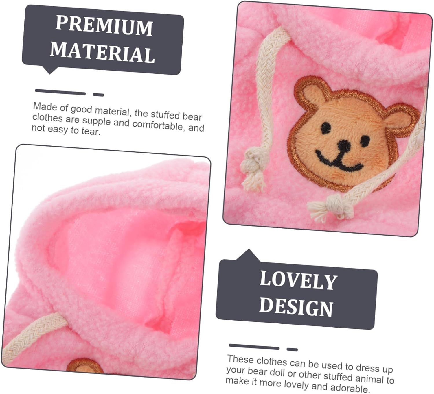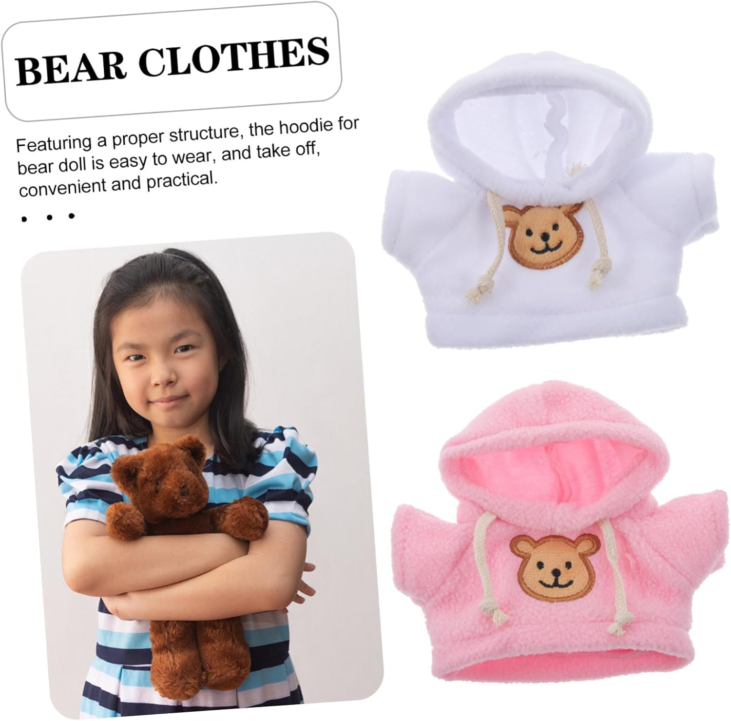 Simpatico orso: la felpa con cappuccio per bambola orsetto di peluche ha un design semplice, ma è pratica da usare, il che darà ai tuoi animali di peluche un aspetto carino, orso di peluche per bambole animali: caratterizzati da graziosi elementi di design, questi per bambole orsetto rendono la bambola orsetto ancora più adorabile e sembrano completi, felpe con cappuccio per bambole orsetto Orsetto di peluche: bambole orso facili da vestire e rendere le tue bambole più attraenti e e piene di tenerezza, simpatico orso di peluche Piccoli per animali di peluche: la felpa con cappuccio per bambola orso è progettata per il fai da te, che può essere abbinata in modo creativo in base alle tue preferenze, felpa con cappuccio orso per orsacchiotti: realizzati in tessuto, i vestiti per animali di peluche sono lavabili e riutilizzabili per molteplici usi, orsetto di peluche con cappuccio