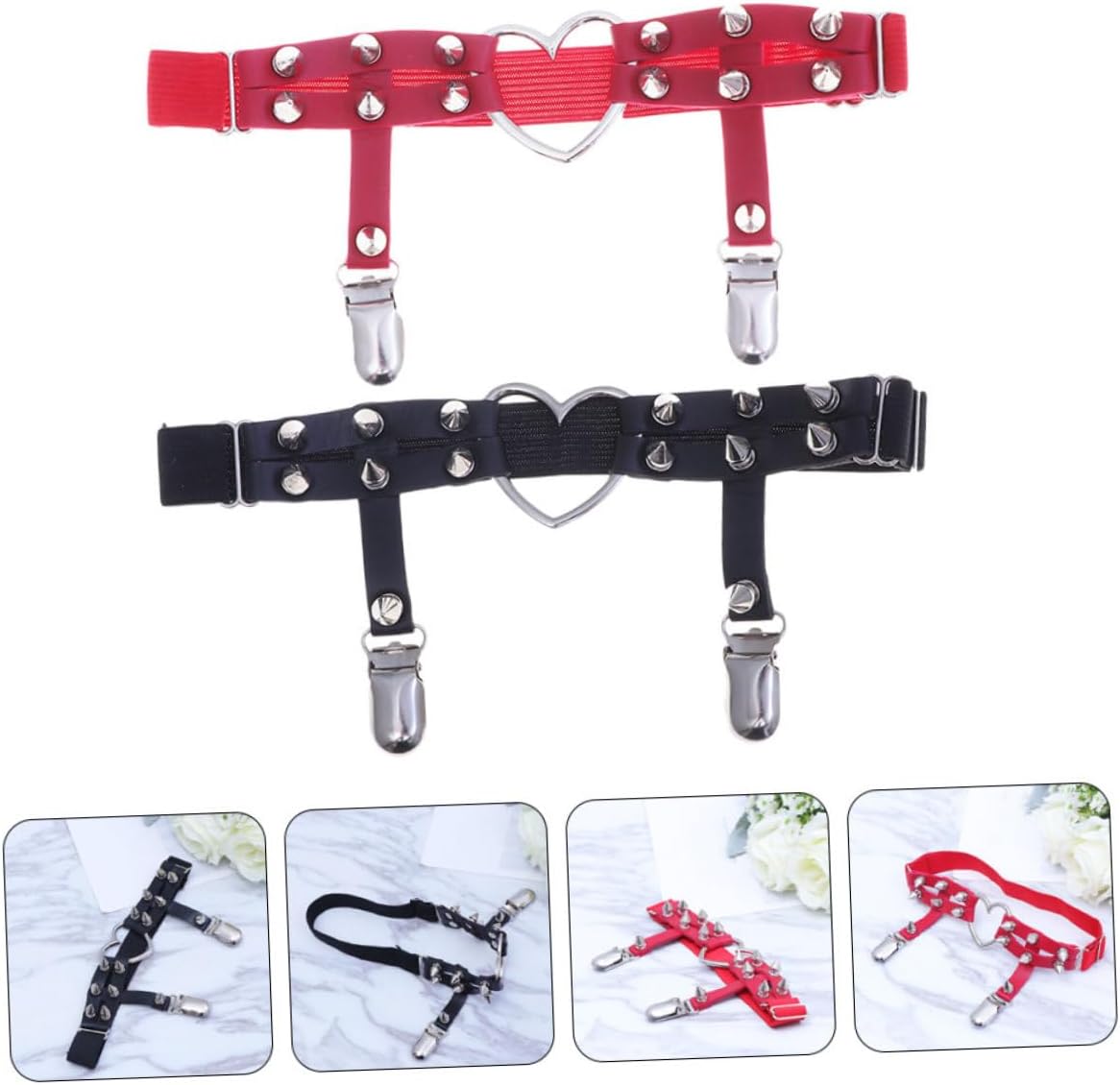 Morbido e confortevole: non facilmente deformabile. questa cintura per calzino è un prodotto molto pratico, cinture per calzini fisse, bretelle per calzini Combina anelli a forma di cuore: elementi rivetti insieme per creare stile carino ma alla moda, portacalzini fisso, portacalzini da donna Consistenza uniforme e superficie liscia: evita il tocco ruvido, quindi devi preoccuparti che questo fermacalzino antiscivolo danneggi la pelle, il supporto antiscivolo del calzino, le cinture con clip per calze Sicuro e comodo da usare: non facile da rompere o deformare, riutilizzabile e può essere applicato per lungo tempo, giarrettiera in pizzo da sposa, giarrettiere per le gambe ad anello Può essere regolato: in base alle tue esigenze, un buon assistente per aiutarti a creare stile cool, giarrettiere per donna, giarrettiera per la sposa
