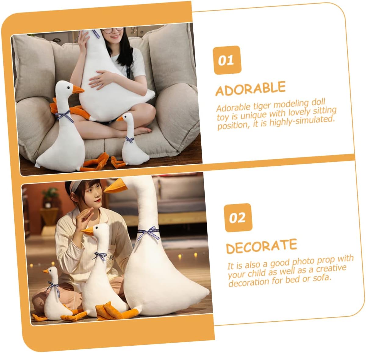 Oca - comoda e leggera, li renderà felici, facile da tenere e abbracciare per i tuoi , peluche Oca di peluche: buona resilienza e non deforma a lungo, altamente elastica e traspirante, peluche a forma di oca Animali di peluche - adatti per abbracciare e decorare, offrono un design dettagliato e colori realistici per farti avere buon umore, simpatico animale di peluche Peluche: perfetti come per amici, familiari, parenti, colleghi e così via, animali giocattolo Oca di peluche: ampia di applicazioni, può essere utilizzata come decorazione in soggiorno, camera da letto, ufficio e altro ancora, giocattoli per animali