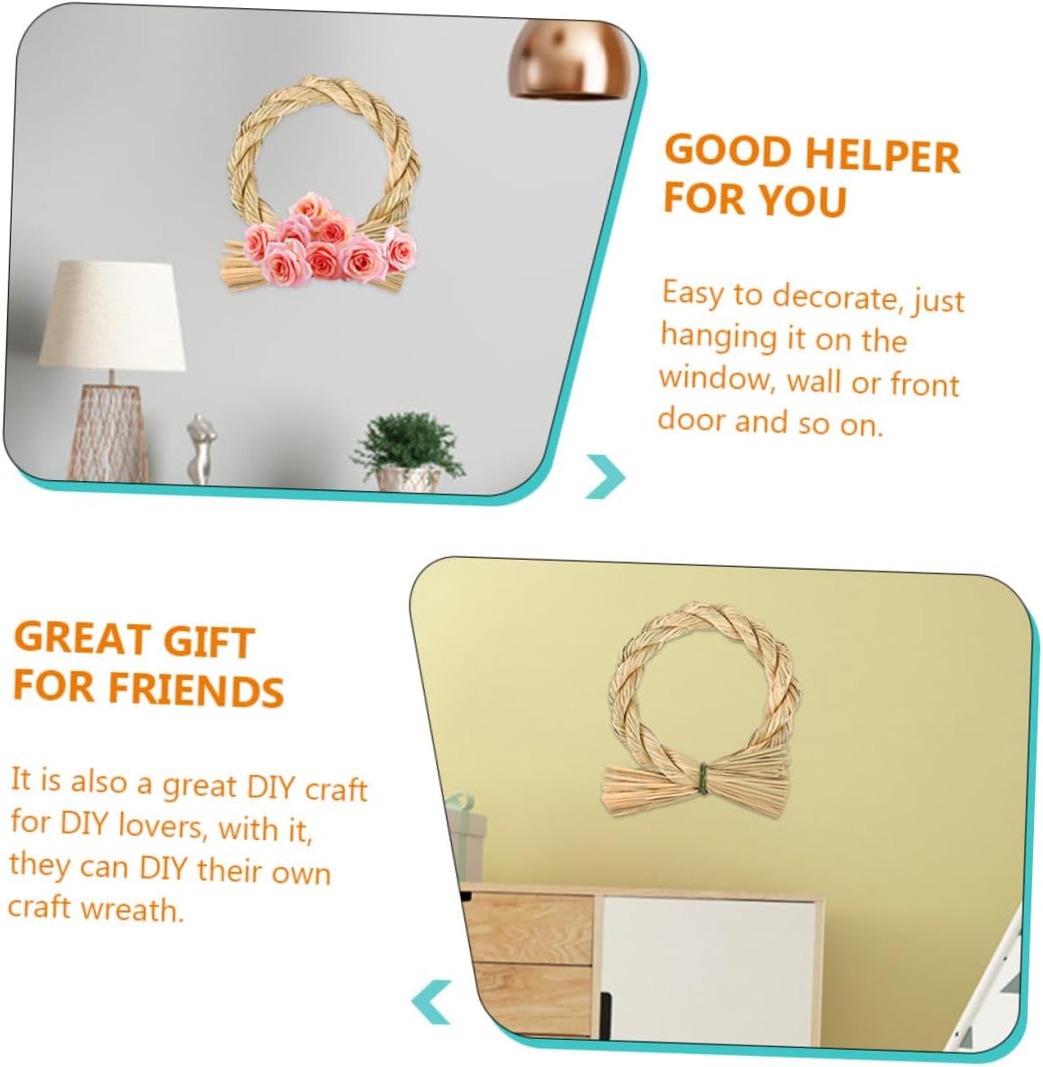 Base per ghirlanda di paglia: la ghirlanda può funzionare bene come decorazione per creare un fantastico per famiglie e amici, piccole ghirlande Ciondolo a forma di ghirlanda di paglia: adatto per negozi di sushi e ristoranti per creare decorazioni in stile giapponese, decorazioni da parete a forma di ghirlanda Piccola : realizzata in materiale di paglia naturale, , giapponese intrecciata Ghirlanda di paglia: puoi decorarla con fiori, nastri e altri accessori a tuo piacimento, cornice per ghirlanda Piccoli anelli per ghirlande: realizzati in materiale di paglia di alta qualità, semplici e belli, pregevole fattura, ghirlanda da appendere alla parete