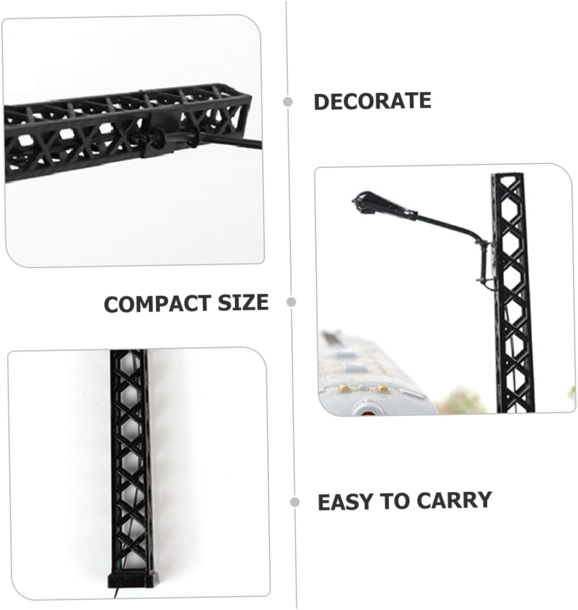 Modelli di luce simulati: un modello realistico di mini-ferrovia per l'arredamento del tavolo di sabbia, rende la tua mini casa più delicata. Arredamento del layout del tavolo in sabbia: dimensioni compatte, la luce della ferrovia è facile da installare e rimuovere. facile da trasportare ovunque tu voglia. Mini arredamento per la casa: splendidamente realizzato e realistico, con un alto grado di riproduzione realistica, quindi non puoi metterlo giù. Lampione stradale della casa delle bambole: il modello della luce della ferrovia è realizzato in buon materiale, durevole e sicuro per giocare. Lampada decorativa da tavolo color sabbia: questo modello in miniatura ha un design vivido, un aspetto davvero elegante con un design raffinato e un'eccellente fattura.