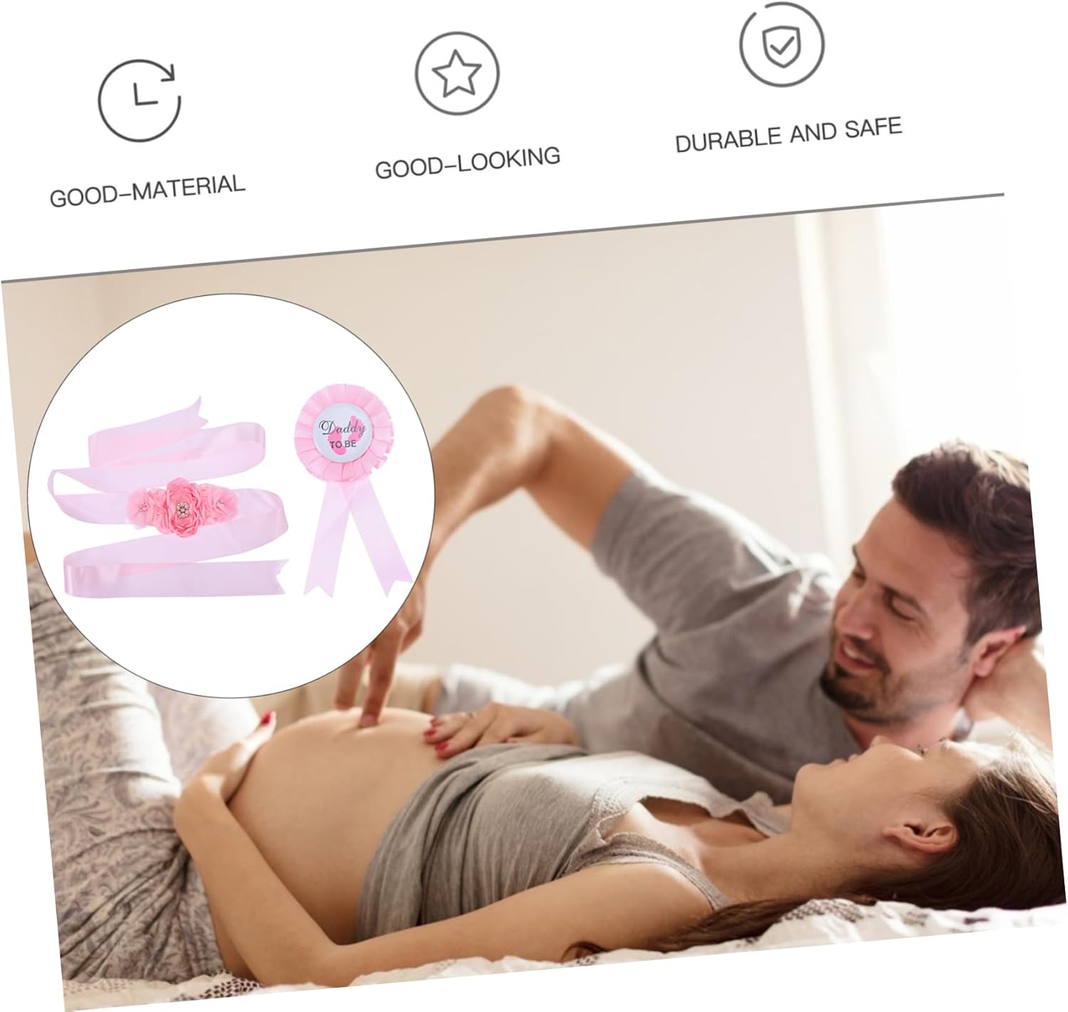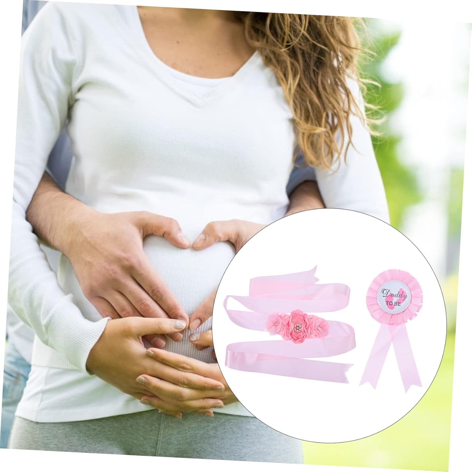Accessorio per baby shower: ampiamente decorato con semplici abbellimenti che aggiungono un tocco di brillantezza necessario a qualsiasi vestito, fascia per la pancia della futura mamma Cintura per la pancia della futura mamma: sorprendi la futura mamma e il papà loro baby shower con questo set coordinato di fascia e corpetto per maternità, cintura per maternità Fascia per la pancia del baby shower: costume facile da abbinare, una cintura per la pancia compatibile con il baby shower, unica e di alta qualità, che ti rende più attraente e impressionante, accessori per servizi fotografici di maternità Fascia per la pancia della maternità: la fascia per la pancia è lunga 7874 pollici e la dimensione del distintivo è 275x590 pollici, fascia per la futura mamma per il baby shower Fascia per baby shower: i fiori per la futura mamma e il papà misurano 275x590 pollici, la fascia addominale è lunga 7874 pollici, fiore per la futura mamma