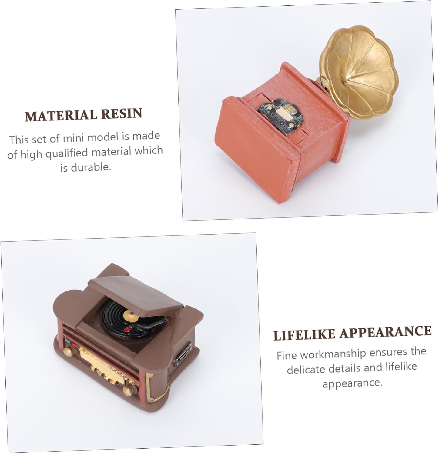 Mini radio: un accessorio decorativo per la casa per bambini e collezionisti di minimodelli, modello piccolo Statuetta fonografica retrò: la meravigliosa lavorazione garantisce praticità e durata, modello fonografo Ornamento da giardino in miniatura: design tradizionale e ottima fattura, buona decorazione per desktop, modello mini fonografo Decorazione modello mini fonografo: il set include modelli fonografo e radio, possono soddisfare le diverse esigenze di arredamento, modello radio Modelli di radio retrò: questo articolo è ben progettato e realizzato per l'arredamento della tua mini scena, che renderà la tua mini scena piena del sapore della vita, accessorio per modello mini scena