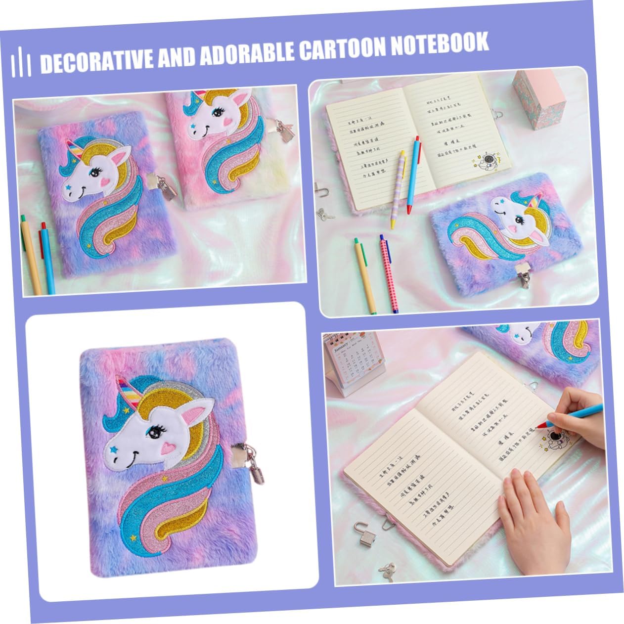 Diario dei cartoni animati: con un guscio di peluche dei cartoni animati, questo quaderno sembra molto squisito e adorabile, un bel per unisex. Taccuino: il design con motivo a cartoni animati e piacevole al tatto deve essere il favore dei tuoi amici. gli piacerà moltissimo. Quaderno per studenti: questo soffice quaderno decorativo e adorabile è squisitamente realizzato e resistente ed è molto amato dalla maggior delle persone. Accessorio da ragazza: questo taccuino ha le dimensioni giuste ed è facile da trasportare e riporre senza problemi. Quaderni di peluche: puoi scegliere di utilizzare questo taccuino per registrare il tuo piano settimanale, il piano mensile, il diario e così via.