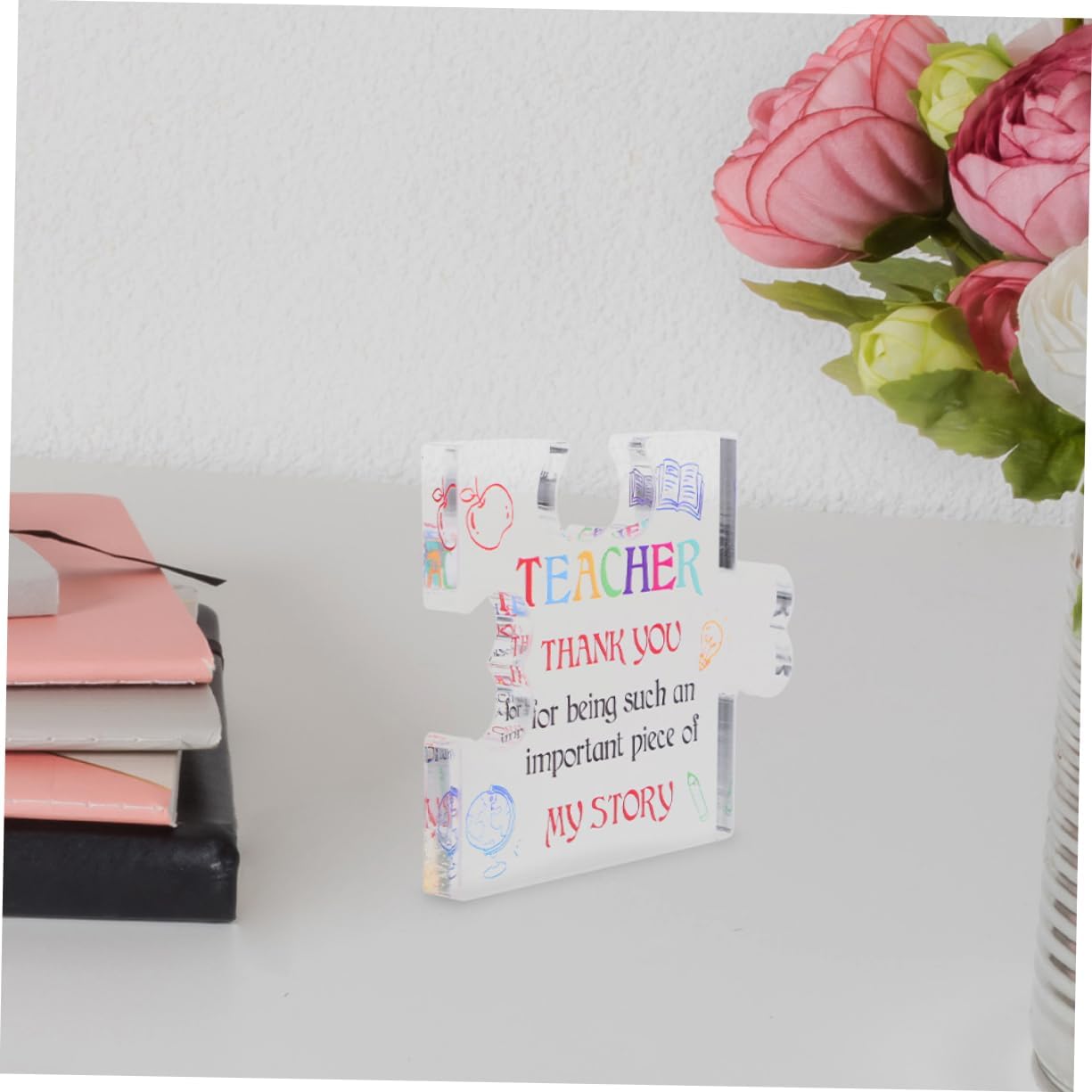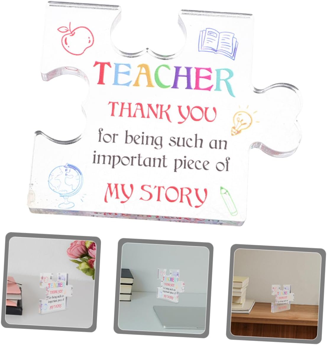 È per l'apprezzamento degli insegnanti: ideale per la giornata degli insegnanti, la scelta della laurea e altre occasioni, questi puzzle esprimono gratitudine e apprezzamento in un modo unico, di apprezzamento degli insegnanti, puzzle di laurea da tavolo Decorazione senza sforzo: progettata per essere posizionata su scaffali, scrivanie o tavoli senza bisogno di assemblaggio, rendendola un'opzione, targa di ringraziamento per l'insegnante, targa di ringraziamento per l'insegnante Decorazioni per la casa/ufficio: queste graziose e trasparenti decorazioni esaltano la bellezza della tua casa o del tuo ufficio, fondendosi perfettamente con libri, piante, orologi, calendari e altri oggetti decorativi, puzzle di apprezzamento per gli insegnanti, targa puzzle per insegnanti Facile da esporre: non c'è bisogno di ulteriore assemblaggio, queste decorazioni possono essere posizionate senza sforzo su qualsiasi superficie , rendendole comode e versatili, puzzle per insegnanti, blocco per studenti e insegnanti Nessun assemblaggio richiesto: queste eleganti decorazioni possono essere posizionate su qualsiasi superficie senza bisogno di ulteriore assemblaggio, rendendole facili da usare, puzzle dell'insegnante di ringraziamento, puzzle dell'insegnante del del ringraziamento