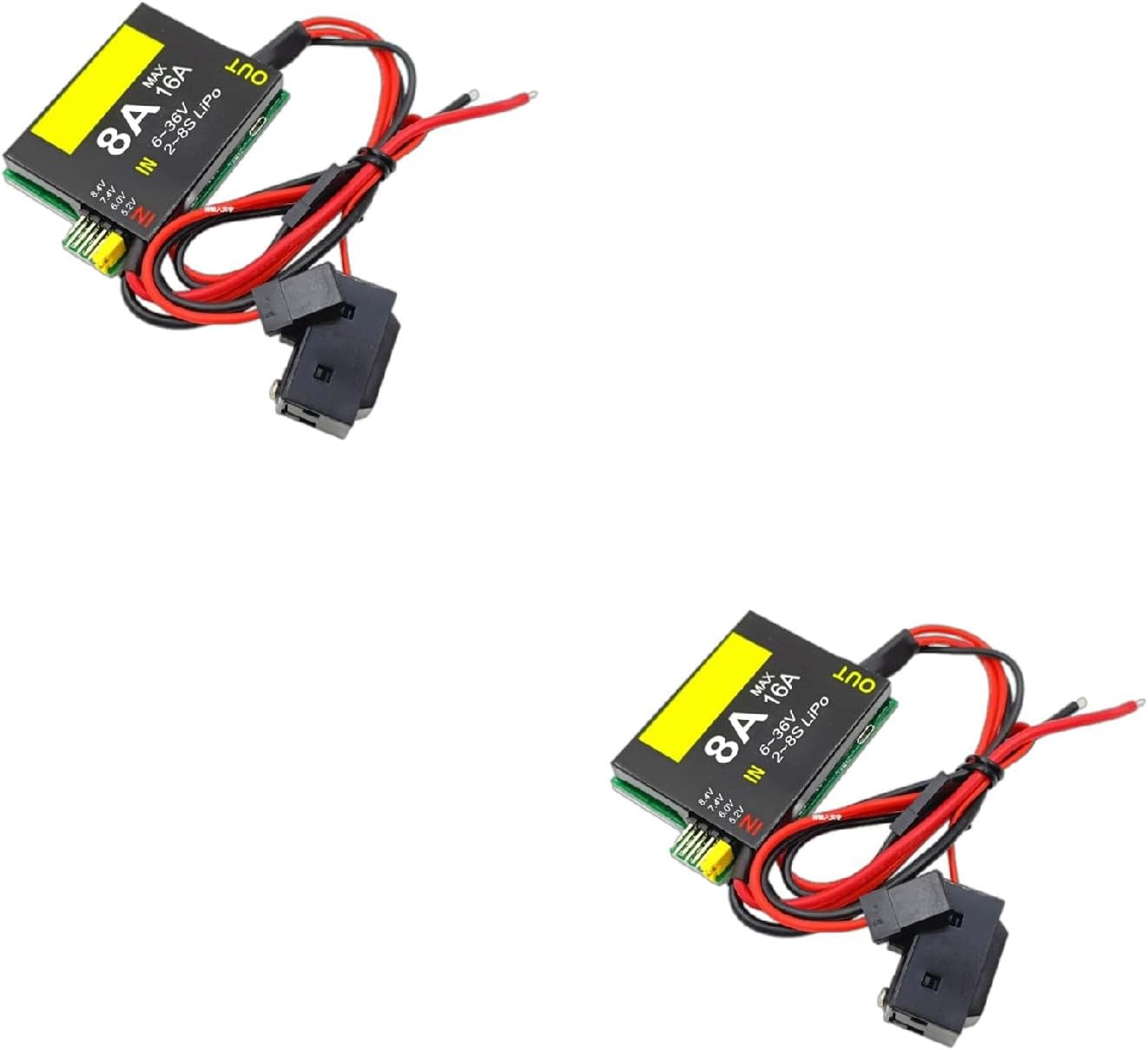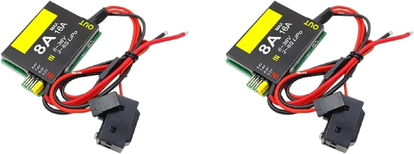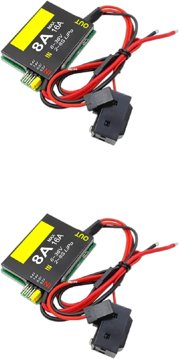 Le tensioni di uscita possono essere selezionate in quattro marce (5.2/6.0/7.4/8.4V), che possono soddisfare l'uso di apparecchiature di modello di aeromobili di varie specifiche di tensione Avere un indicatore di funzionamento, che si accende quando l'UBEC funziona normalmente Interruttori esterni, facile da aprire e chiudere UBEC Con protezione da sovracorrente, cortocircuiti in uscita protezione da surriscaldamento e altre funzioni Doppia uscita, può trasportare corrente più grande