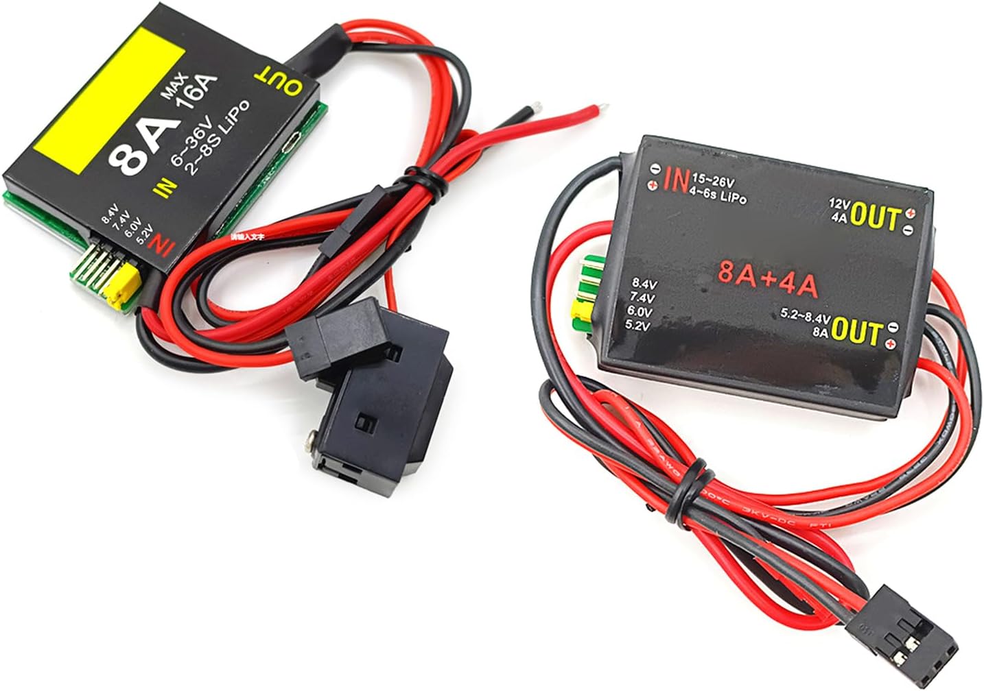 Le tensioni di uscita possono essere selezionate in quattro marce (5.2/6.0/7.4/8.4V), che possono soddisfare l'uso di apparecchiature di modello di aeromobili di varie specifiche di tensione Con protezione da sovracorrente, cortocircuiti in uscita protezione da surriscaldamento e altre funzioni Utilizzando chip regolatore di tensione ad alta efficienza, l'efficienza di conversione supera il 90% Avere un indicatore di funzionamento, che si accende quando l'UBEC funziona normalmente Interruttori esterni, facile da aprire e chiudere UBEC