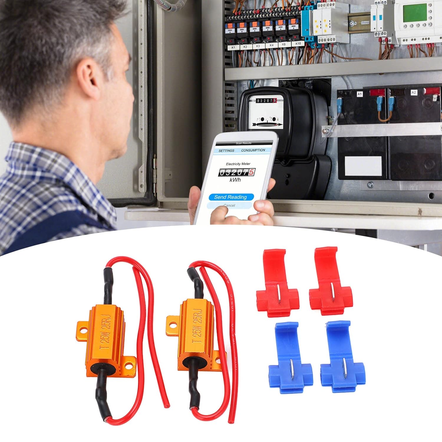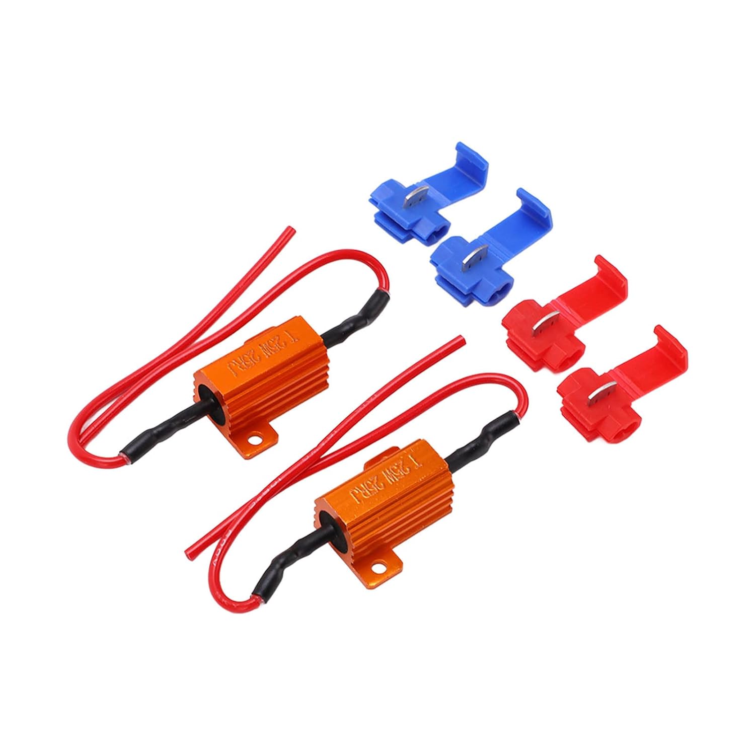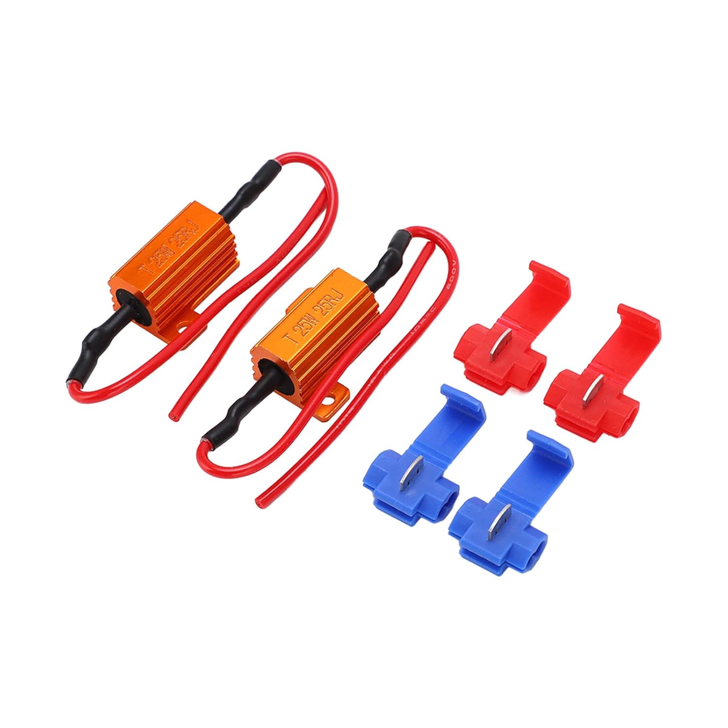 Utilizzo: resistore ad alte prestazioni da 25 W con alloggiamento in alluminio da 25 Ω. Entrambe le estremità del resistore sono collegate in parallelo ai poli positivo e negativo del cavo di alimentazione degli indicatori di direzione a LED. Resistenza: 25Ω. Potenza: 25 W. Decodifica precisa: decodifica precisa, eliminando i codici di errore della maggior parte dei fari a LED. Ha funzioni di resistenza alla decodifica e di ricarica. Errore consentito: ±5%. Materiale di produzione: realizzato in lega di alluminio, anticorrosione e anti-invecchiamento, durevole, che senza dubbio prolunga la durata. MULTIUSO: può essere utilizzato con la conversione a LED degli indicatori di direzione del veicolo. Risolto il problema con l'iperflash o l'assenza di lampeggio della curva. Funzioni versatili: dimensioni compatte, facile da trasportare, facile installazione, plug and play possibile in qualsiasi momento. Caratteristiche di frequenza: frequenza ultraelevata. Processo produttivo: avvolgimento del filo. Coefficiente di temperatura: PTC.