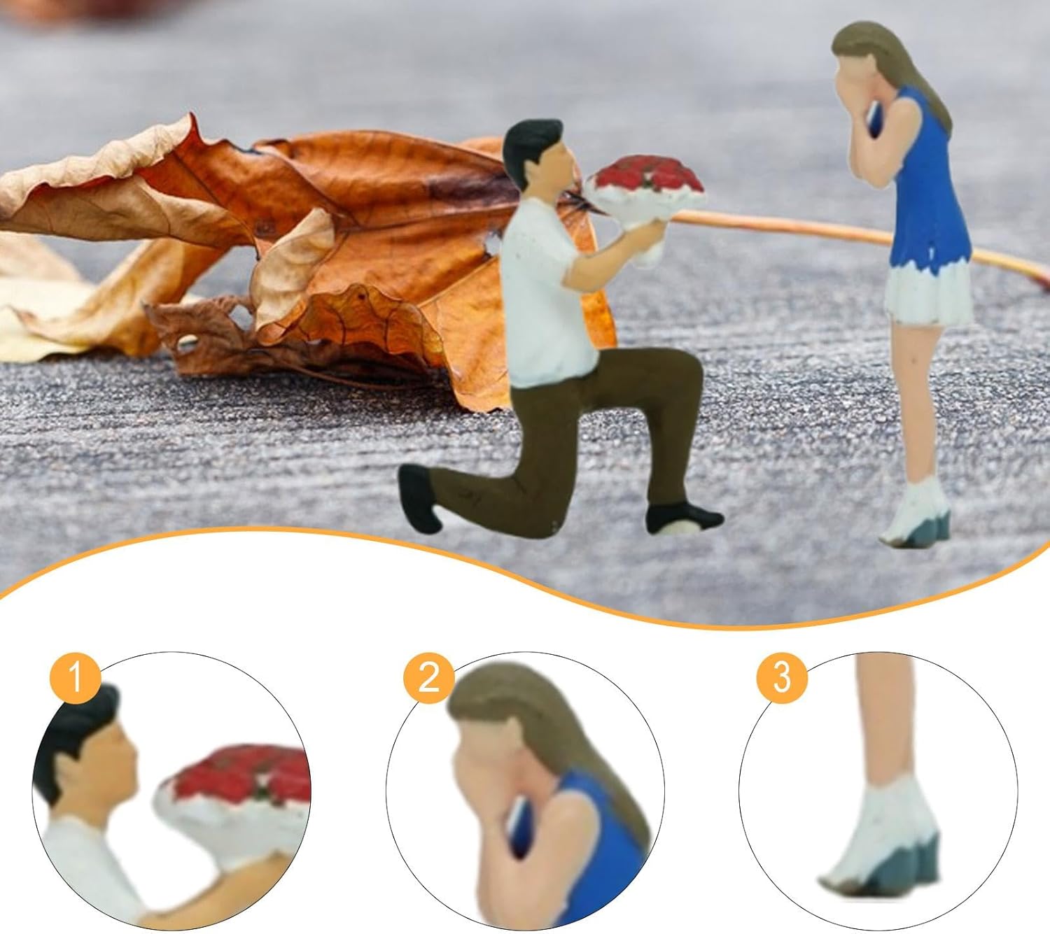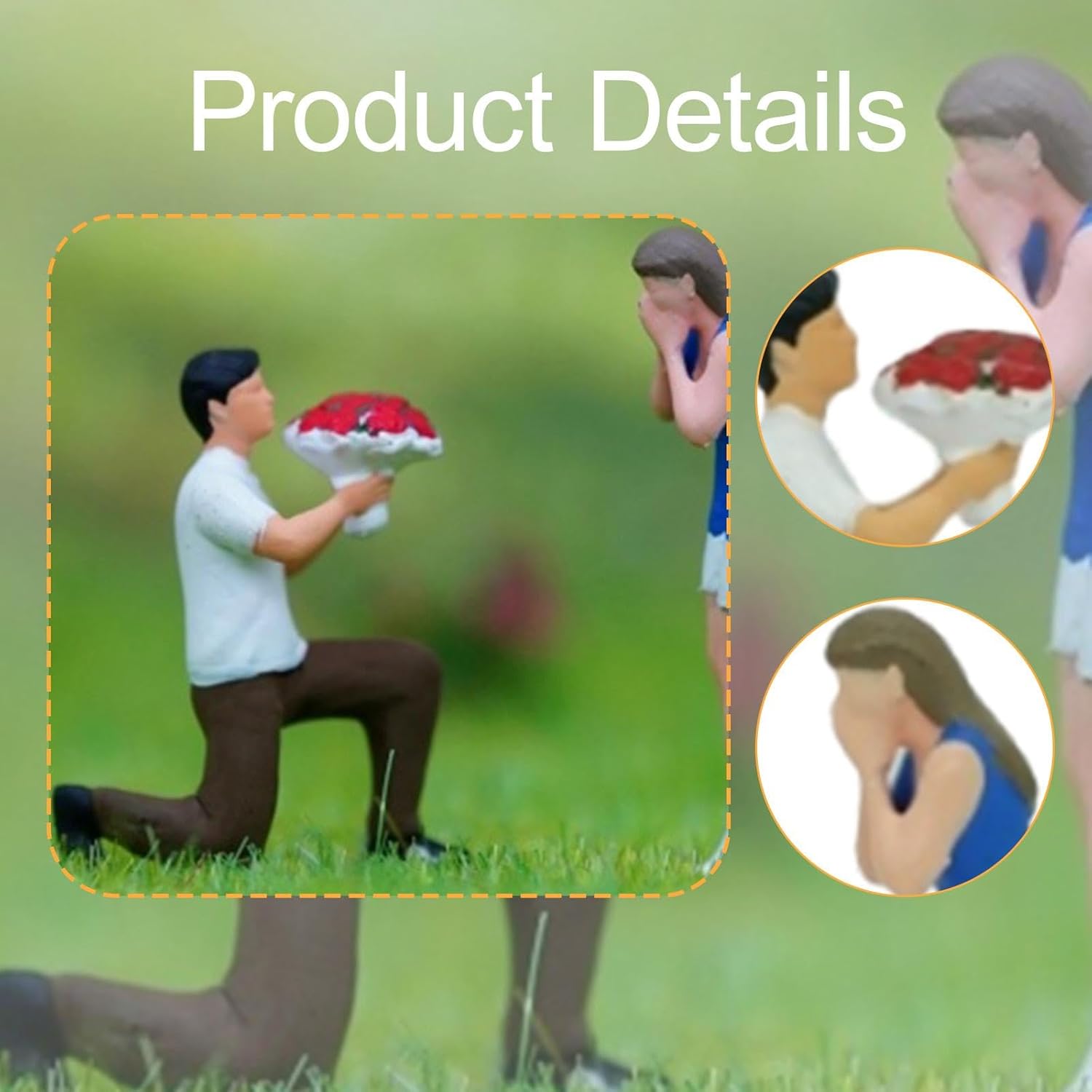 Realismo in scala 1:64: coppie in miniatura progettate per creare autentiche scene di micro paesaggi, fungono da oggetti di scena fotografici dettagliati ed elementi di layout Struttura in resina: realizzata in resina robusta con pregevole fattura e dettagli intricati, resistente alla rottura per un uso prolungato in espositori Applicazioni versatili per l'esposizione: adatto per la costruzione di paesaggi di tavoli di sabbia, modelli architettonici, decorazioni paesaggistiche in miniatura, accessori per case delle bambole e ornamenti da scrivania Pose dettagliate e vivide: le statuette di piccoli uomini e donne presentano posizioni realistiche che migliorano le scene del modello con elementi umani realistici e interesse visivo Set di due pezzi: include una figura maschile (altezza 2,8 cm) e una figura femminile (altezza 2,6 cm) per una composizione completa della scena in miniatura