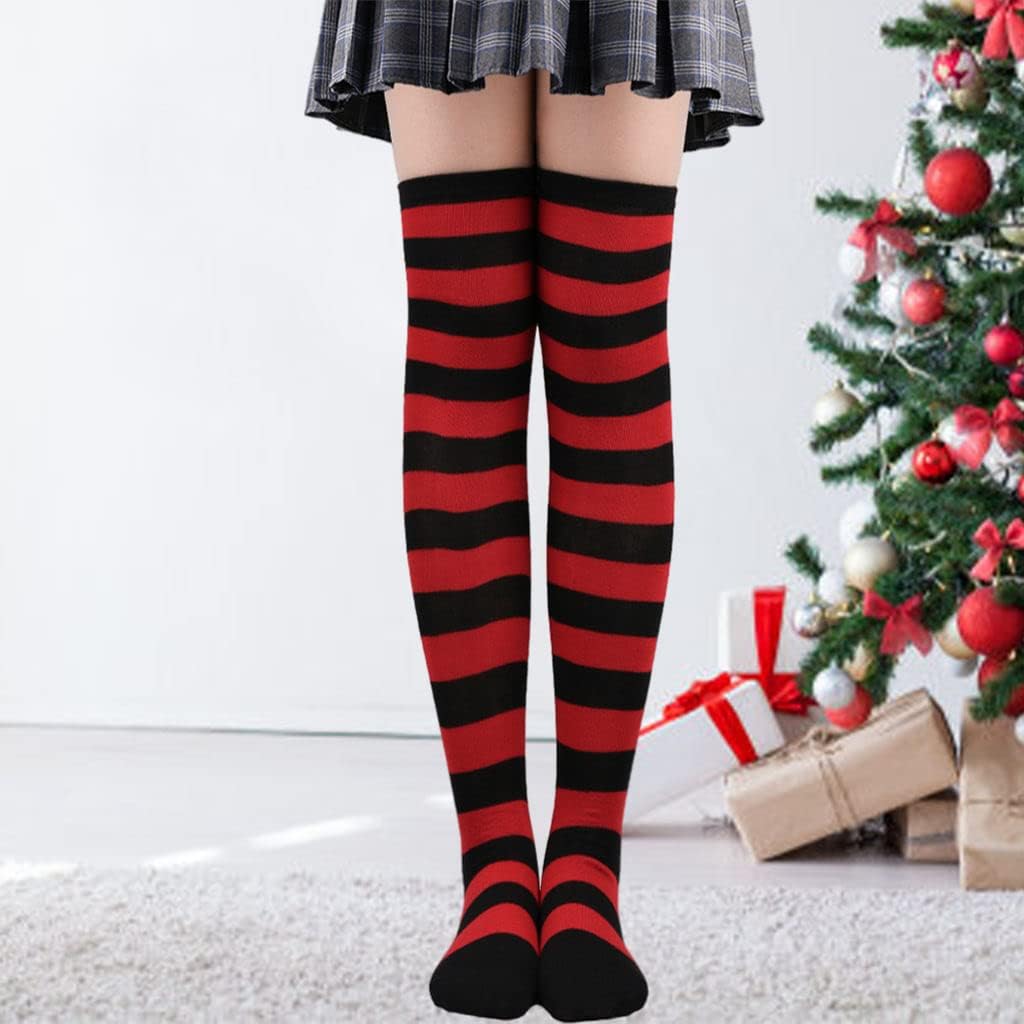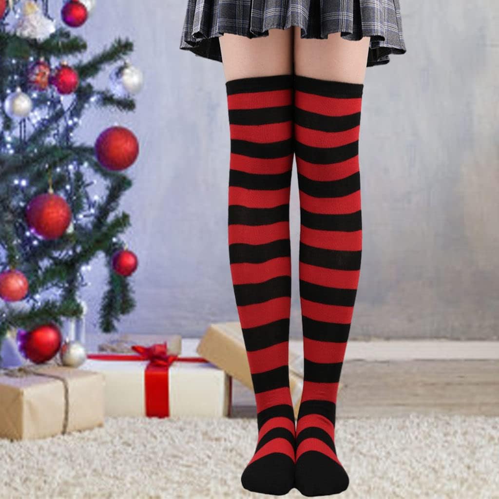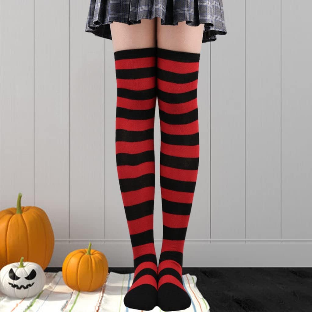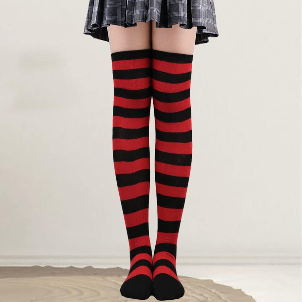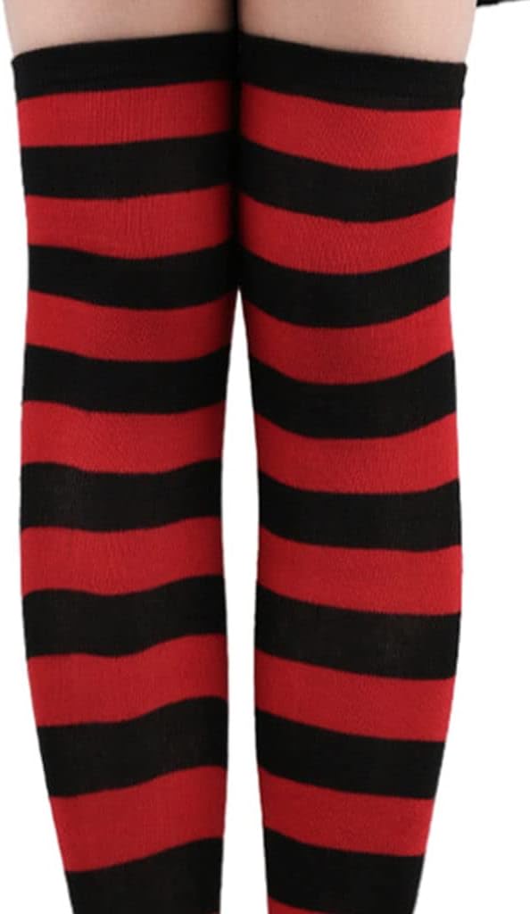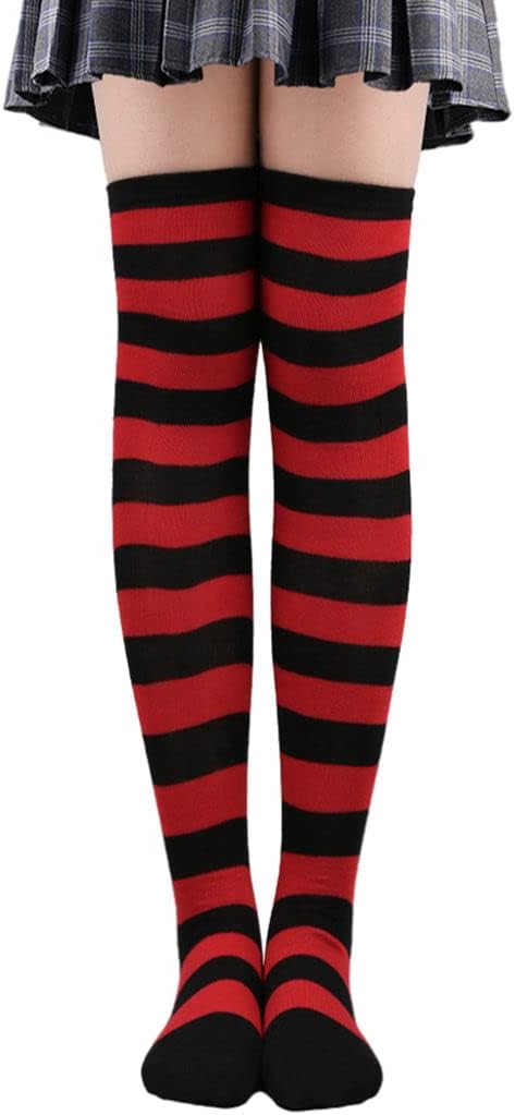 Perfeclan 2 calzini alti al ginocchio calzini comodi calzini lunghi calzini a righe calzini cosplay per costumi regali di compleanno - nero rosso Tipo di prodotto: CALZINI Marca: Perfect