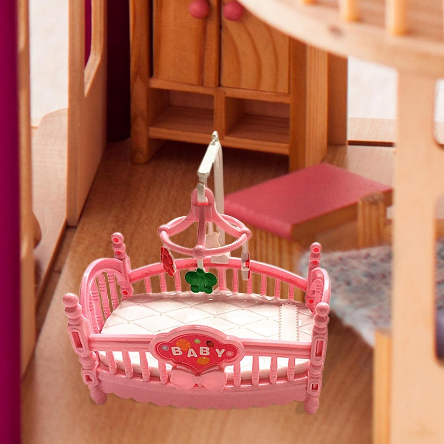 Colore: rosa LETTO A CASTELLO DELLA CASA DELLE BAMBOLE: letto in miniatura della casa delle bambole e cavallo di legno, ottima decorazione per mobili per il rotolo della casa delle bambole DIMENSIONI: ca. Dimensioni del letto: 10,8 cm x 7,5 cm x 10,5 cm. Dimensioni del cavallo di legno: 7,7 cm x 3 cm x 4,3 cm. Letto adatto per far dormire bambole o bambole alte fino a 9,5 cm. BELLISSIMI REGALI: regalo perfetto per compleanni e Natale. Ideale per aggiungere un'atmosfera vivace alla tua casa delle bambole. MATERIALE: materiale plastico di alta qualità e durevole. REALISTICO: letto rosa, lavorazione realistica e lavorazione eccellente. Un buon accessorio per la tua casa delle bambole.