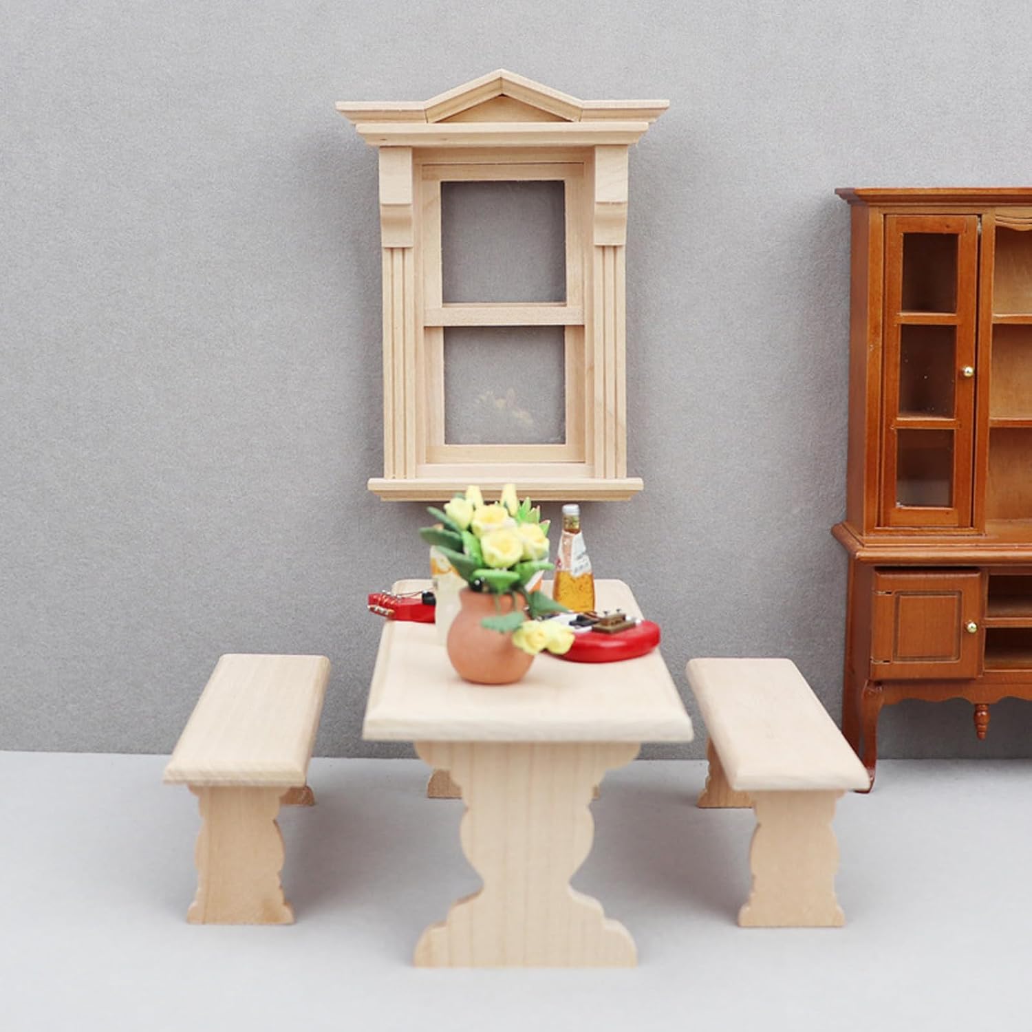 Il set comprende un tavolo e una panca coordinata che mostra le texture per grani di legno naturali e superfici lisce per una maneggevolezza sicura Accoppiamento perfetto per casa delle bambole per sala da pranzo 1/12 o tema cottage, come configurazioni per narrazione in miniatura e disposizione decorativa Utilizzare legno premium, questo set di mobili in miniatura con scala 1/12 dispone Utilizzando legno naturale, questo set di mobili garantisce ai bambini un gioco sicuro e nel mantenimento di una lavorazione intricata per un progetto di decorazione d'interni in miniatura di lunga durata Progettato per collezionisti, genitori e hobbisti che cercano mobili realistici per la casa delle bambole per creare un display coinvolgente in miniatura