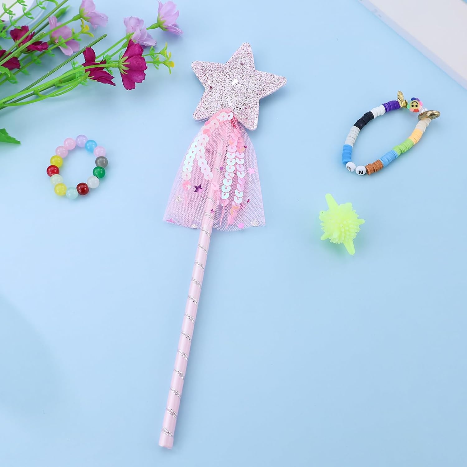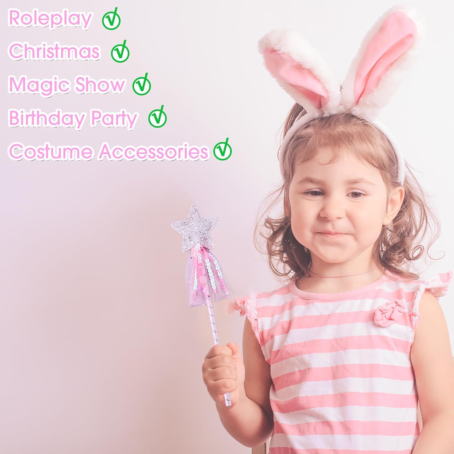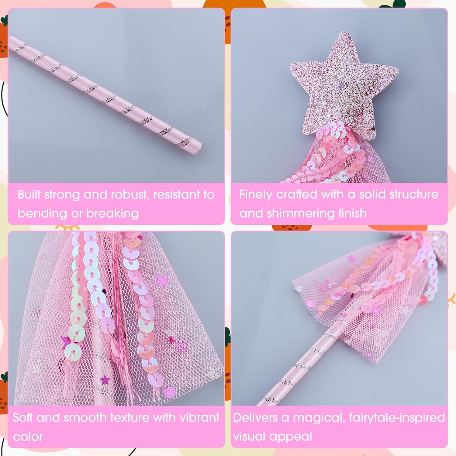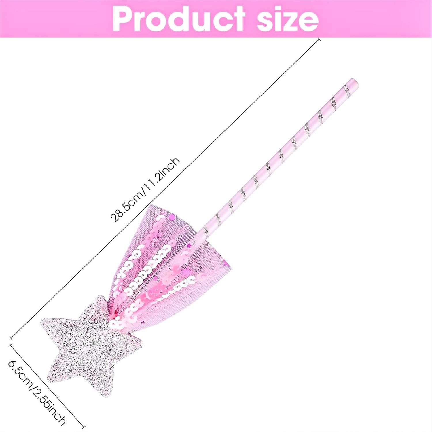 La confezione include: riceverai un set di 3 bacchette glitterate a forma di stella in rosa, viola e blu. Queste bacchette abbaglianti presentano un effetto scintillante, che le rende visivamente sorprendenti. Dettagli sulle taglie: ogni bacchetta a stella misura circa 28 cm di lunghezza, rendendola leggera e facile da tenere per le mani piccole. Abbinali ad altri accessori a tema principessa per creare un look incantevole. Design accattivante: la nostra bacchetta da principessa presenta un design a stella, ornata con paillettes lucide e nastri morbidi. Brillano sotto la luce con colori vivaci, rendendo il tuo bambino come una bella principessa. Materiale di alta qualità: realizzate in tessuto di alta qualità, queste bacchette da fata presentano una superficie liscia delicata sulle mani e sicura da impugnare. La finitura con paillettes esalta la loro eleganza, rendendoli un'aggiunta elegante a qualsiasi outfit. Usi versatili: queste bacchette abbaglianti a stella da principessa sono ideali per giochi di ruolo, spettacoli di magia, feste di Natale, eventi in costume, compleanni, baby shower, matrimoni e altre celebrazioni festive.