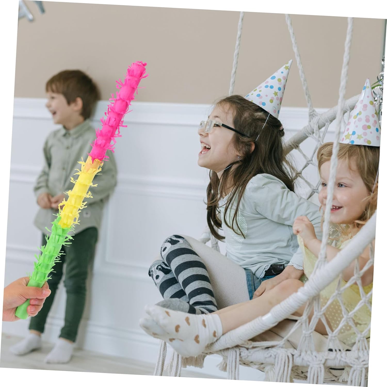 Noisemaker per un compleanno: il tradizionale giocattolo con pignatta viene portato in una forma creativa che corrisponde alla tendenza attuale dei giocattoli con bastoncini di pignatta. Questo bastoncino luminoso è facile da impugnare, una buona presa è una parte essenziale della pinata. Prova l'emozione di una pinata che si rompe e il divertimento di spargere caramelle alle feste di compleanno dei bambini e festeggiare, Forniture per feste messicane Bastoncini di pinata di carta: questi attraenti bastoncini di pinata possono essere amati dai ragazzi e i ragazzi si divertiranno, Bastoncini di zucchero per i giocattoli dei bambini: La superficie colorata è ideale per le occasioni di festa, per bambini e adulti, Bastoncini di pinata da festa Pinata per feste di compleanno: Riceverai bastoncini di pinata che vengono utilizzati nei classici giochi di pinata per giocare e feste di compleanno